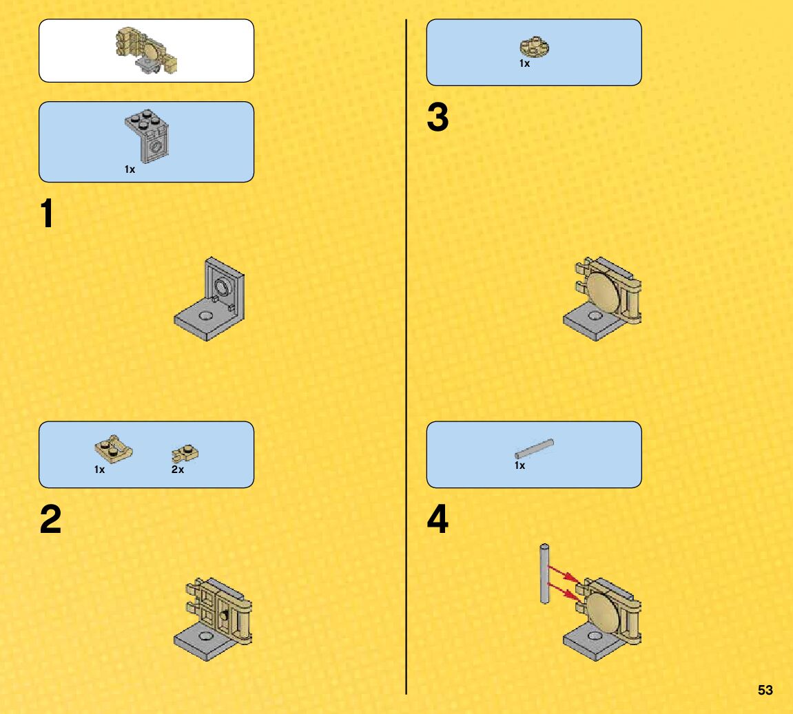 The assembly guide is prepared in a very understandable way for children and adult LEGO enthusiasts. A total of 124 picture galleries are shown, explaining the step-by-step construction stages for 2 different structures.