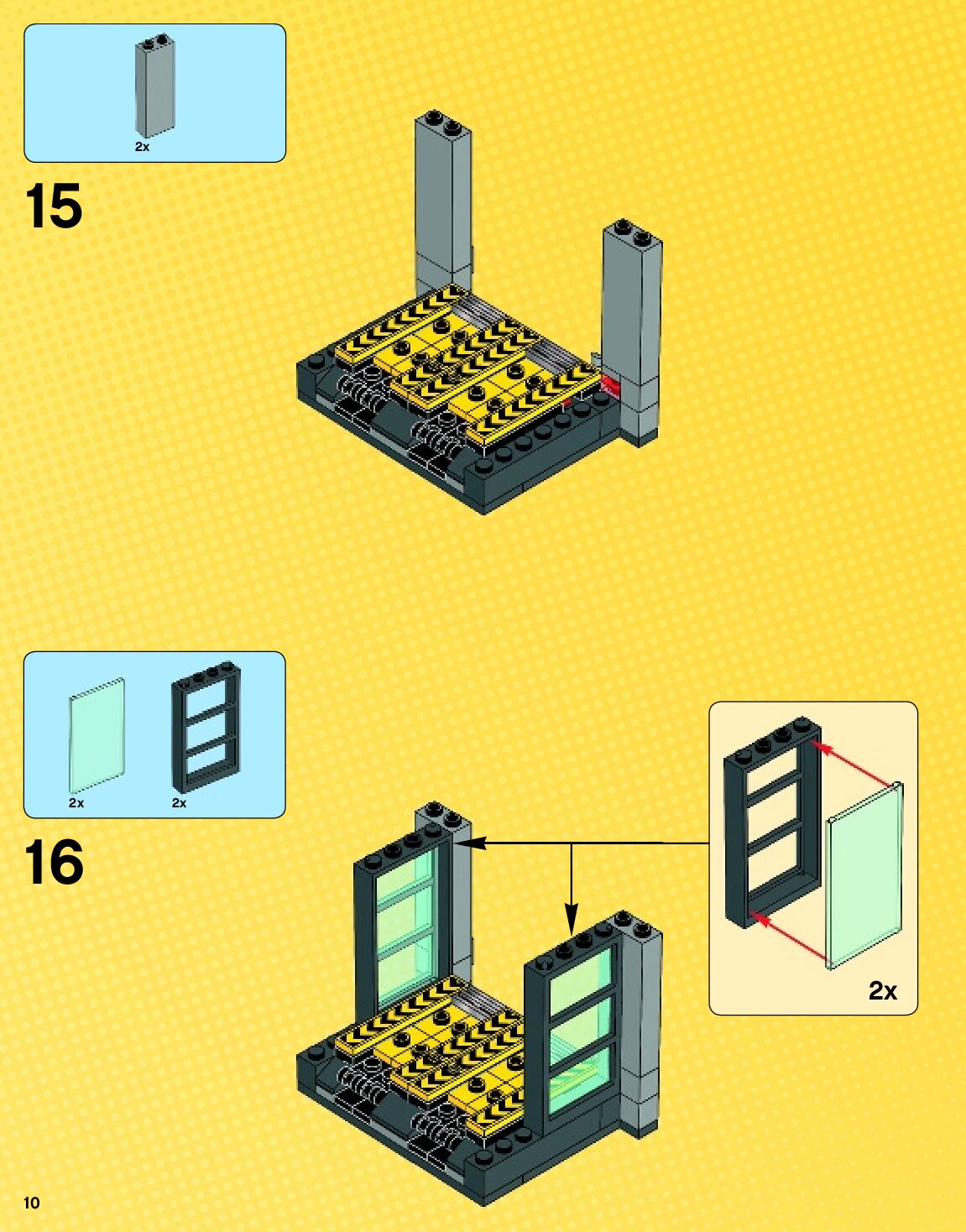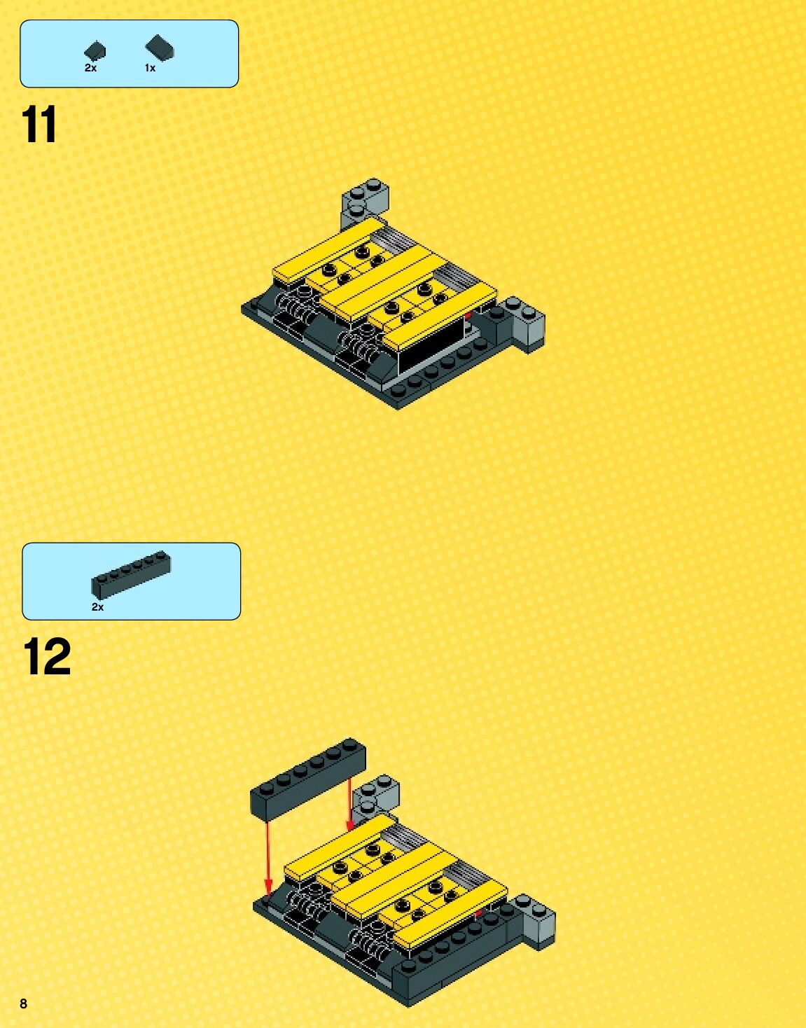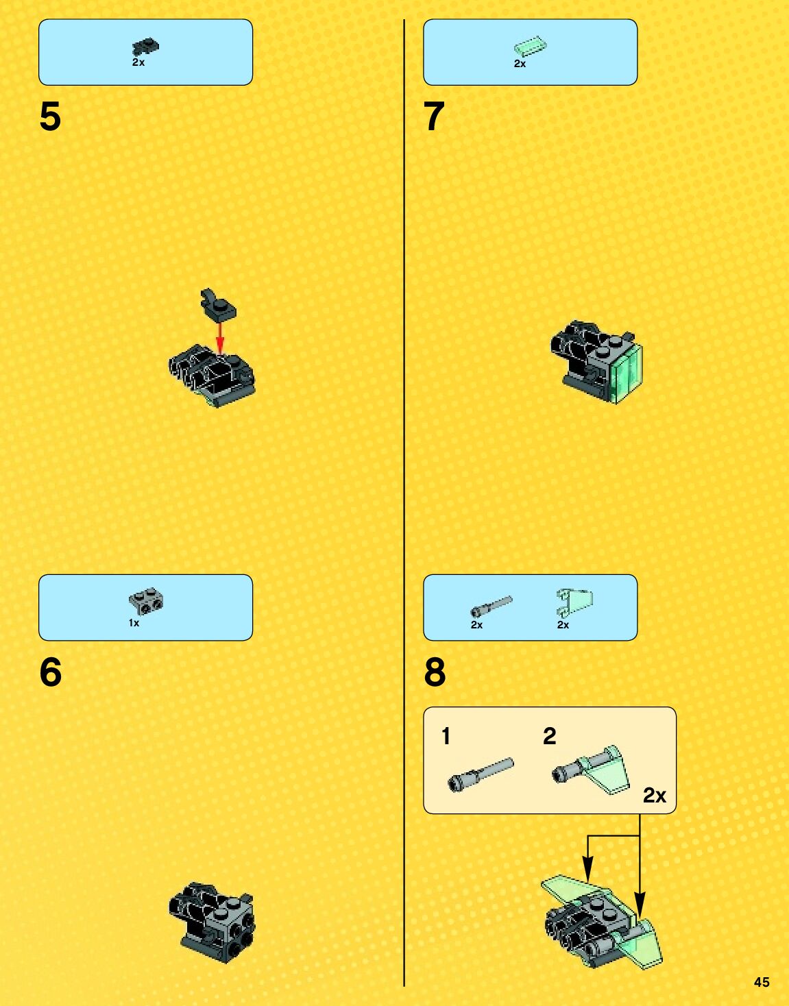 The assembly guide is prepared in a very understandable way for children and adult LEGO enthusiasts. A total of 128 picture galleries are shown, explaining the step-by-step construction stages for 2 different structures.