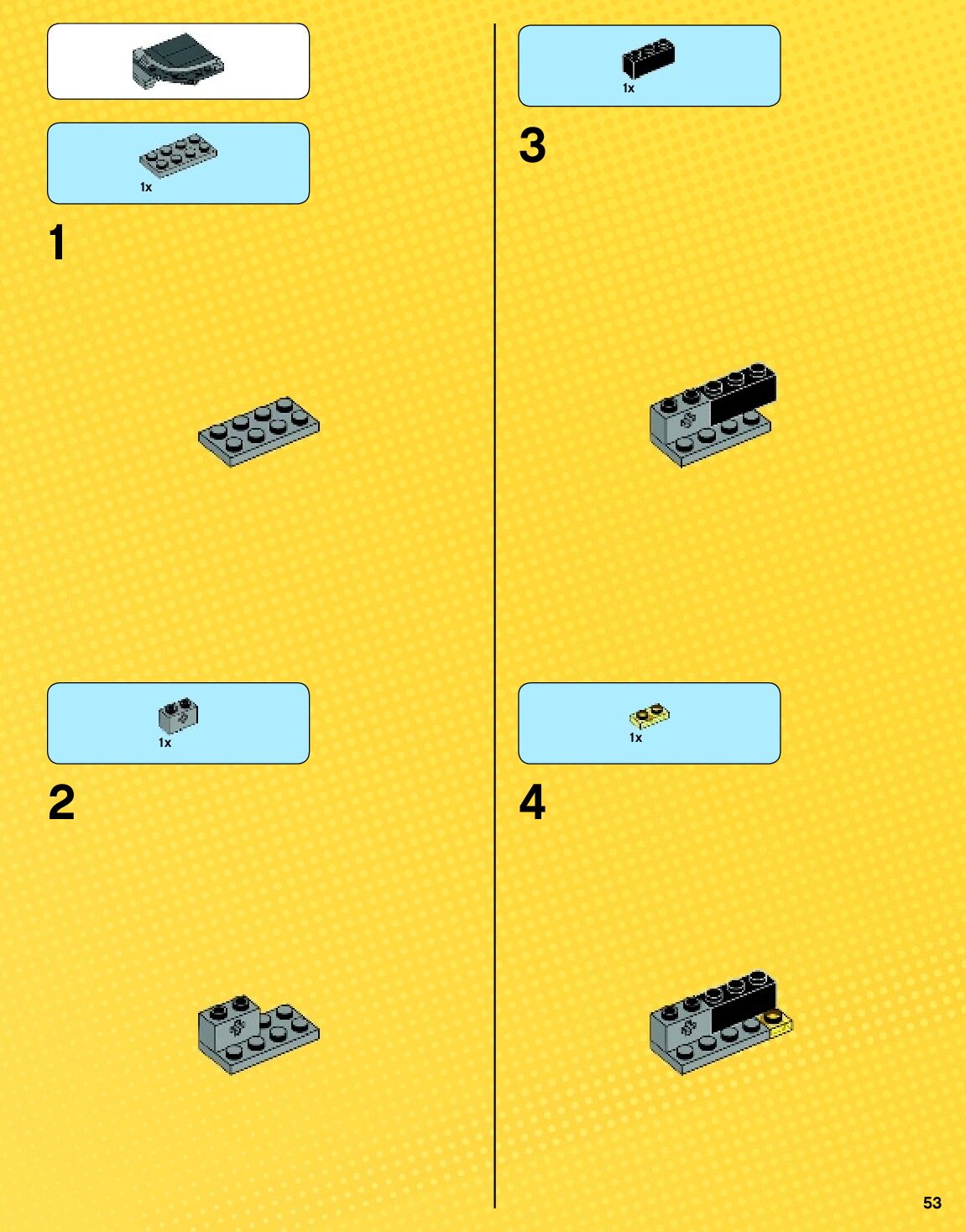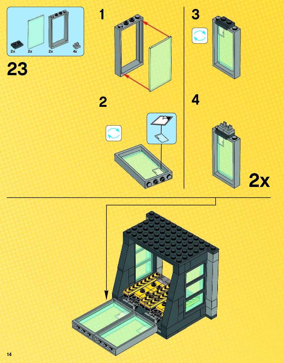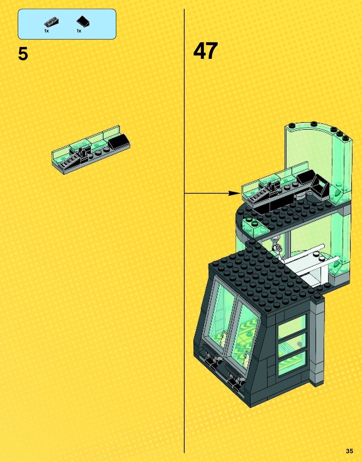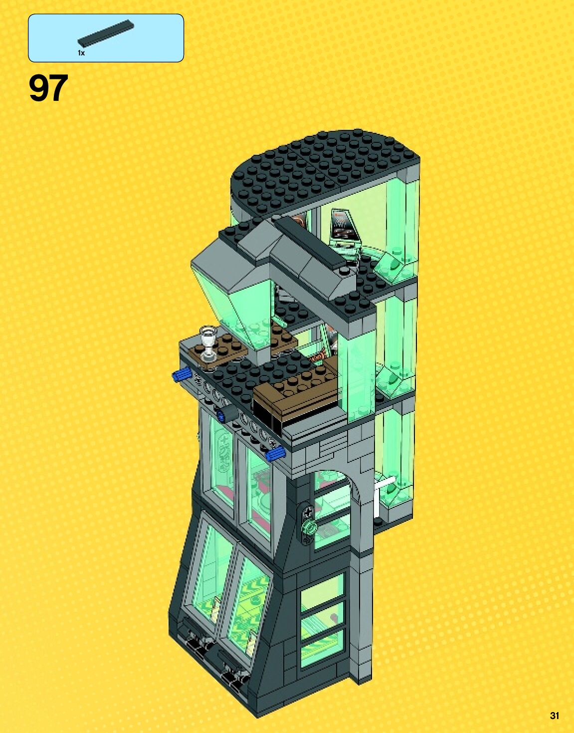 The assembly guide is prepared in a very understandable way for children and adult LEGO enthusiasts. A total of 128 picture galleries are shown, explaining the step-by-step construction stages for 2 different structures.