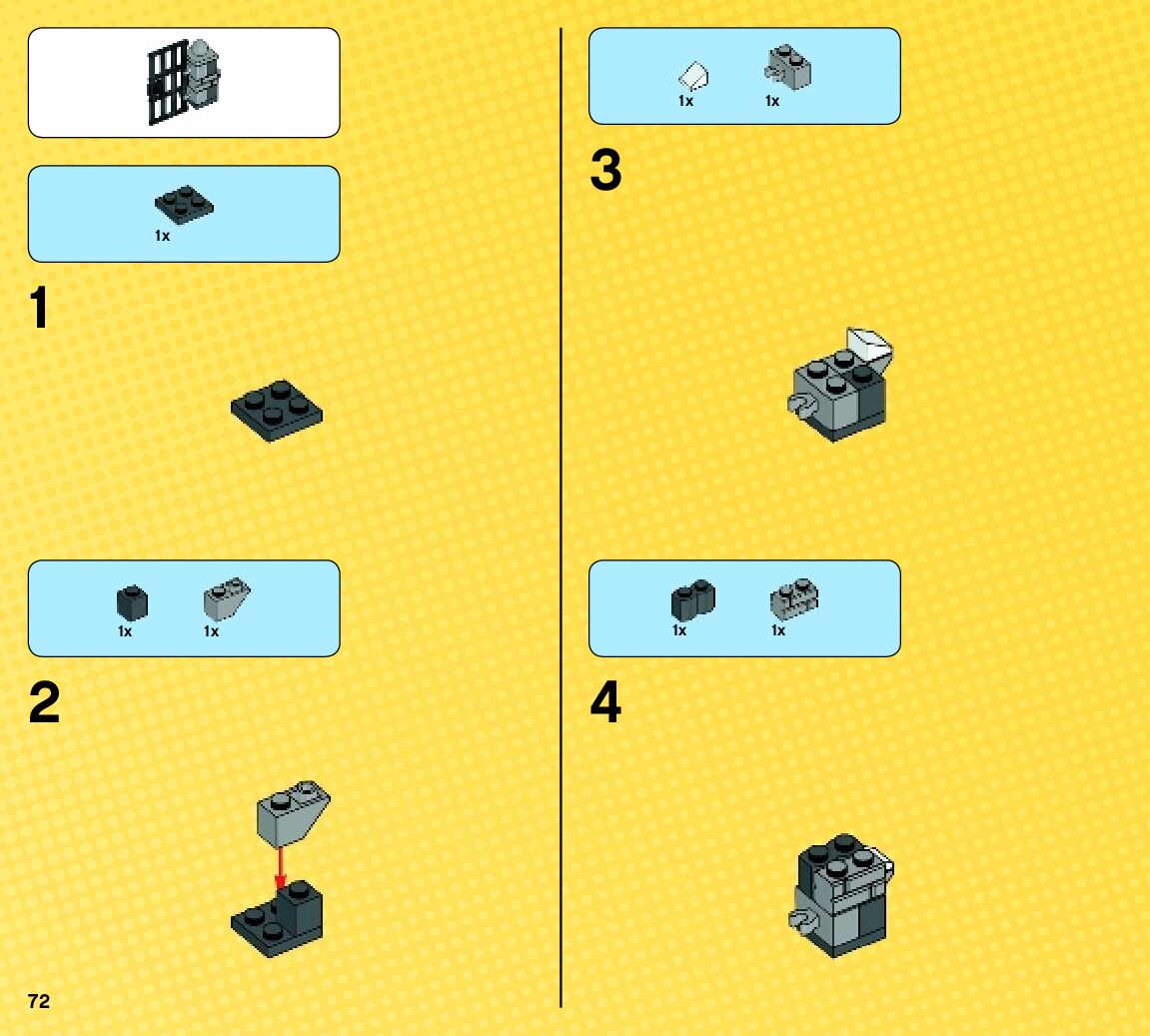 The assembly guide is prepared in a very understandable way for children and adult LEGO enthusiasts. A total of 816 picture galleries are shown, explaining the step-by-step construction stages for 2 different structures.