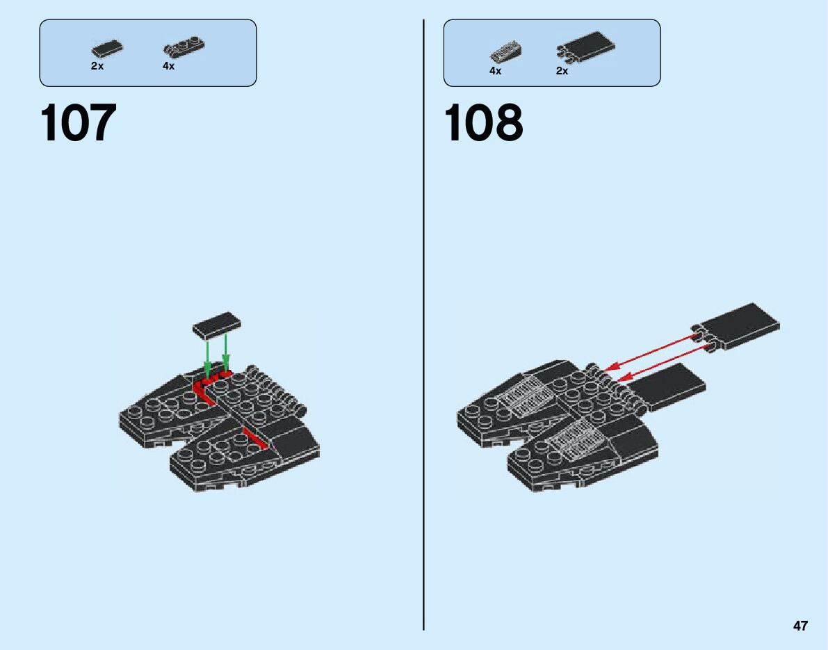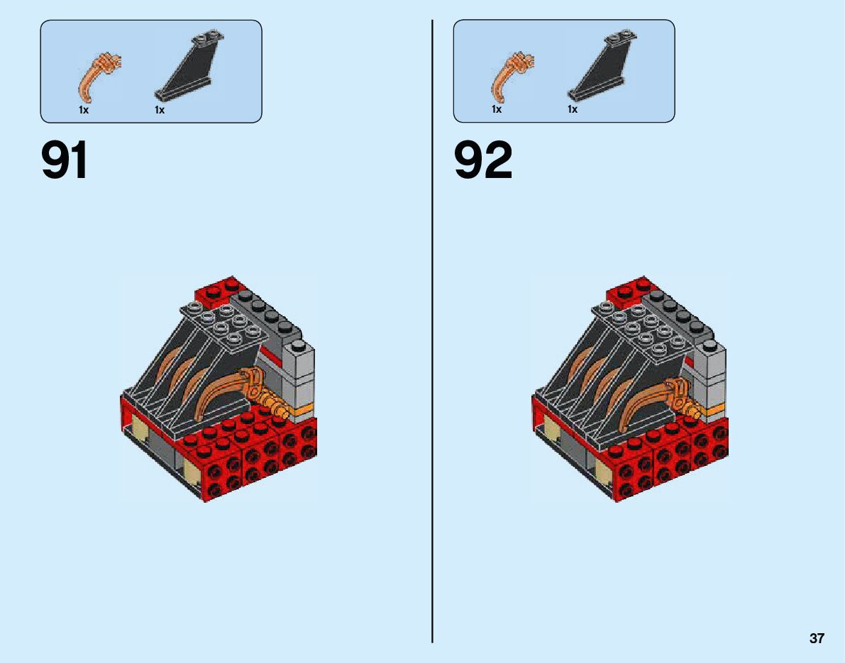 The assembly guide is prepared in a very understandable way for children and adult LEGO enthusiasts. A total of 92 picture galleries are shown, explaining the step-by-step construction stages for 2 different structures.