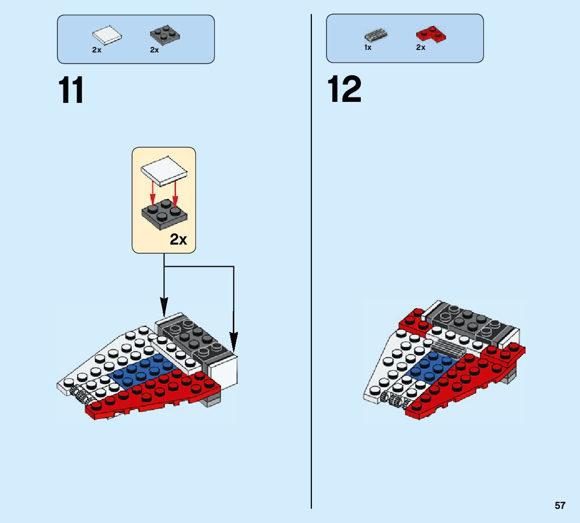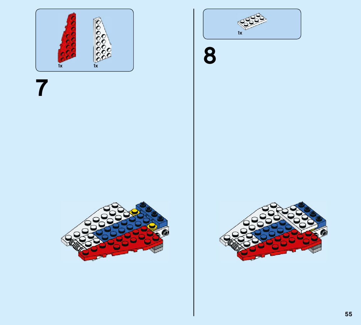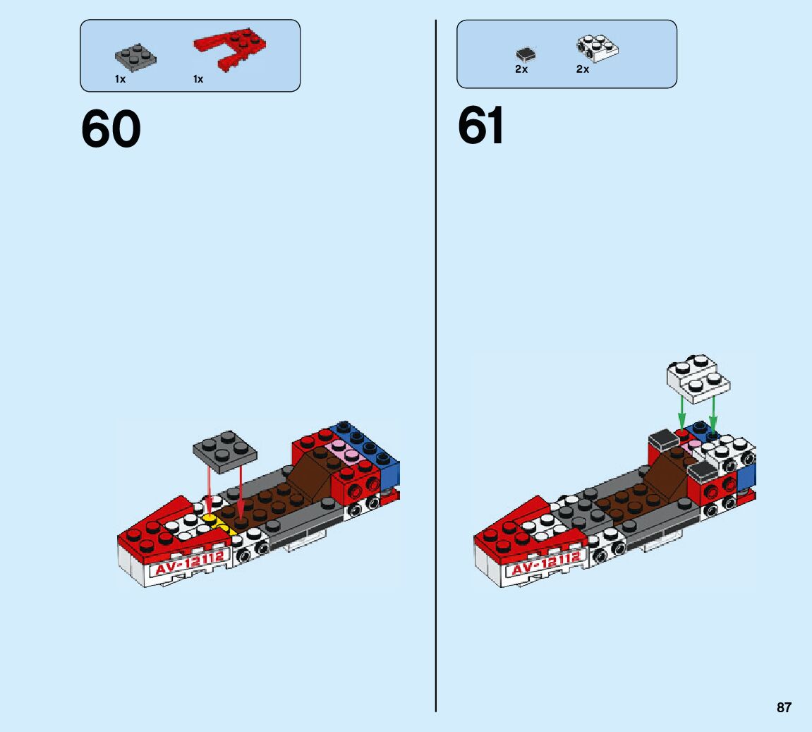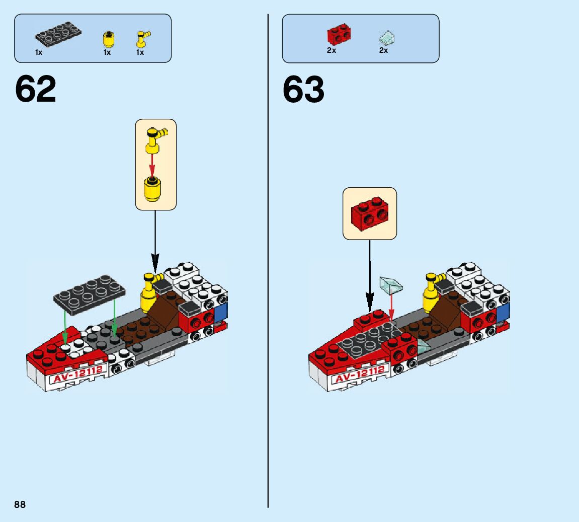 The assembly guide is prepared in a very understandable way for children and adult LEGO enthusiasts. A total of 116 picture galleries are shown, explaining the step-by-step construction stages for 1 different structures.