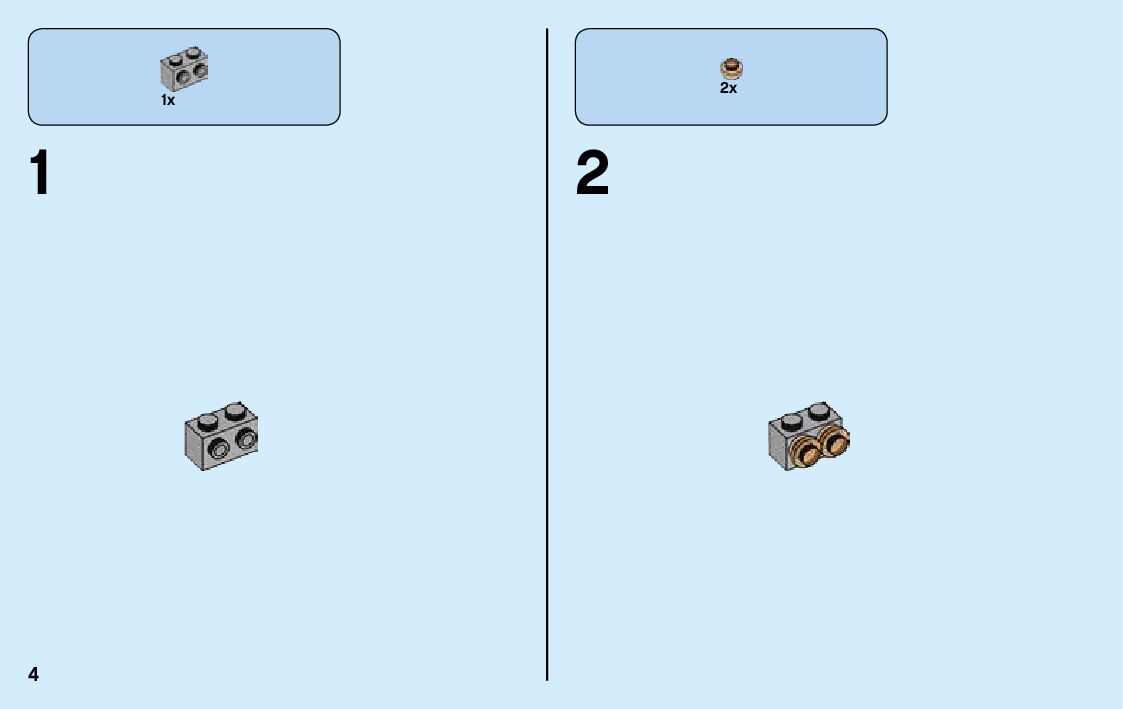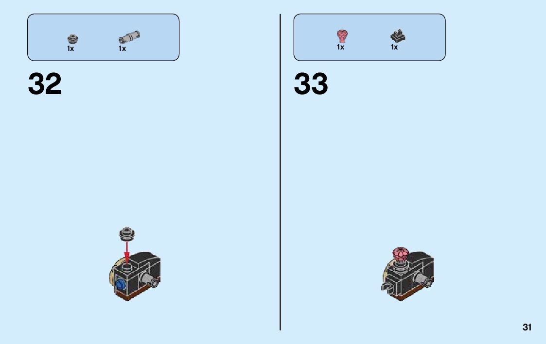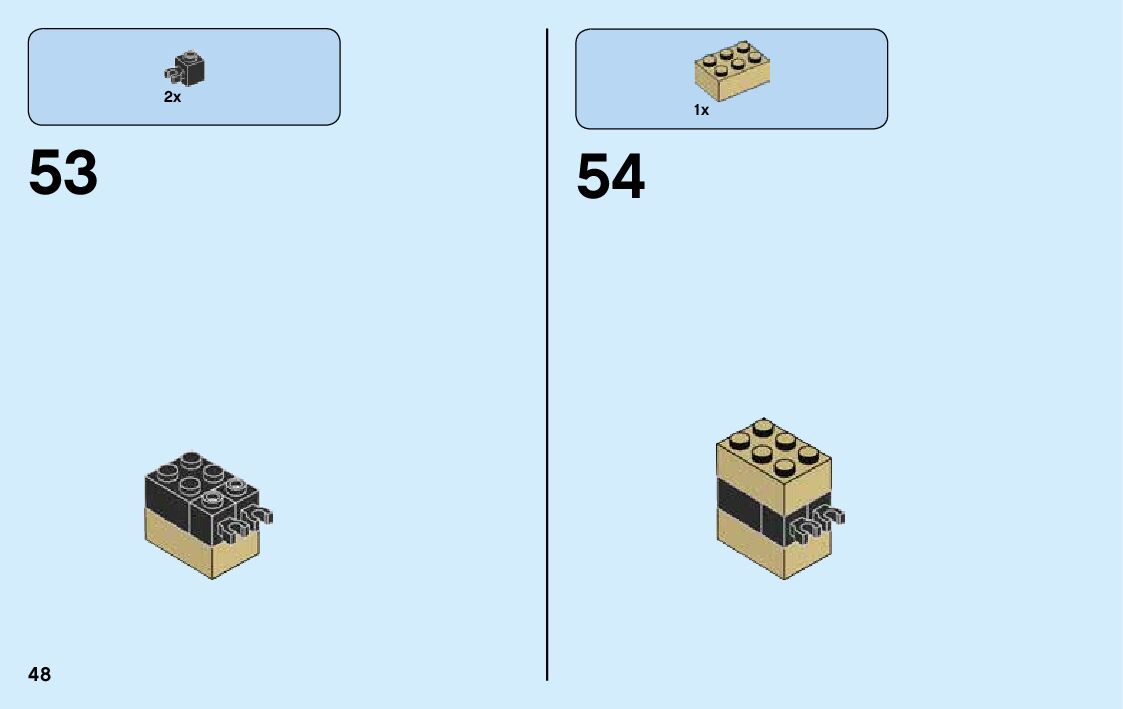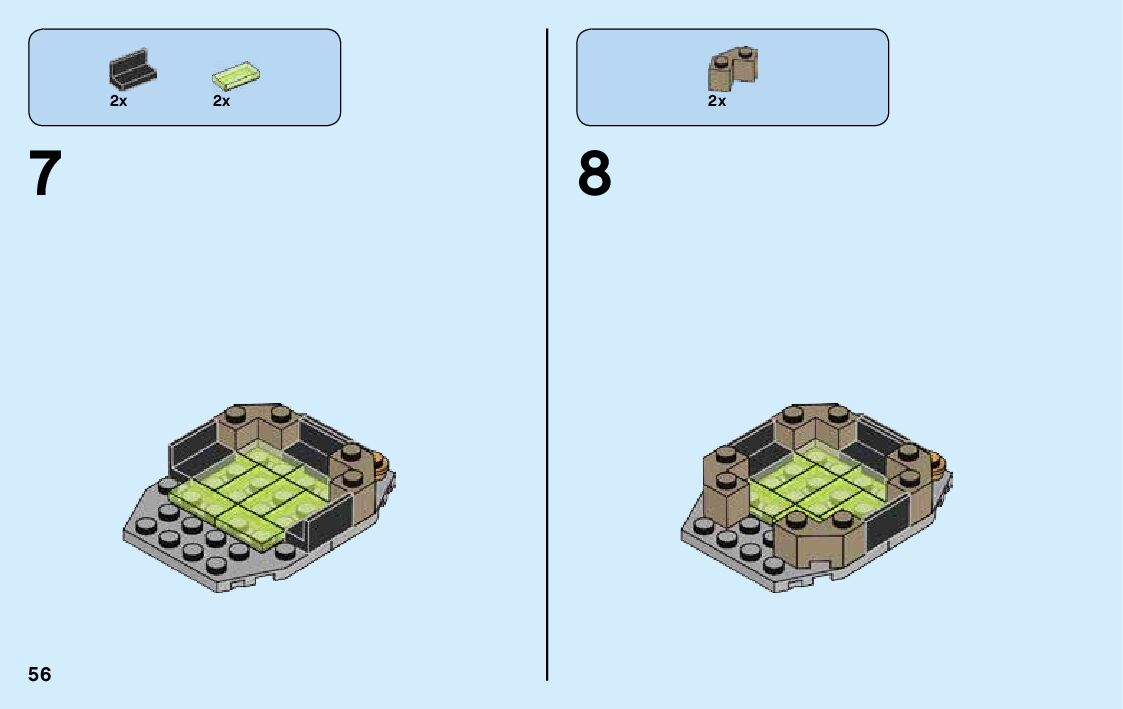 The assembly guide is prepared in a very understandable way for children and adult LEGO enthusiasts. A total of 104 picture galleries are shown, explaining the step-by-step construction stages for 2 different structures.