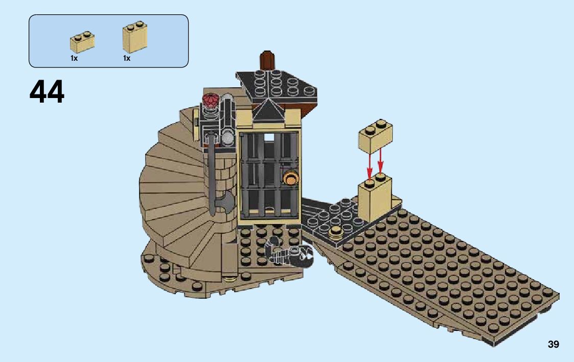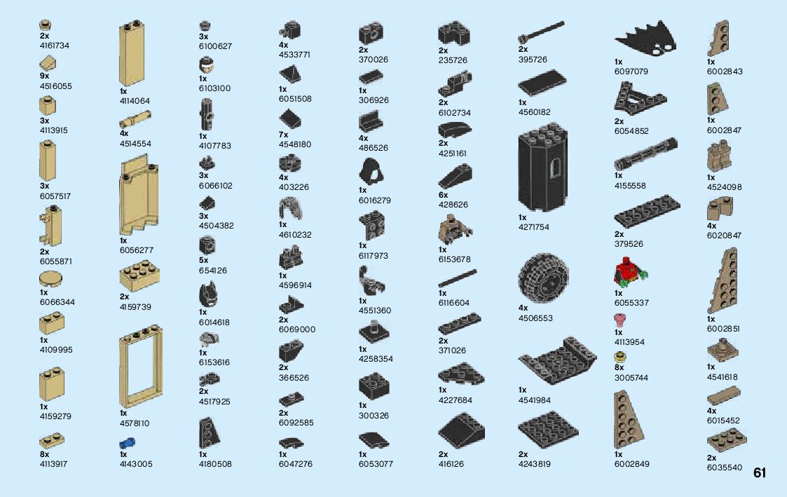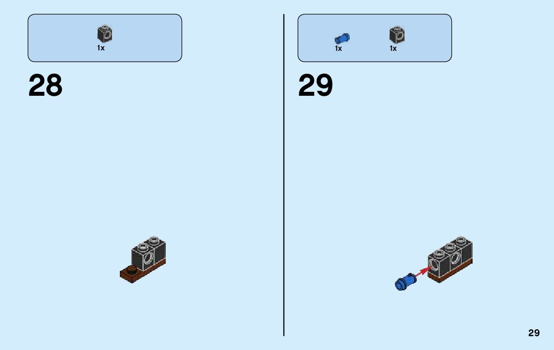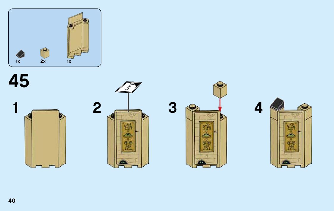 The assembly guide is prepared in a very understandable way for children and adult LEGO enthusiasts. A total of 104 picture galleries are shown, explaining the step-by-step construction stages for 2 different structures.