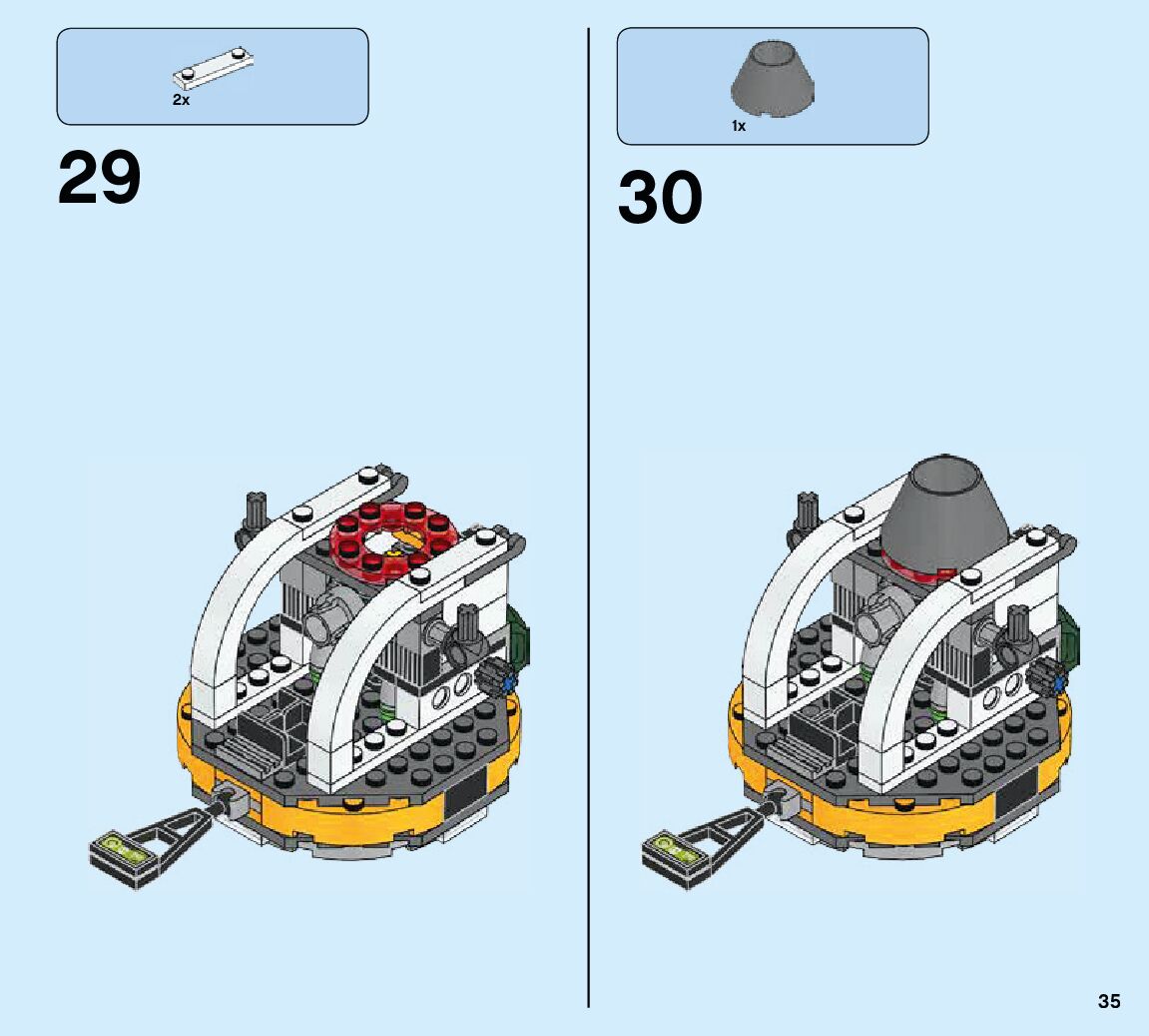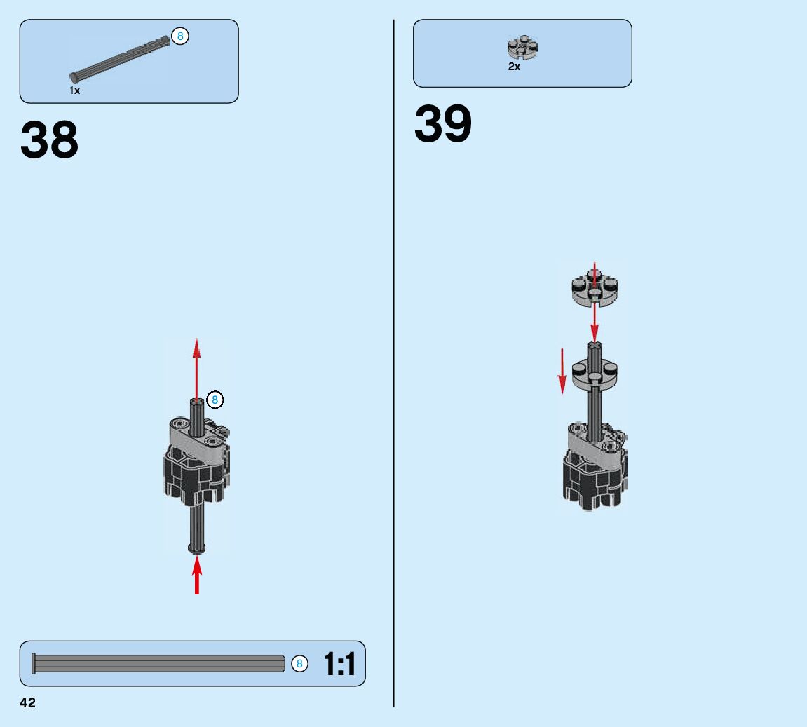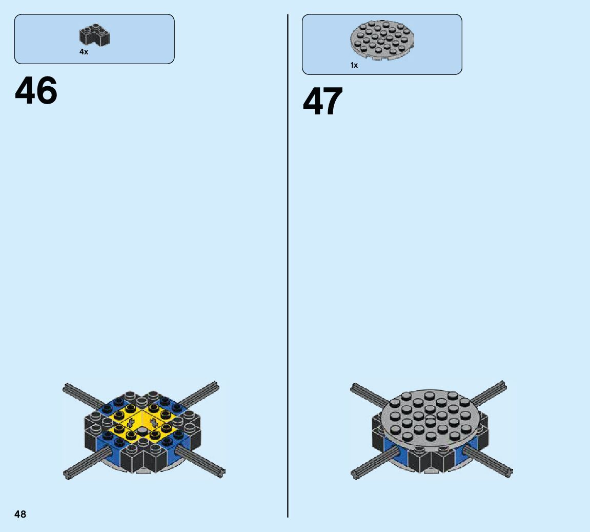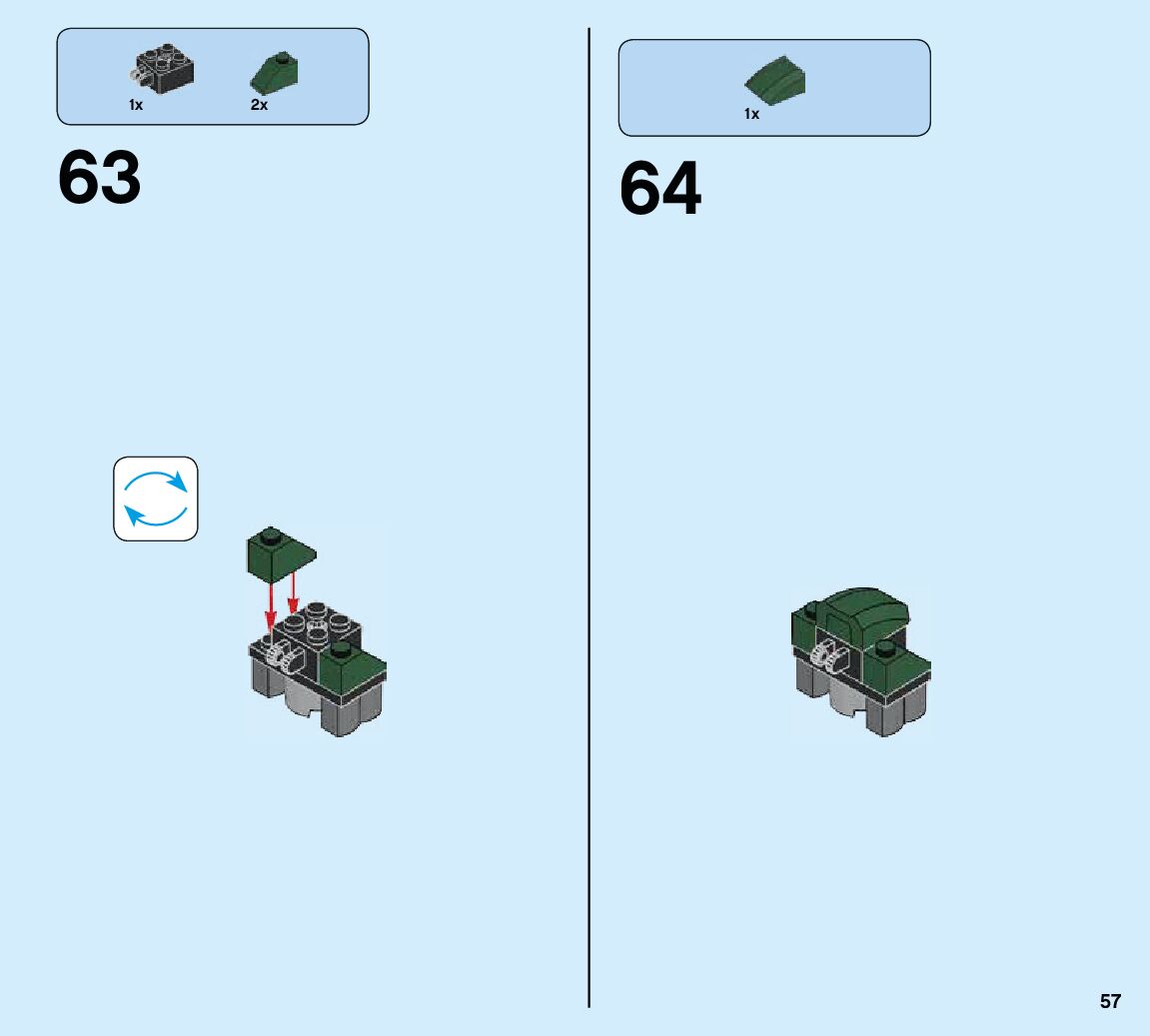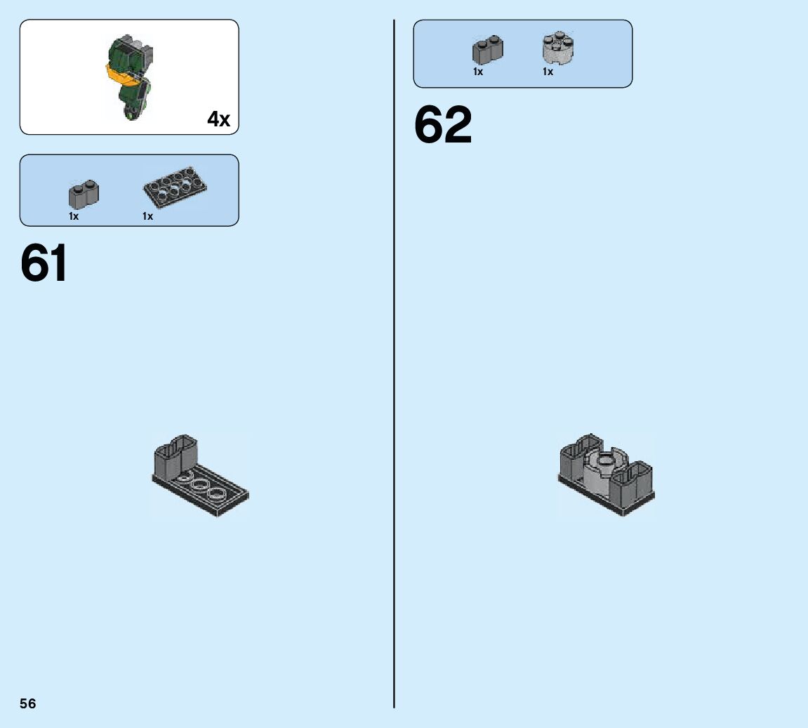The assembly guide is prepared in a very understandable way for children and adult LEGO enthusiasts. A total of 84 picture galleries are shown, explaining the step-by-step construction stages for 2 different structures.