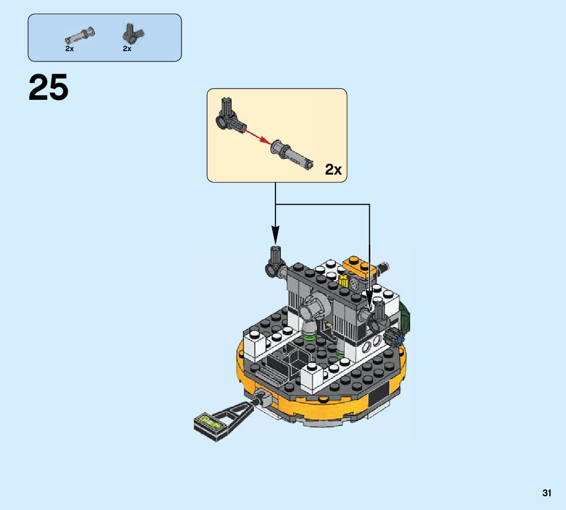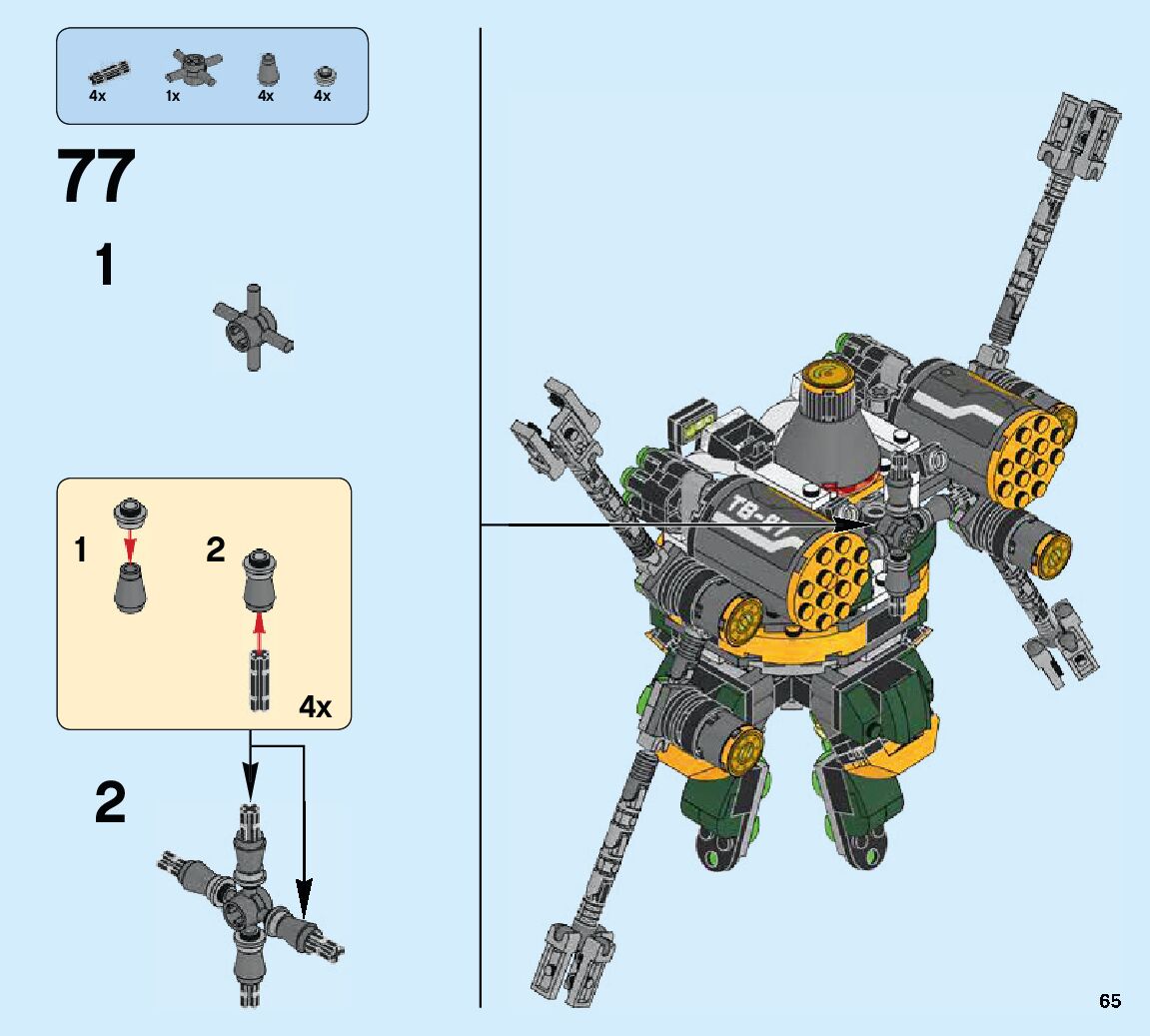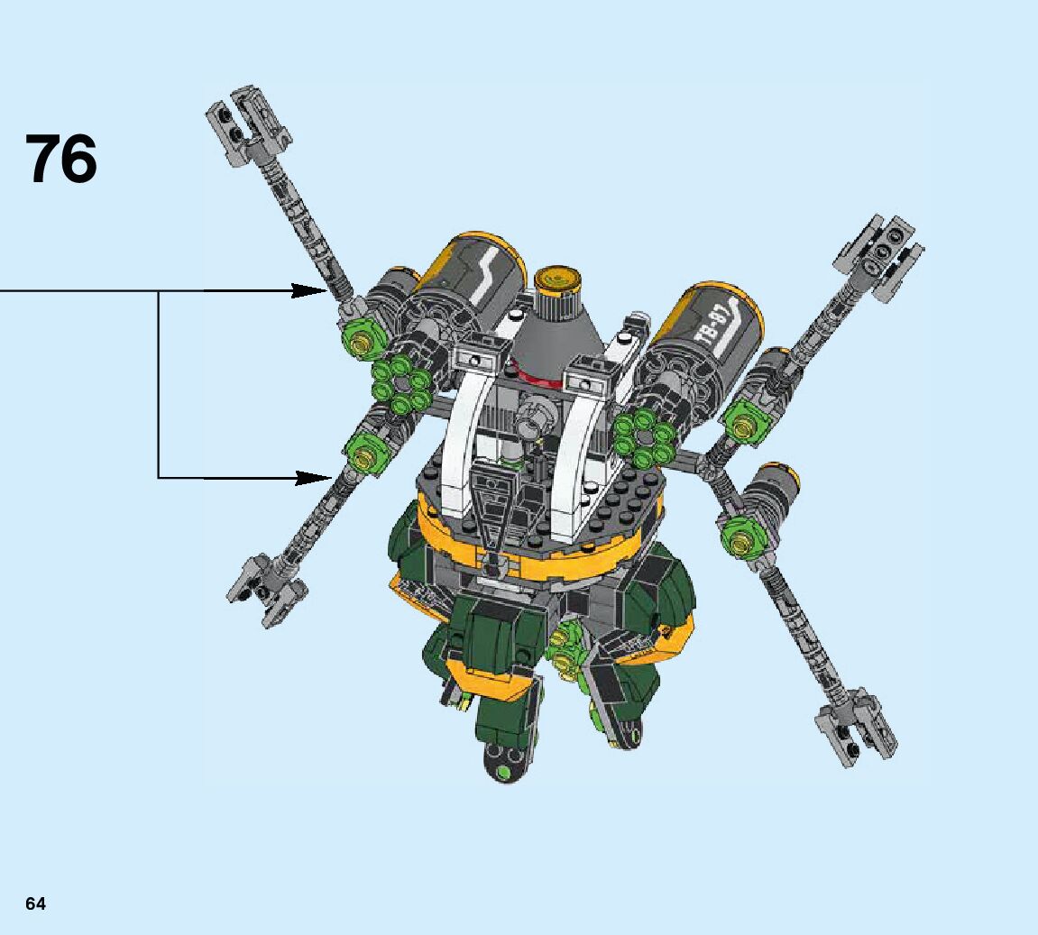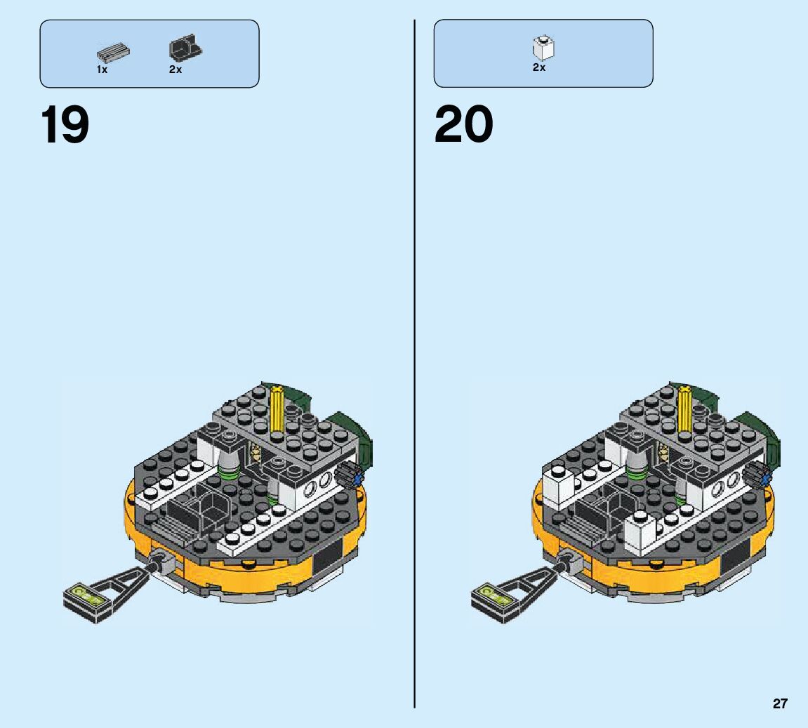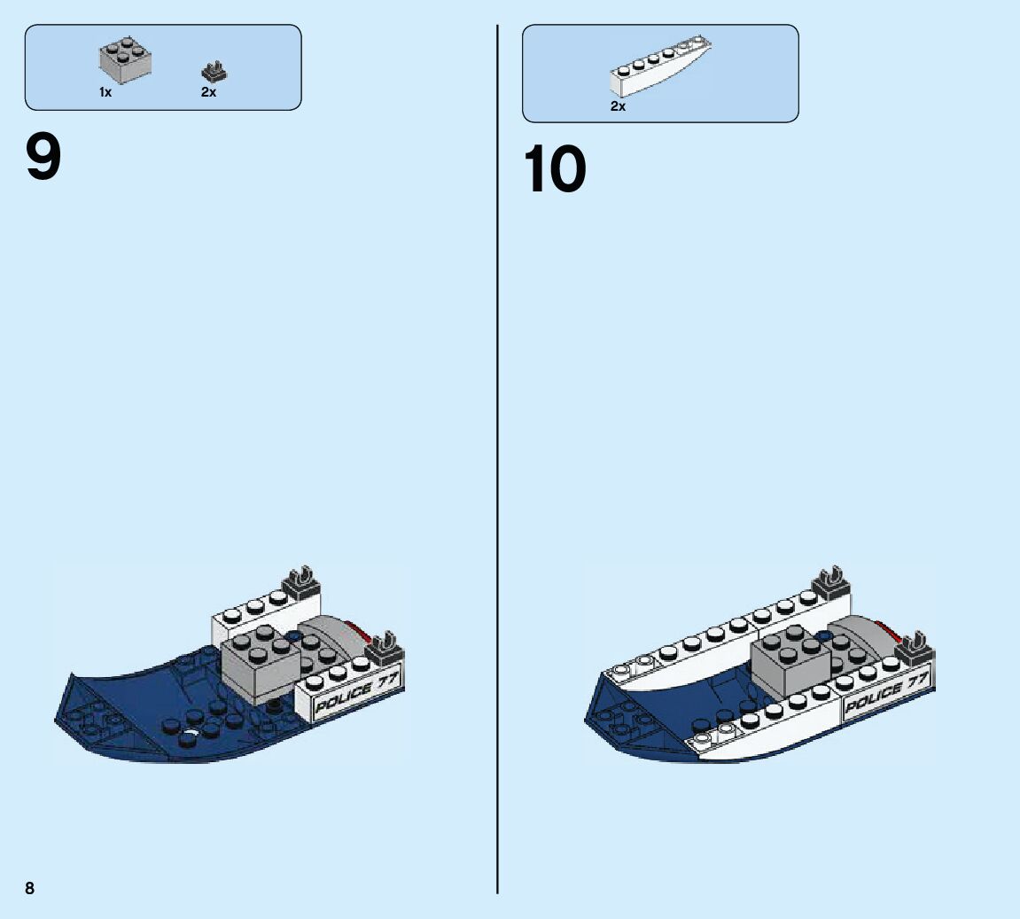 The assembly guide is prepared in a very understandable way for children and adult LEGO enthusiasts. A total of 84 picture galleries are shown, explaining the step-by-step construction stages for 2 different structures.