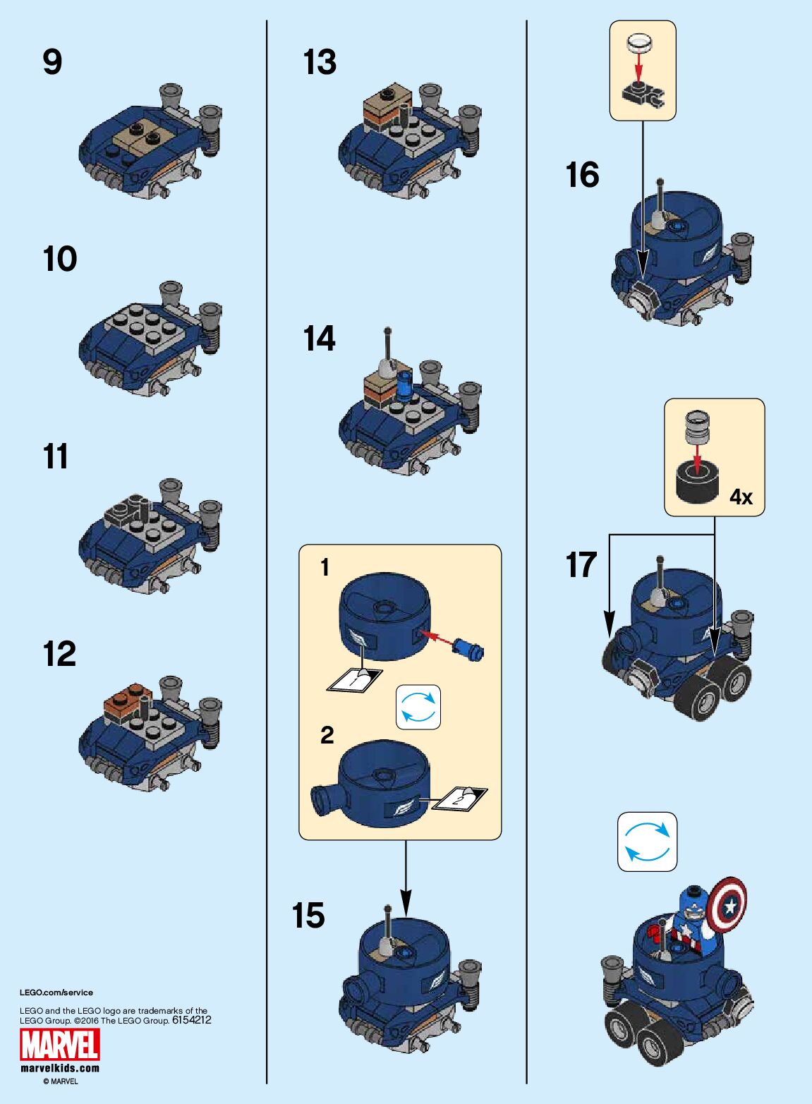 On this page you can find the original construction manual for the LEGO 76065 set. With the assembly manual you can easily learn how to build the 76065 Mighty Micros: Captain America vs. Red Skull step by step. The set was released in 2016.