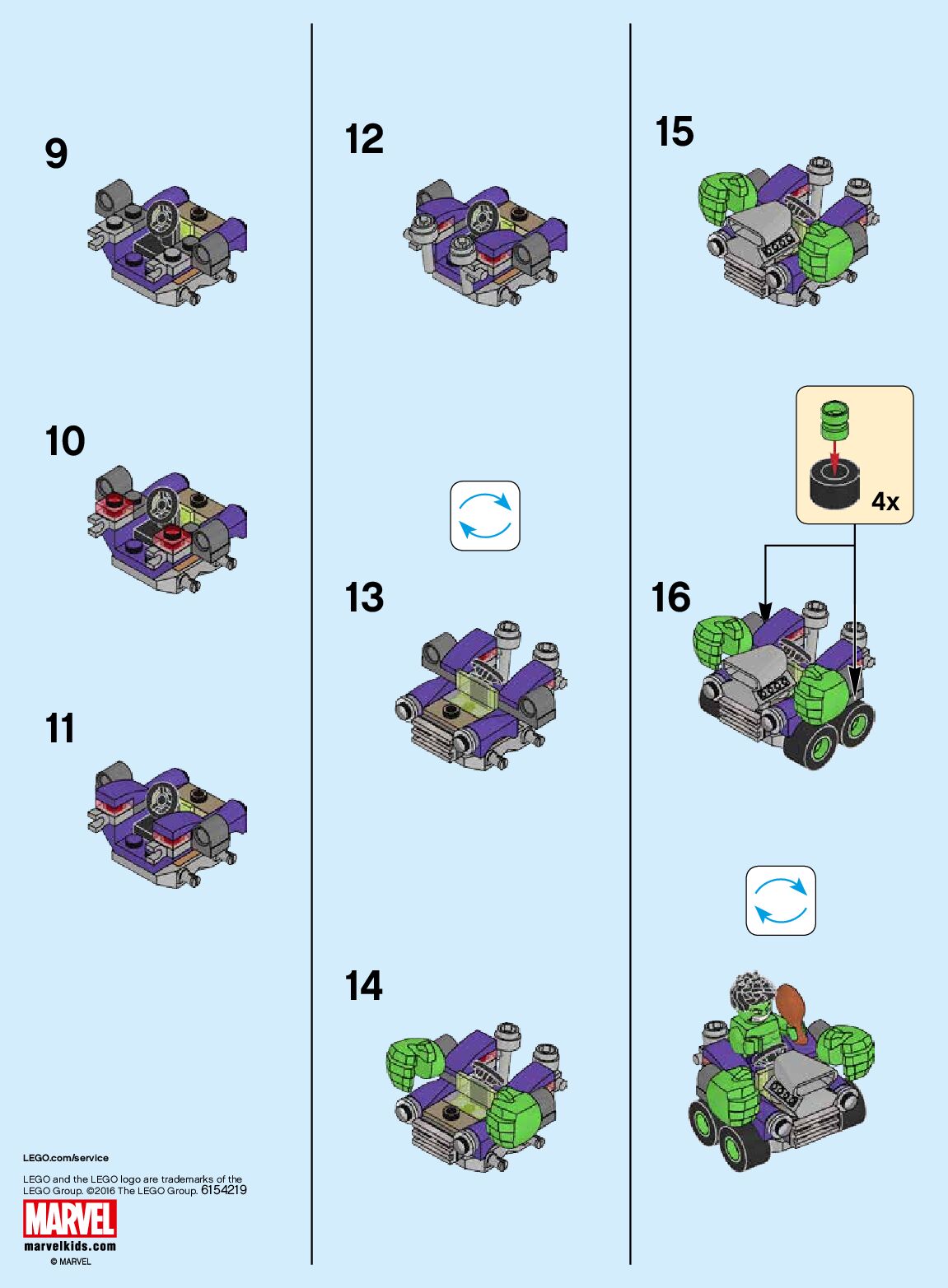 On this page you can find the original construction manual for the LEGO 76066 set. With the assembly manual you can easily learn how to build the 76066 Mighty Micros: Hulk vs. Ultron step by step. The set was released in 2016.