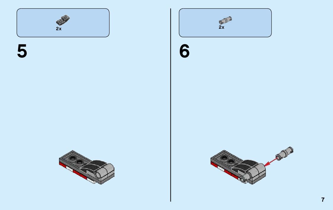 The assembly guide is prepared in a very understandable way for children and adult LEGO enthusiasts. A total of 104 picture galleries are shown, explaining the step-by-step construction stages for 2 different structures.