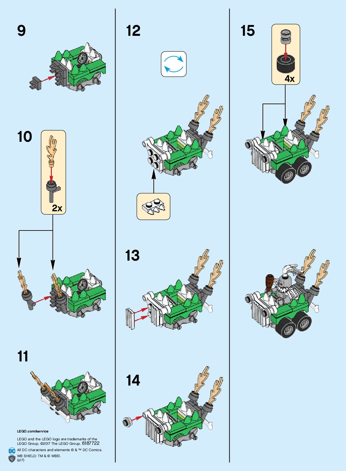 The assembly guide is prepared in a very understandable way for children and adult LEGO enthusiasts. A total of 6 picture galleries are shown, explaining the step-by-step construction stages for 3 different structures.
