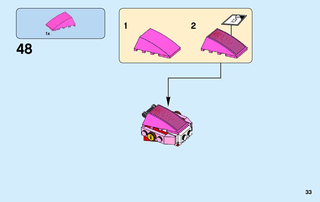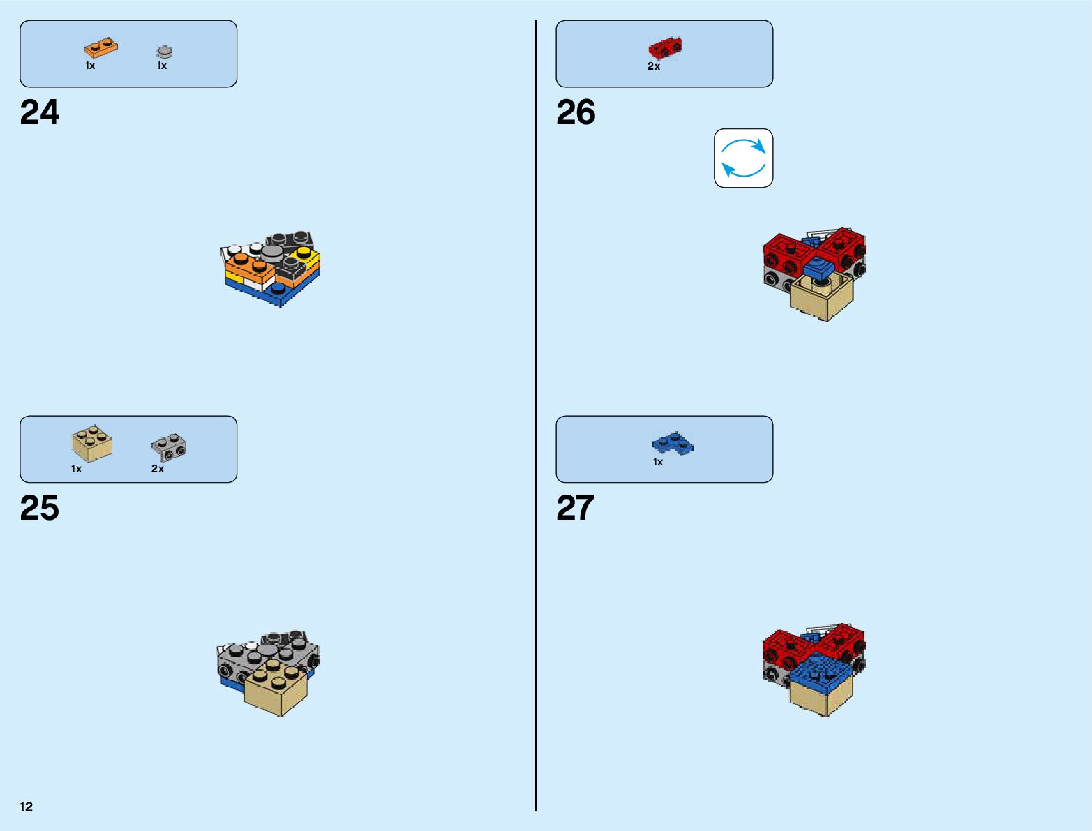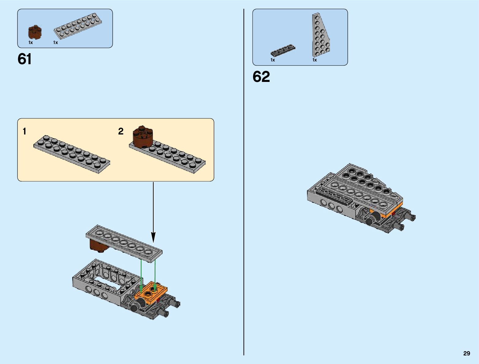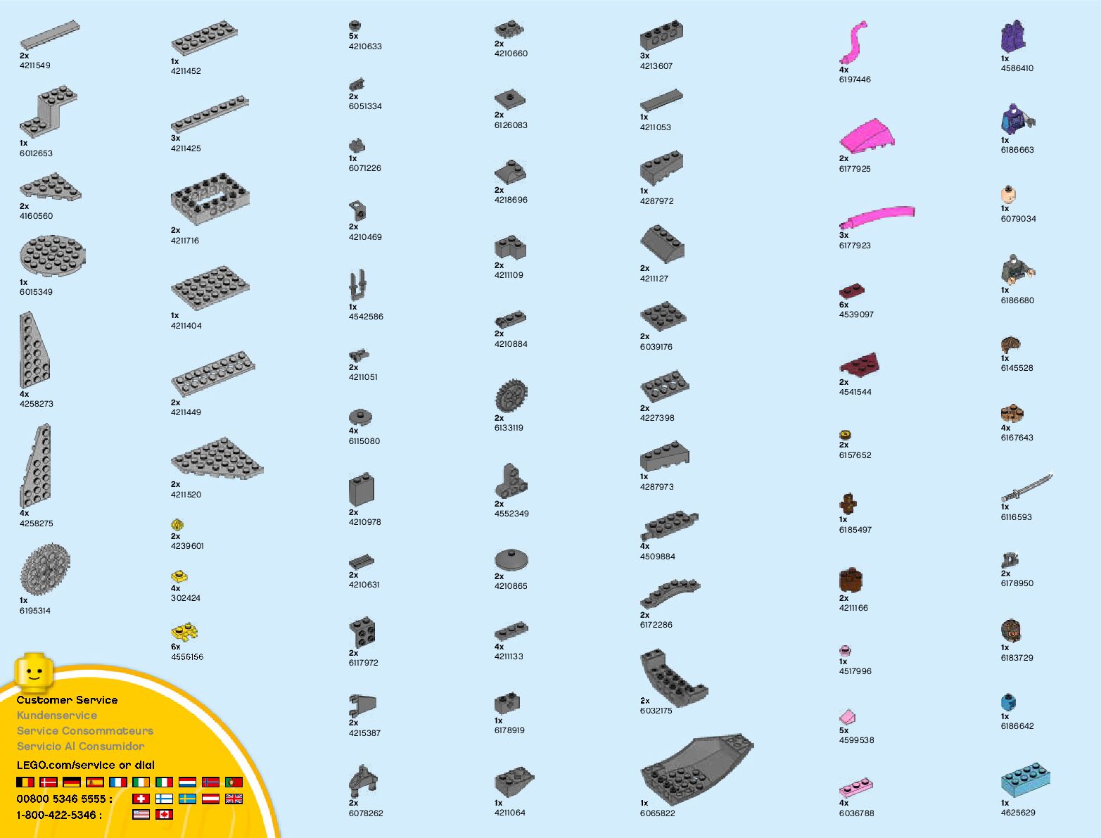 The assembly guide is prepared in a very understandable way for children and adult LEGO enthusiasts. A total of 116 picture galleries are shown, explaining the step-by-step construction stages for 3 different structures.