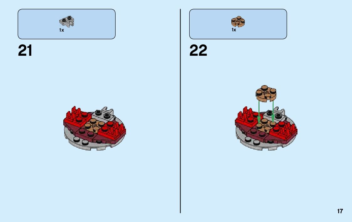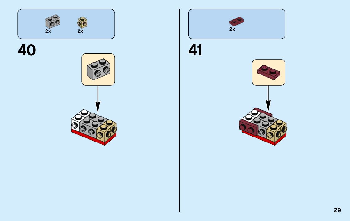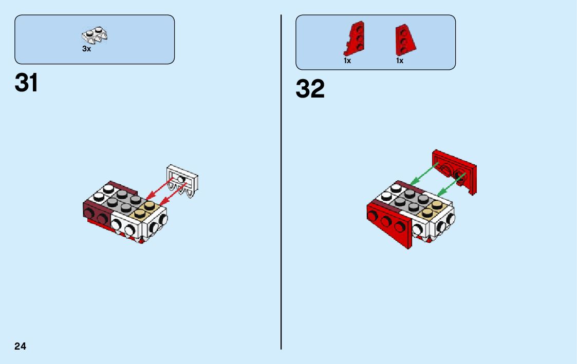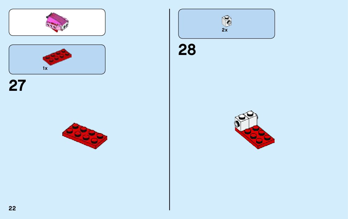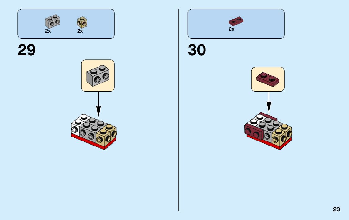 The assembly guide is prepared in a very understandable way for children and adult LEGO enthusiasts. A total of 116 picture galleries are shown, explaining the step-by-step construction stages for 3 different structures.