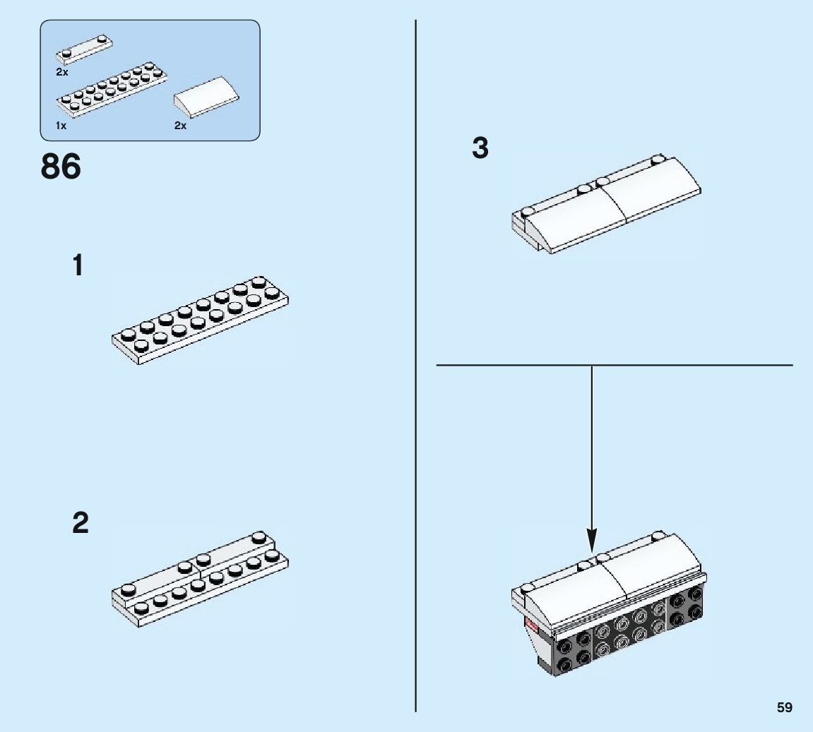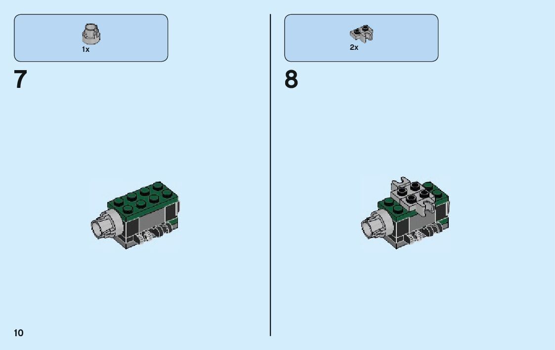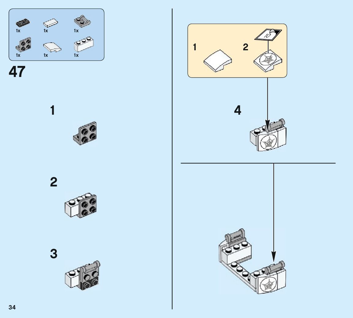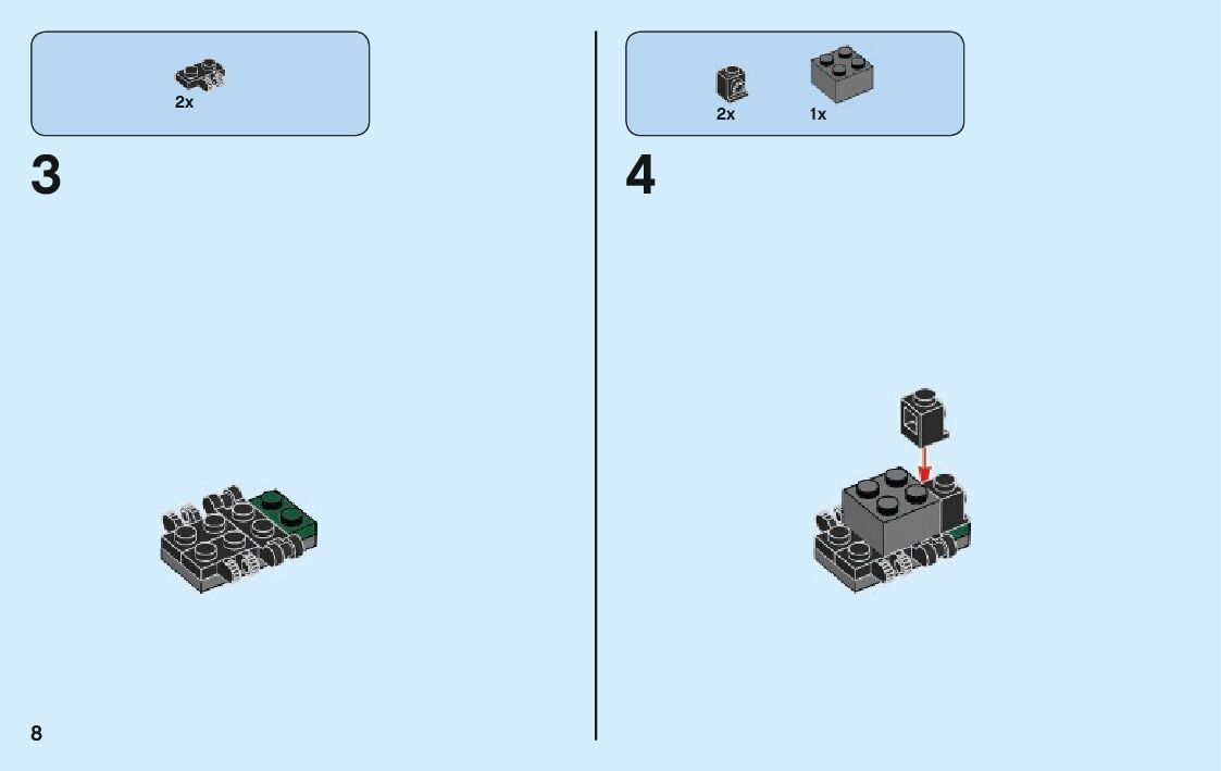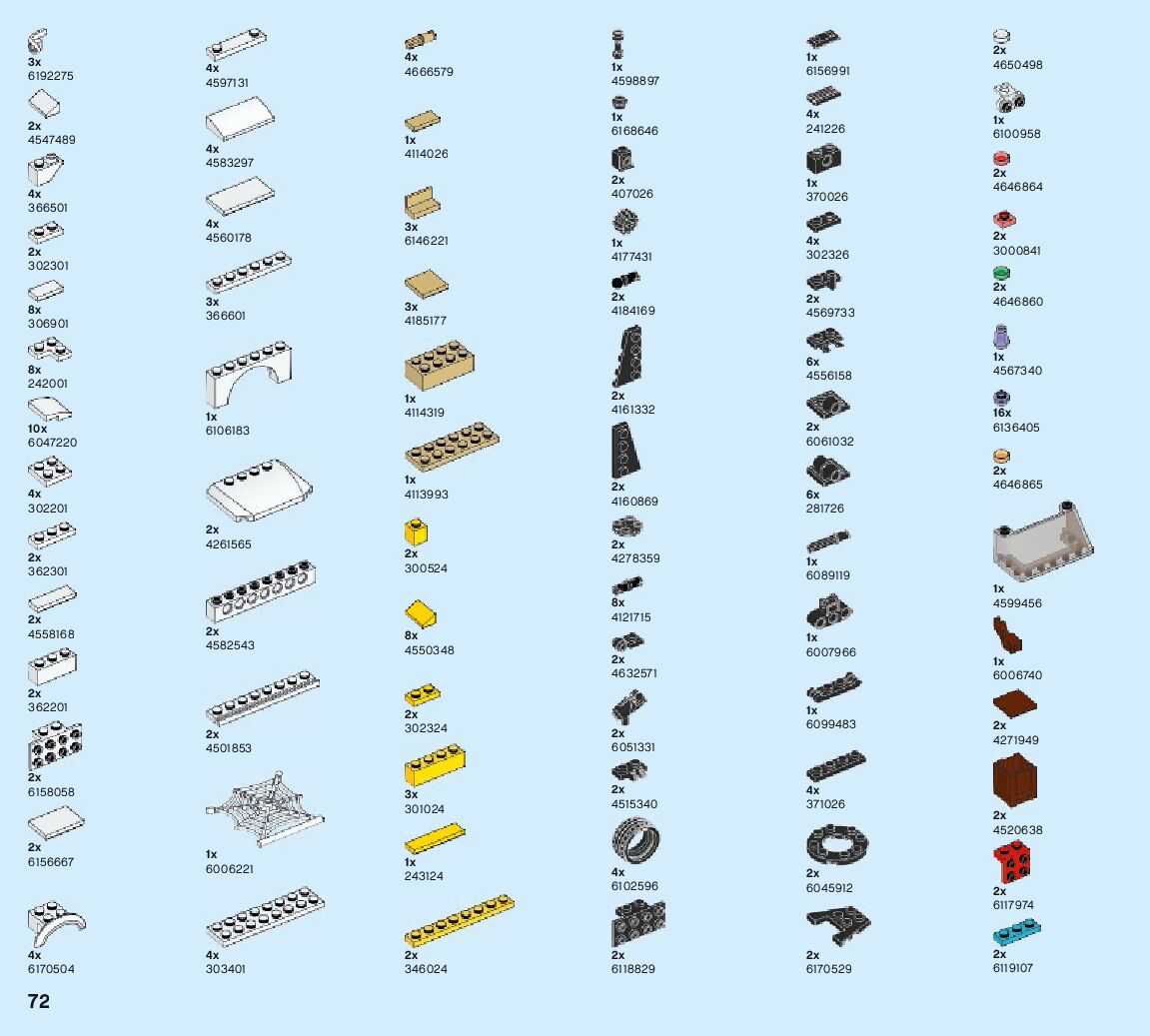 The assembly guide is prepared in a very understandable way for children and adult LEGO enthusiasts. A total of 124 picture galleries are shown, explaining the step-by-step construction stages for 3 different structures.