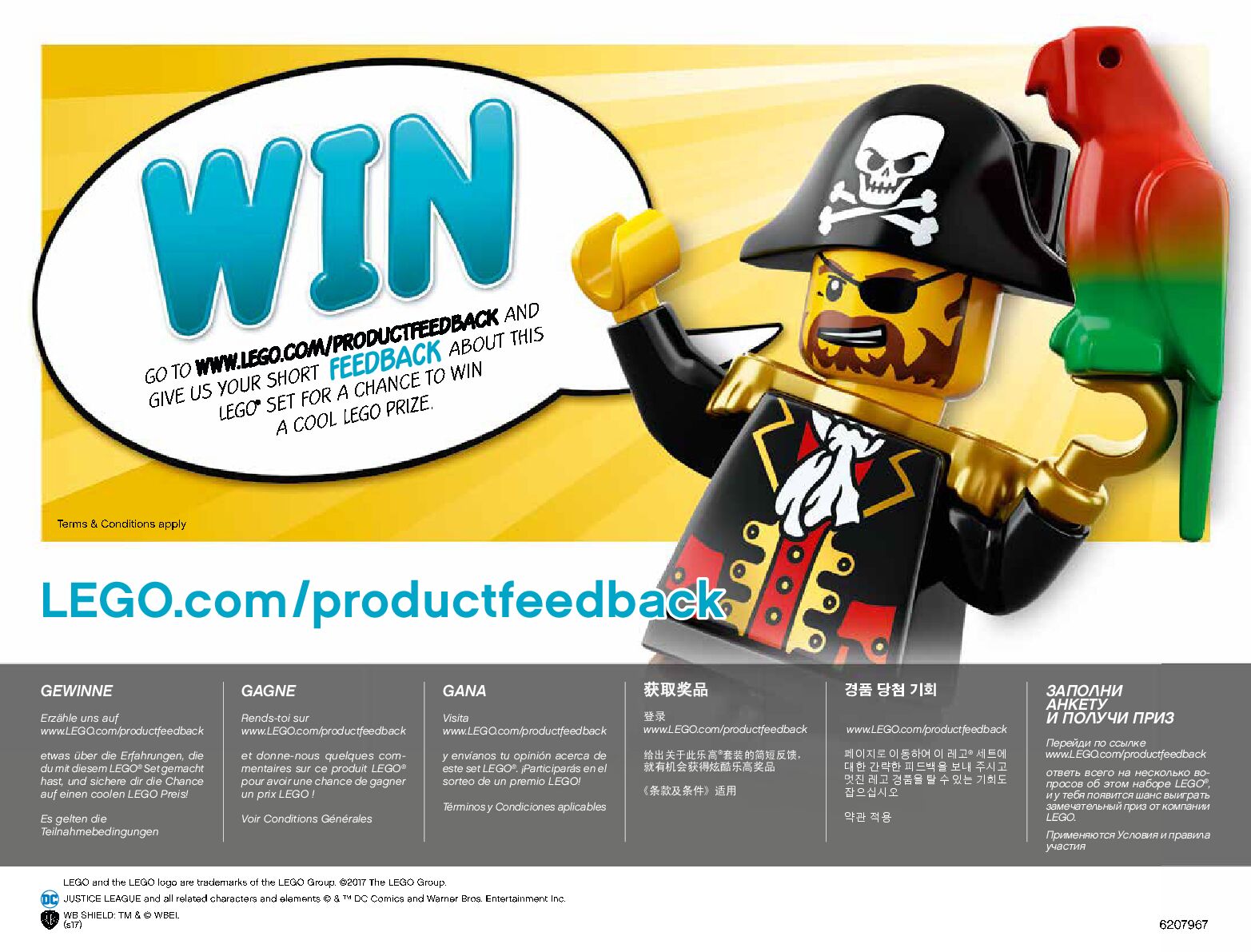 On this page you can find the original construction manual for the LEGO 76087 set. With the assembly manual you can easily learn how to build the 76087 Flying Fox: Batmobile Airlift Attack step by step. The set was released in 2017.
