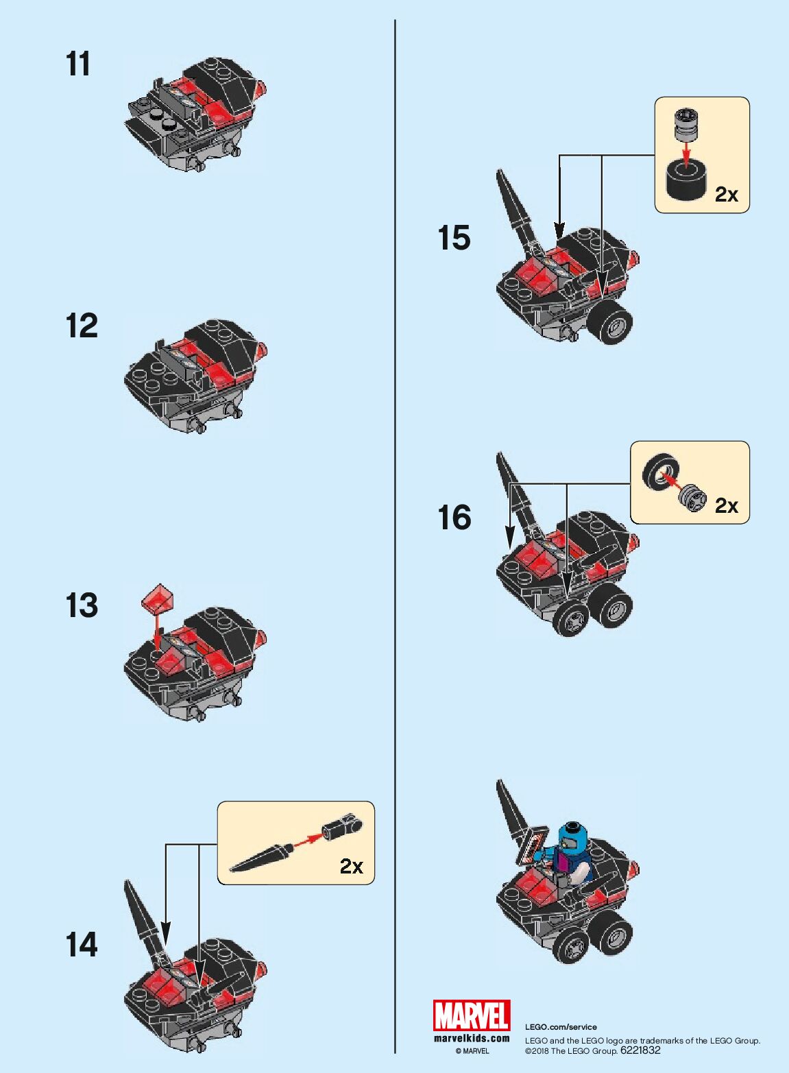 On this page you can find the original construction manual for the LEGO 76090 set. With the assembly manual you can easily learn how to build the 76090 Mighty Micros: Star-Lord vs. Nebula step by step. The set was released in 2018.