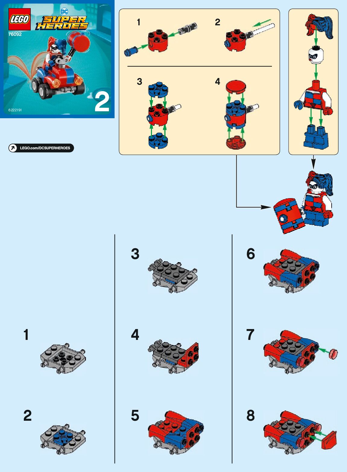 This page shares information about LEGO 76092 Mighty Micros: Batman vs. Harley Quinn manual, LEGO 76092 PDF instructions, LEGO 76092 Mighty Micros: Batman vs. Harley Quinn building guide online, How to build 76092 Mighty Micros: Batman vs. Harley Quinn LEGO.