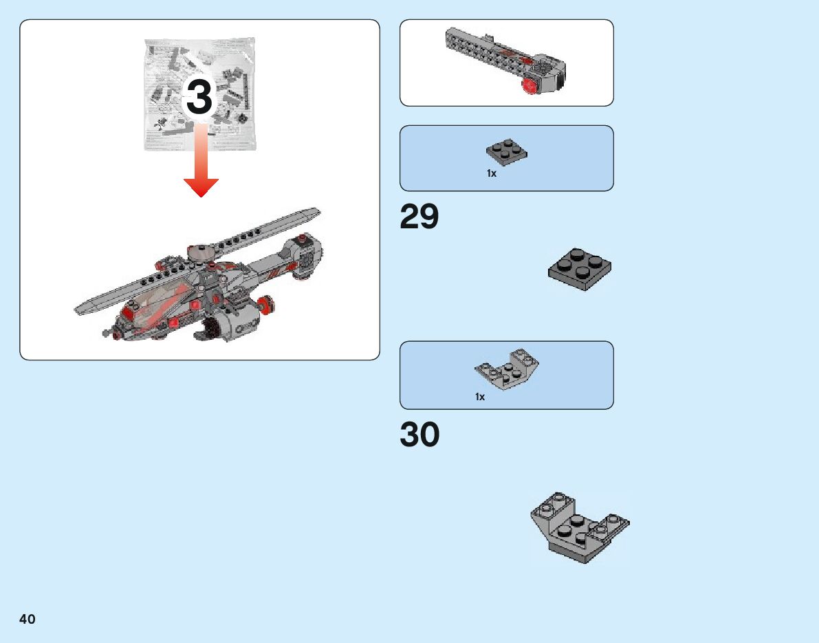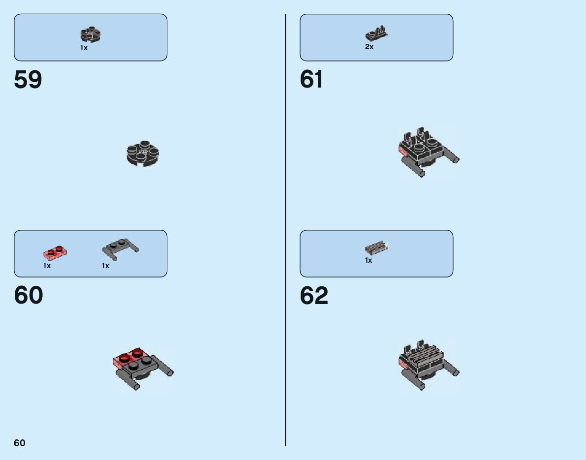 The assembly guide is prepared in a very understandable way for children and adult LEGO enthusiasts. A total of 80 picture galleries are shown, explaining the step-by-step construction stages for 1 different structures.