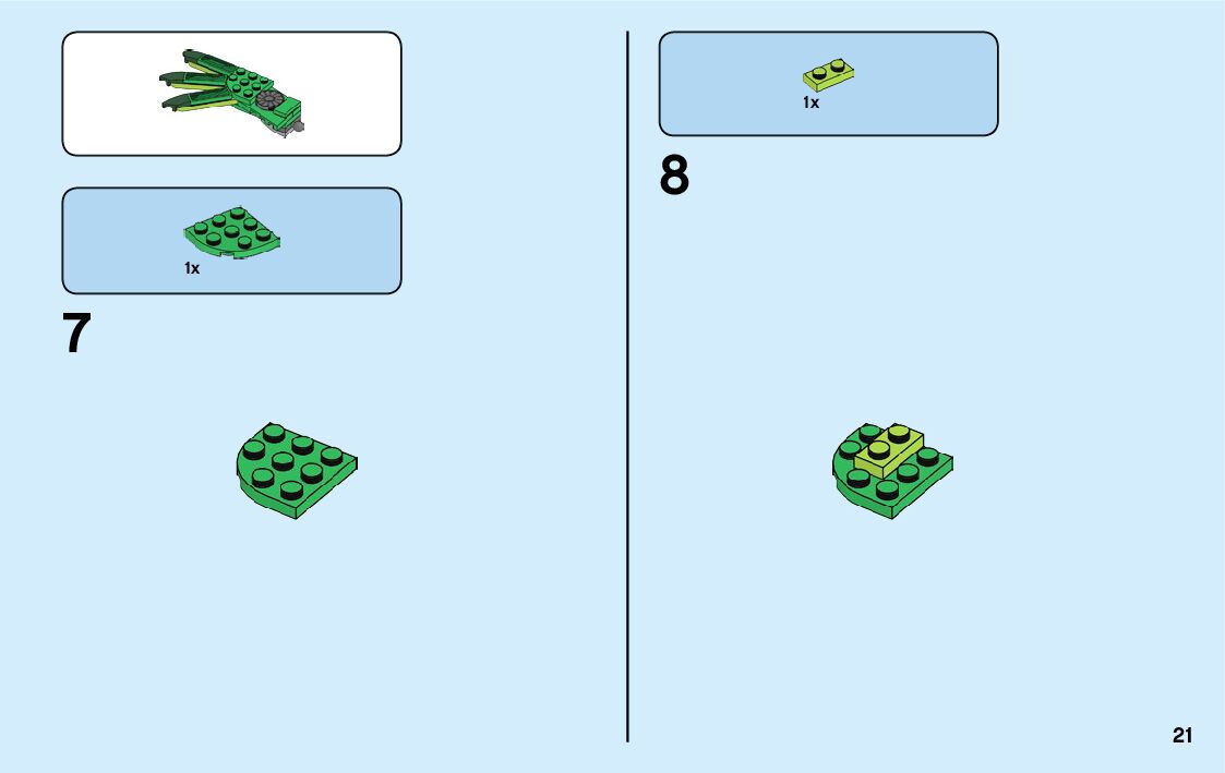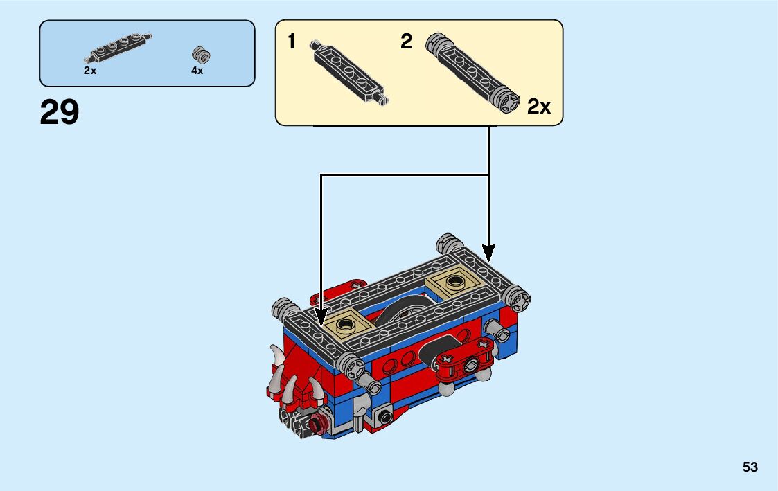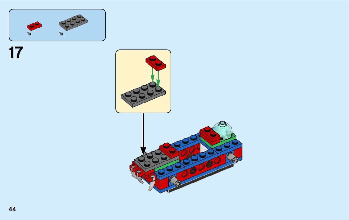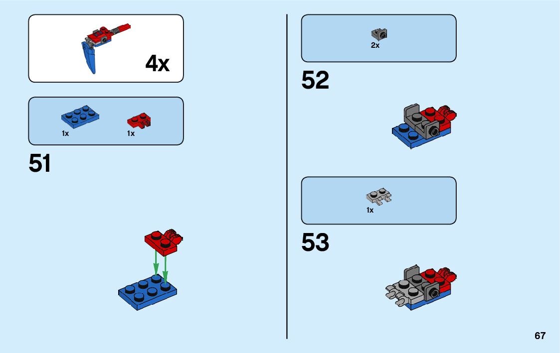 The assembly guide is prepared in a very understandable way for children and adult LEGO enthusiasts. A total of 84 picture galleries are shown, explaining the step-by-step construction stages for 1 different structures.