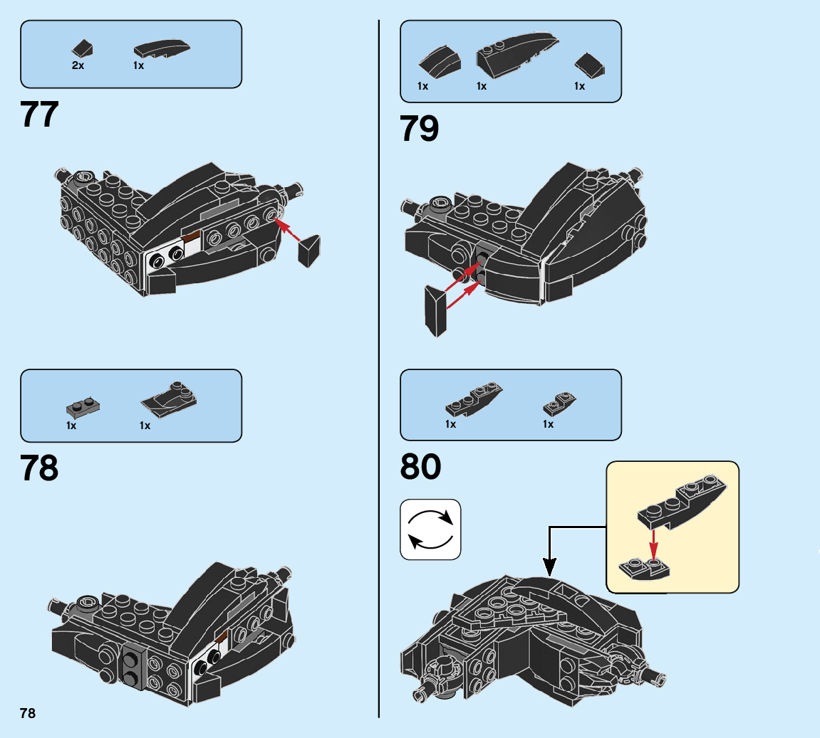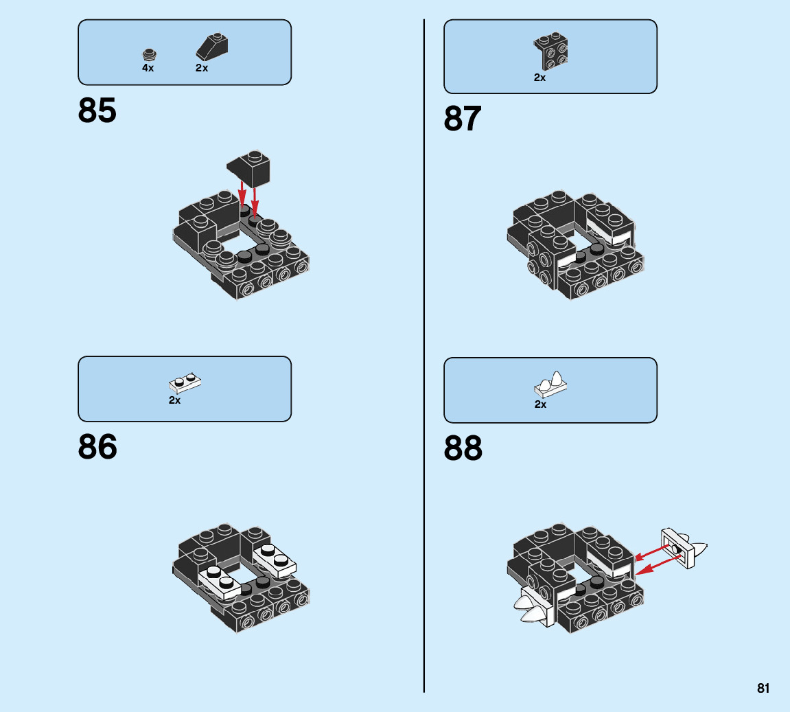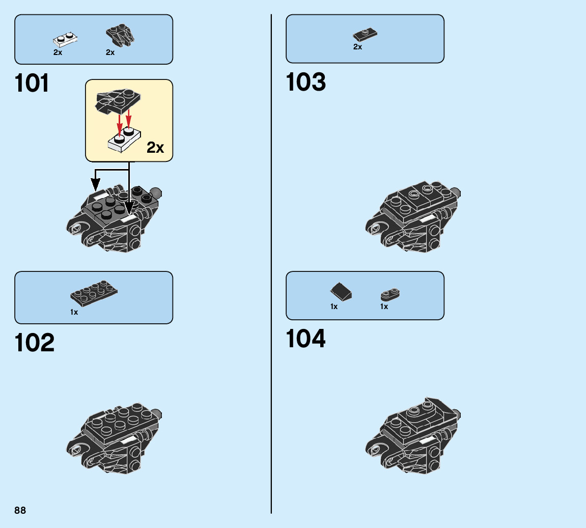 The assembly guide is prepared in a very understandable way for children and adult LEGO enthusiasts. A total of 104 picture galleries are shown, explaining the step-by-step construction stages for 1 different structures.