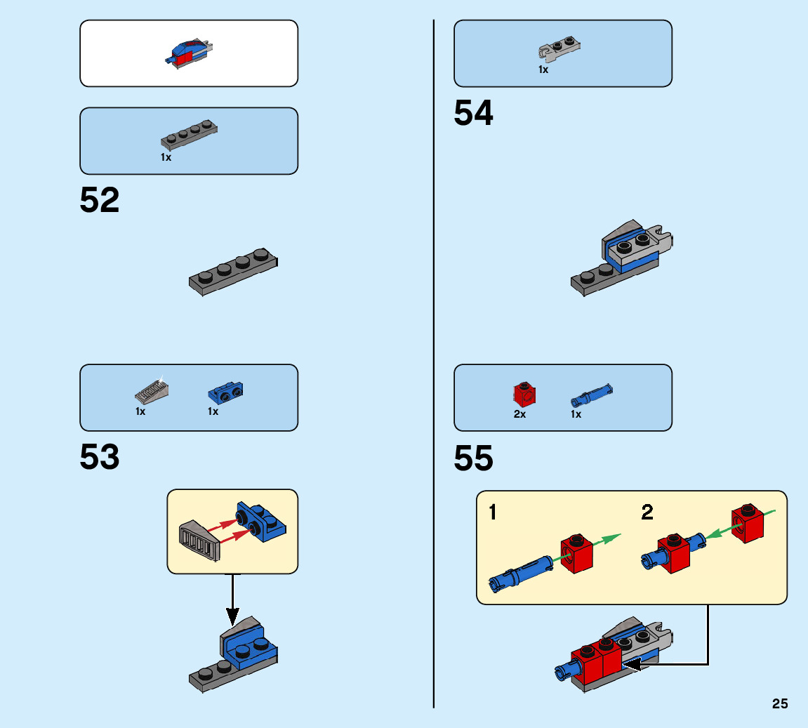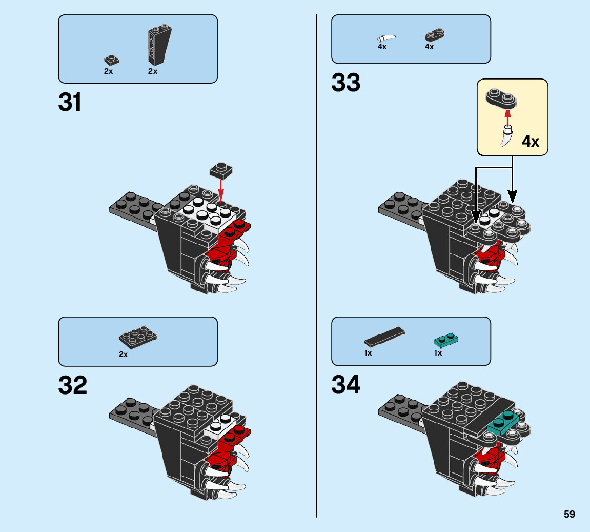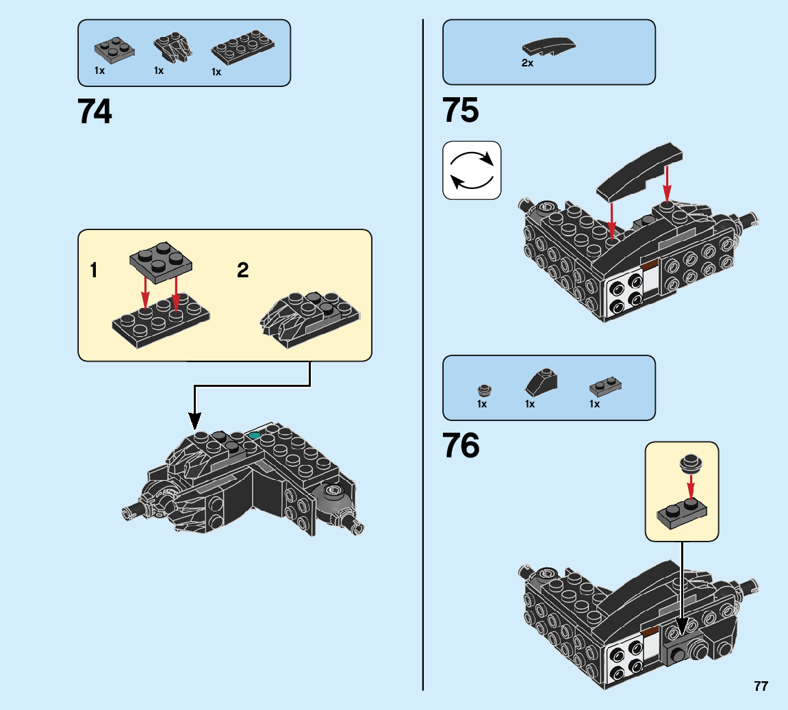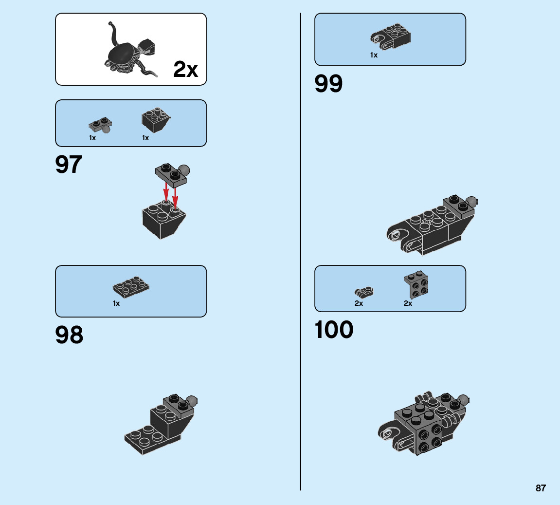 The assembly guide is prepared in a very understandable way for children and adult LEGO enthusiasts. A total of 104 picture galleries are shown, explaining the step-by-step construction stages for 1 different structures.