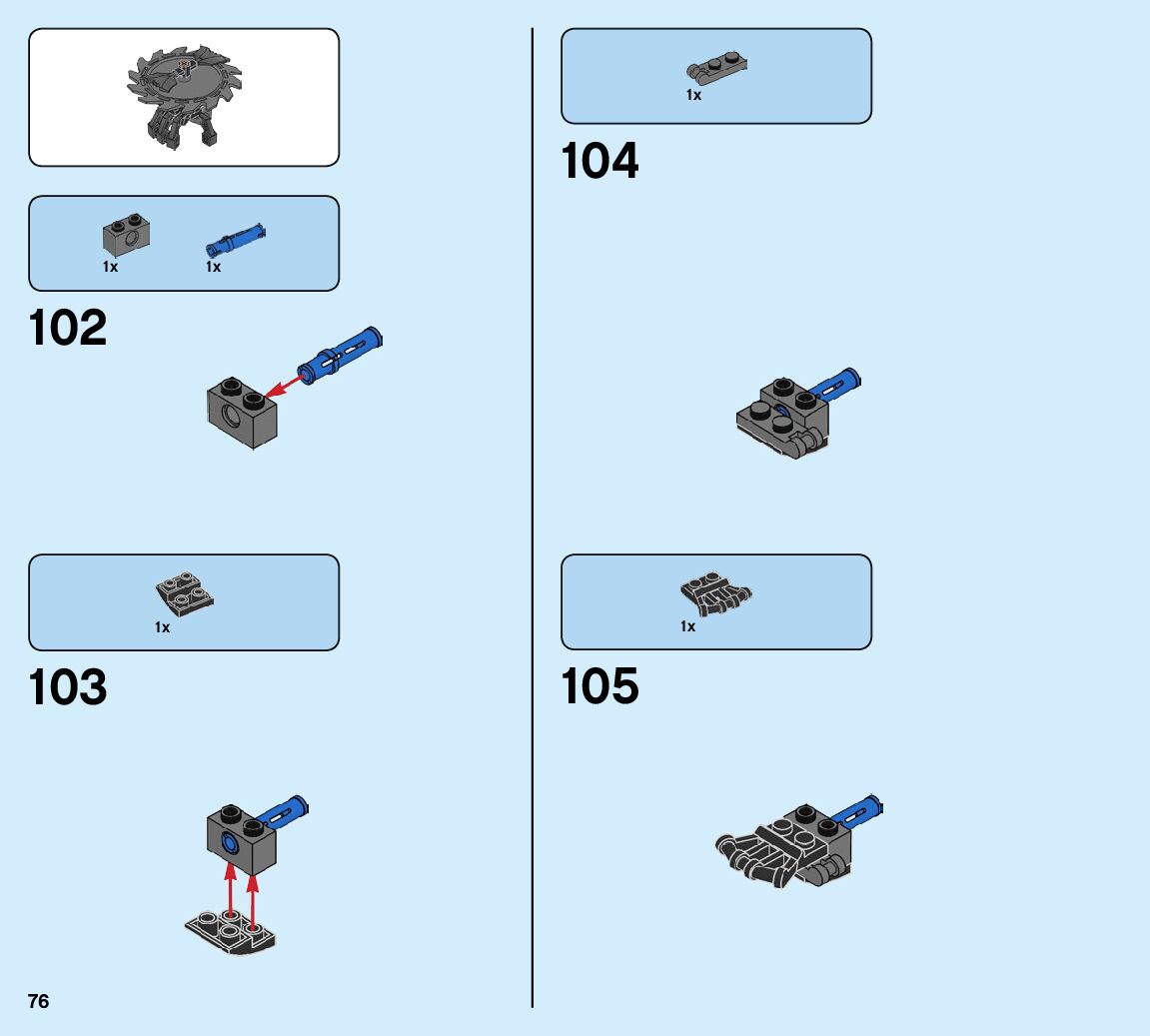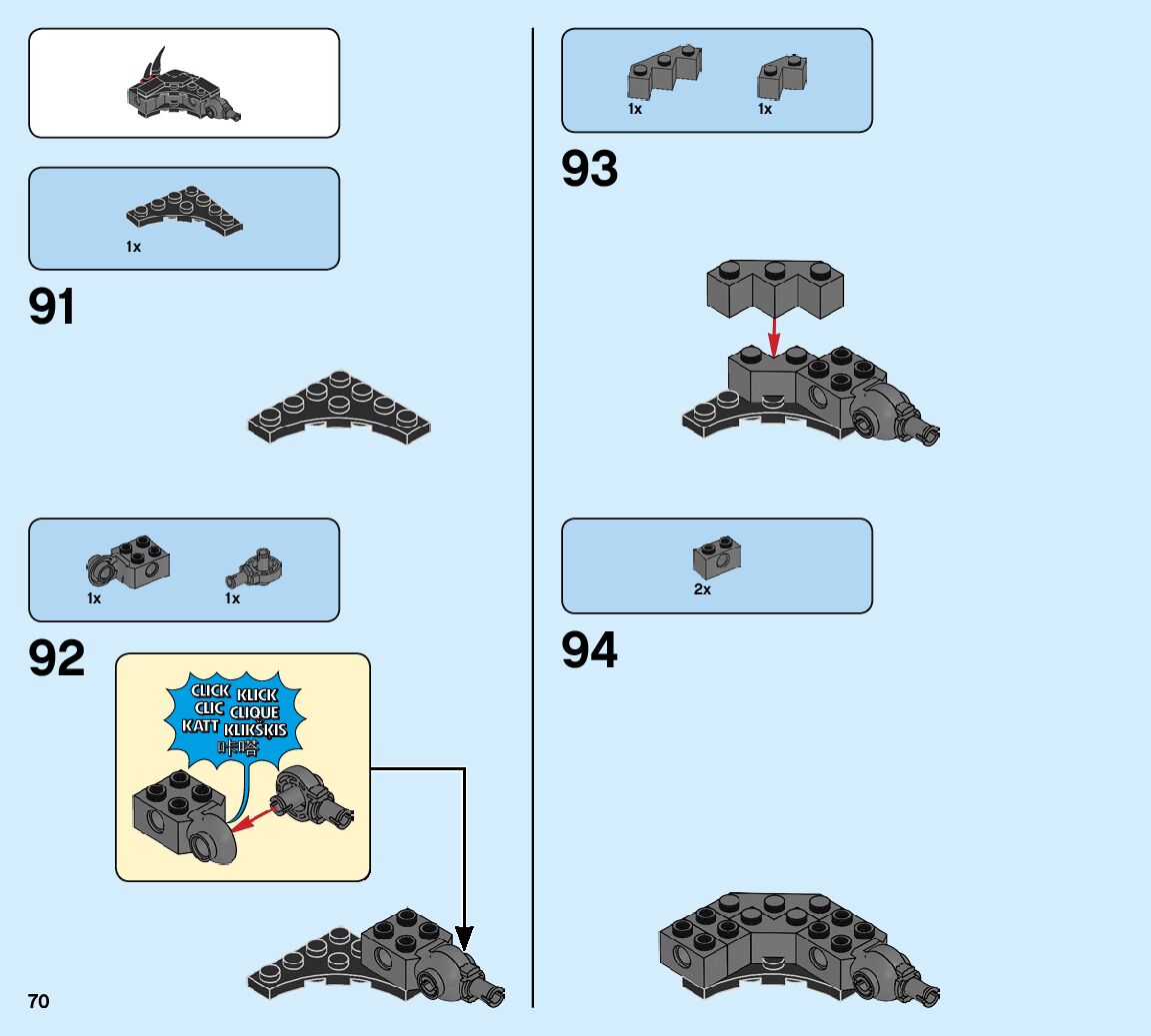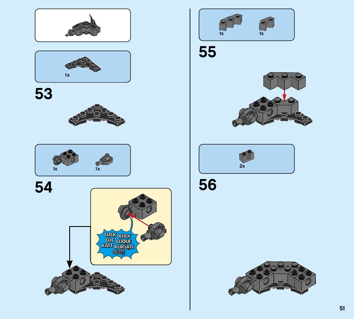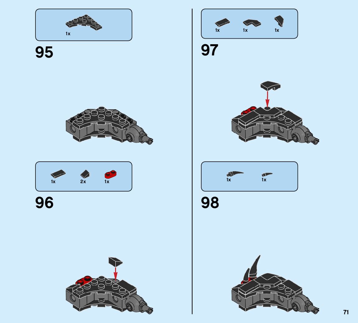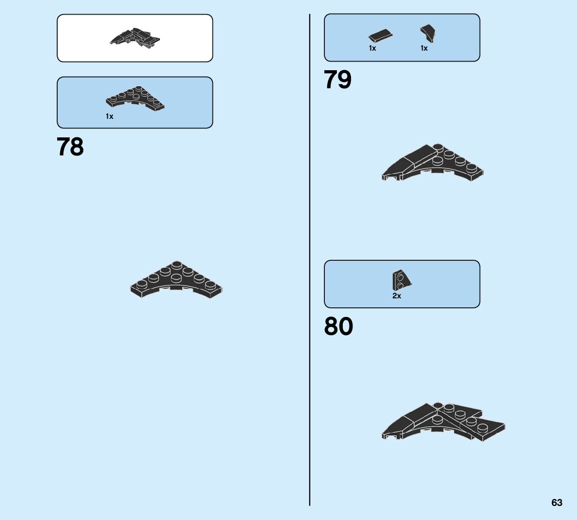 The assembly guide is prepared in a very understandable way for children and adult LEGO enthusiasts. A total of 93 picture galleries are shown, explaining the step-by-step construction stages for 1 different structures.