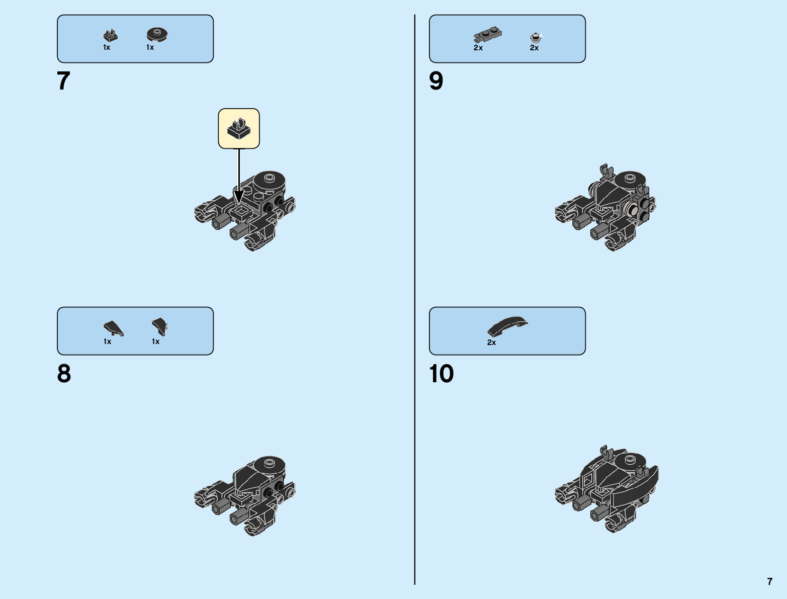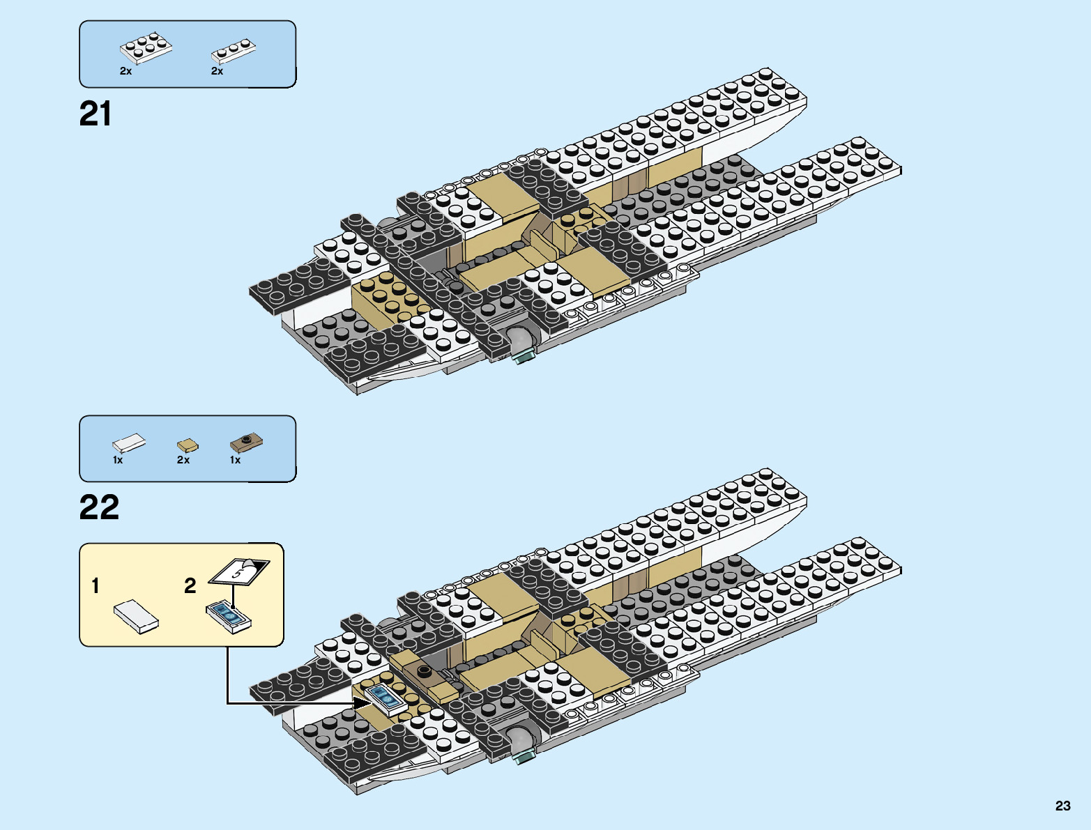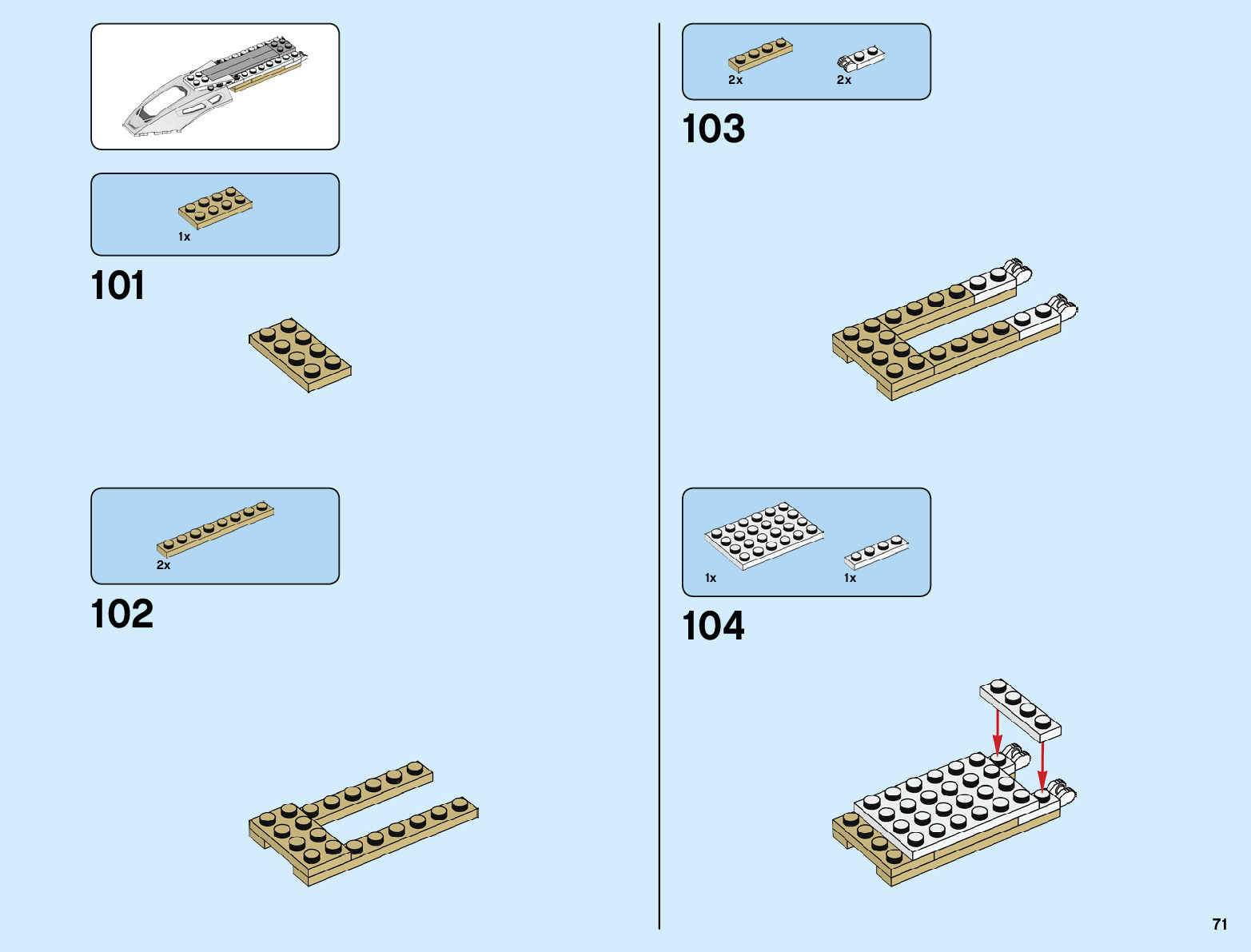 The assembly guide is prepared in a very understandable way for children and adult LEGO enthusiasts. A total of 96 picture galleries are shown, explaining the step-by-step construction stages for 1 different structures.