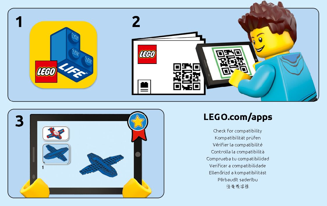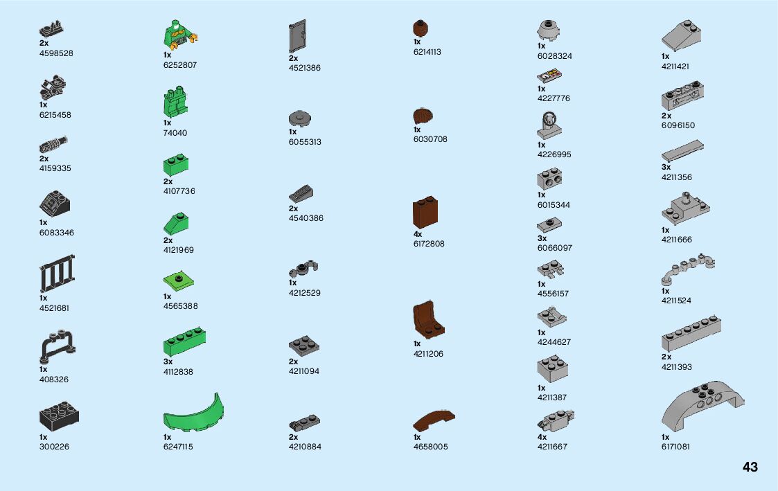 The assembly guide is prepared in a very understandable way for children and adult LEGO enthusiasts. A total of 96 picture galleries are shown, explaining the step-by-step construction stages for 3 different structures.