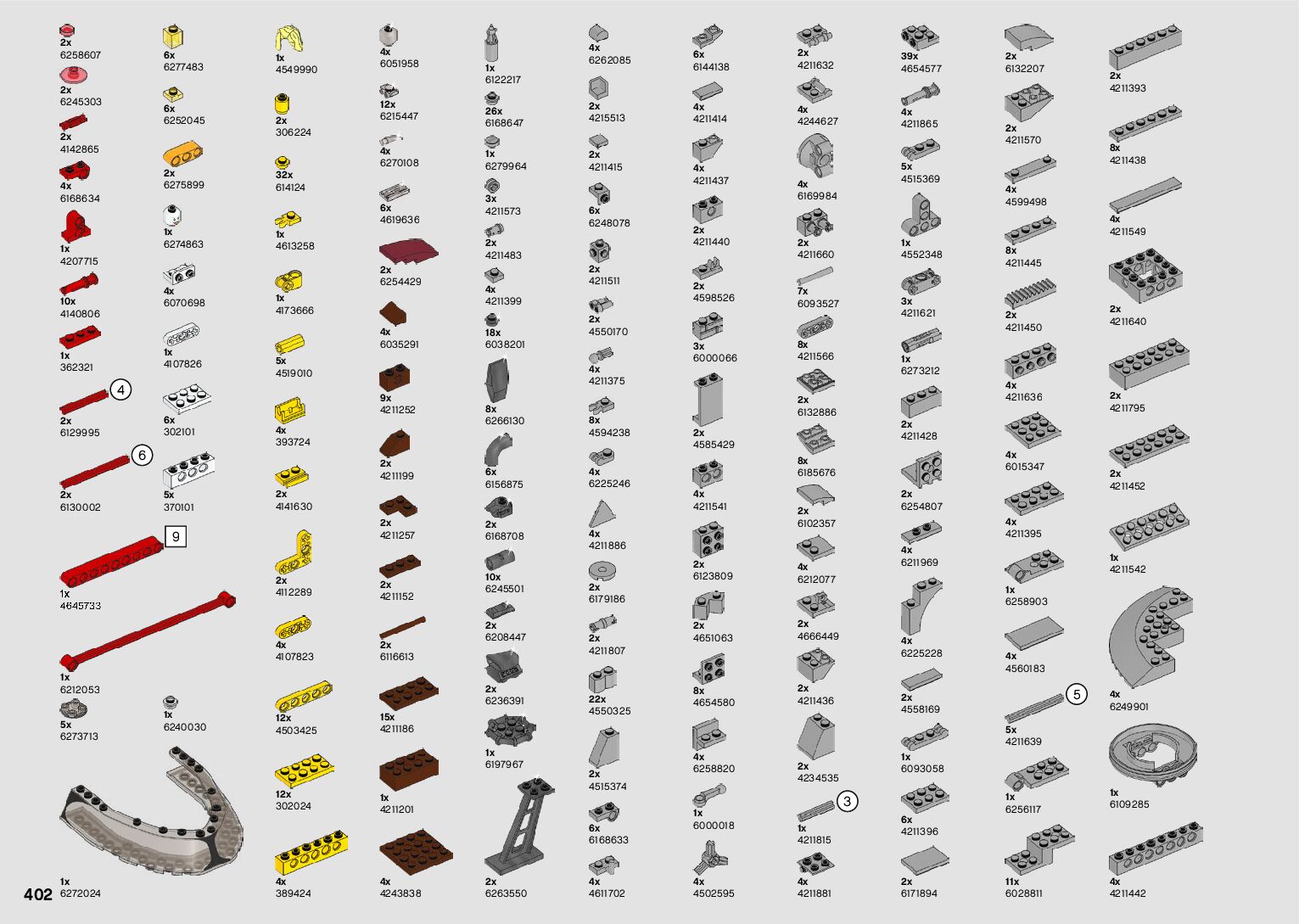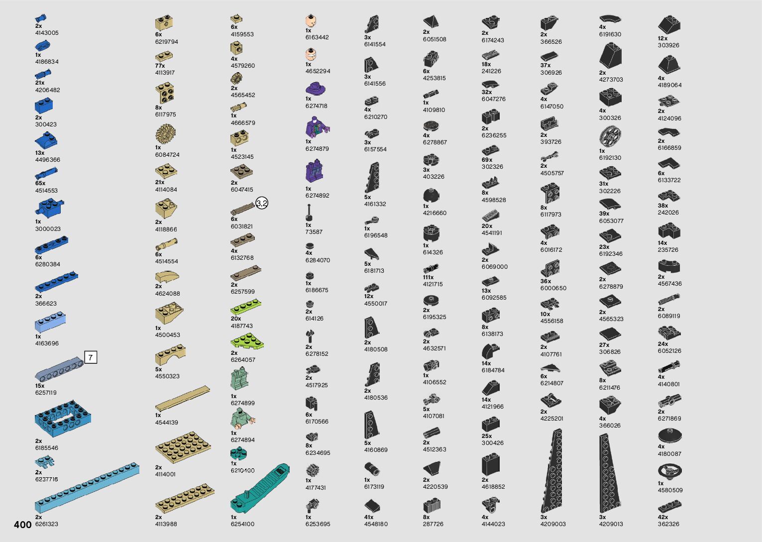The assembly guide is prepared in a very understandable way for children and adult LEGO enthusiasts. A total of 404 picture galleries are shown, explaining the step-by-step construction stages for 1 different structures.