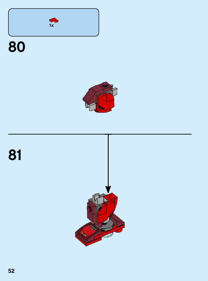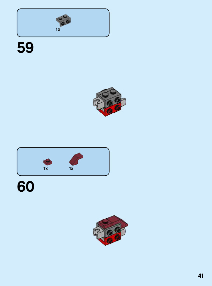 The assembly guide is prepared in a very understandable way for children and adult LEGO enthusiasts. A total of 64 picture galleries are shown, explaining the step-by-step construction stages for 1 different structures.