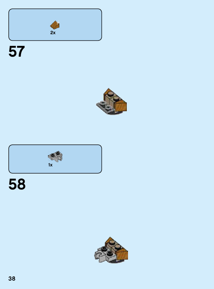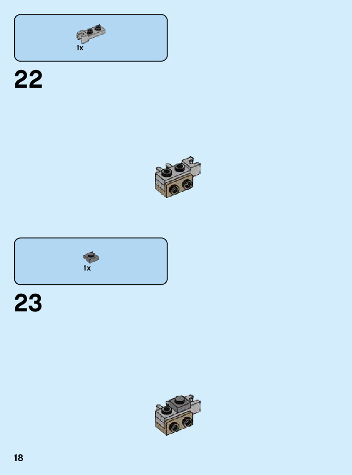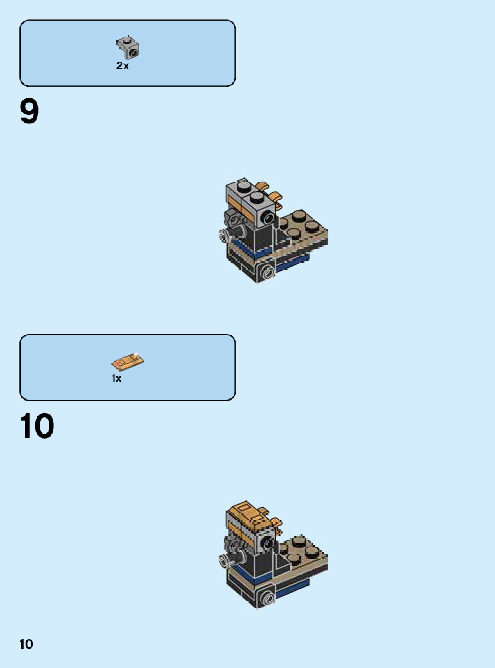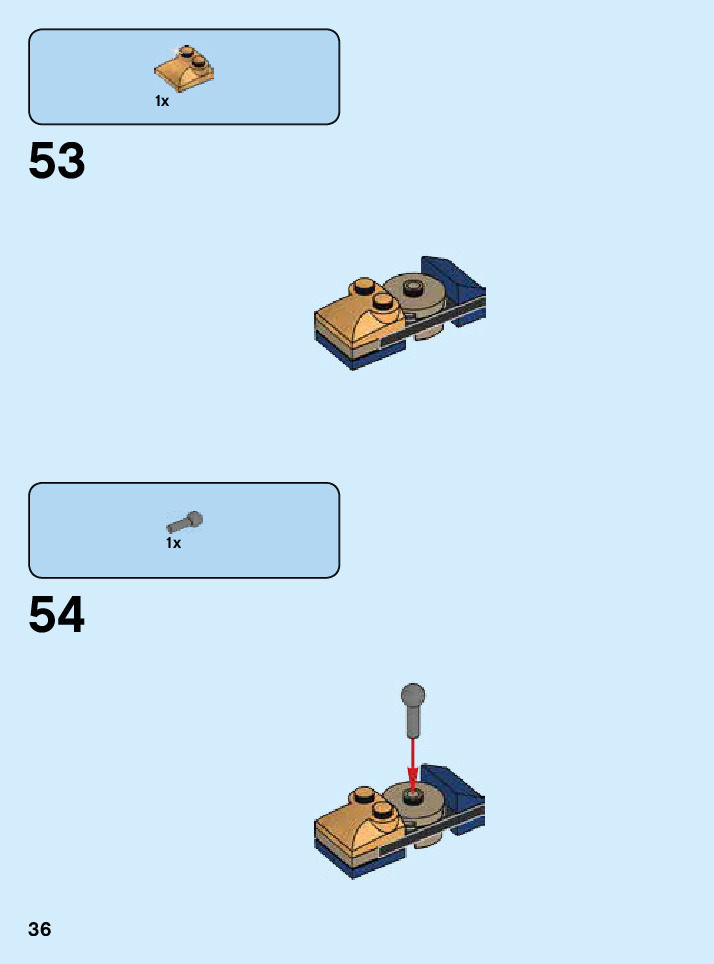 The assembly guide is prepared in a very understandable way for children and adult LEGO enthusiasts. A total of 56 picture galleries are shown, explaining the step-by-step construction stages for 1 different structures.