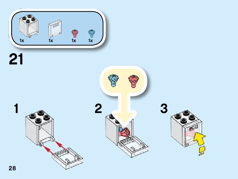 The assembly guide is prepared in a very understandable way for children and adult LEGO enthusiasts. A total of 640 picture galleries are shown, explaining the step-by-step construction stages for 3 different structures.