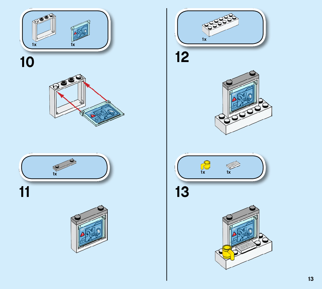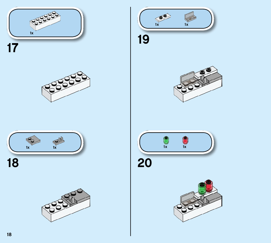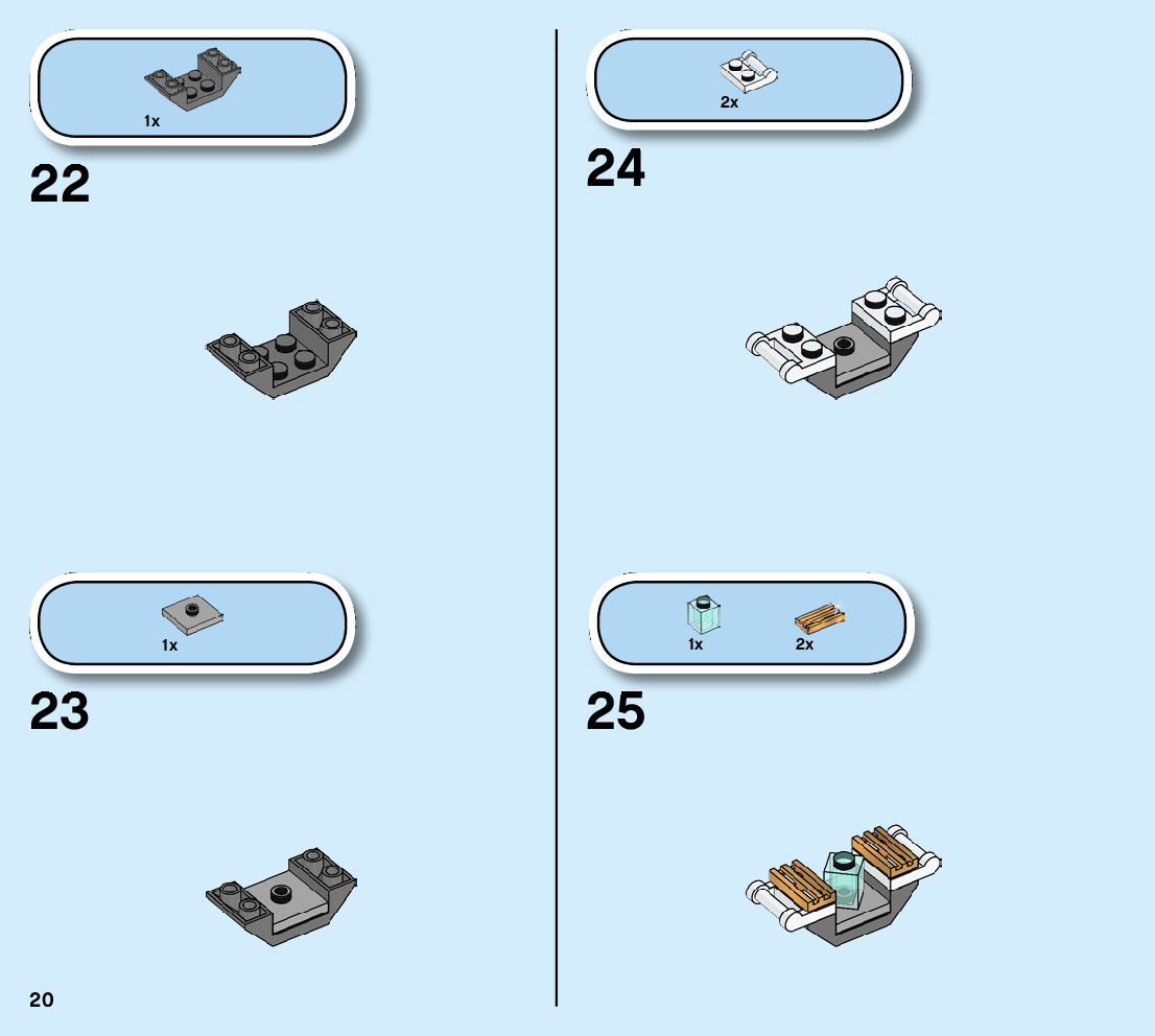 The assembly guide is prepared in a very understandable way for children and adult LEGO enthusiasts. A total of 124 picture galleries are shown, explaining the step-by-step construction stages for 3 different structures.