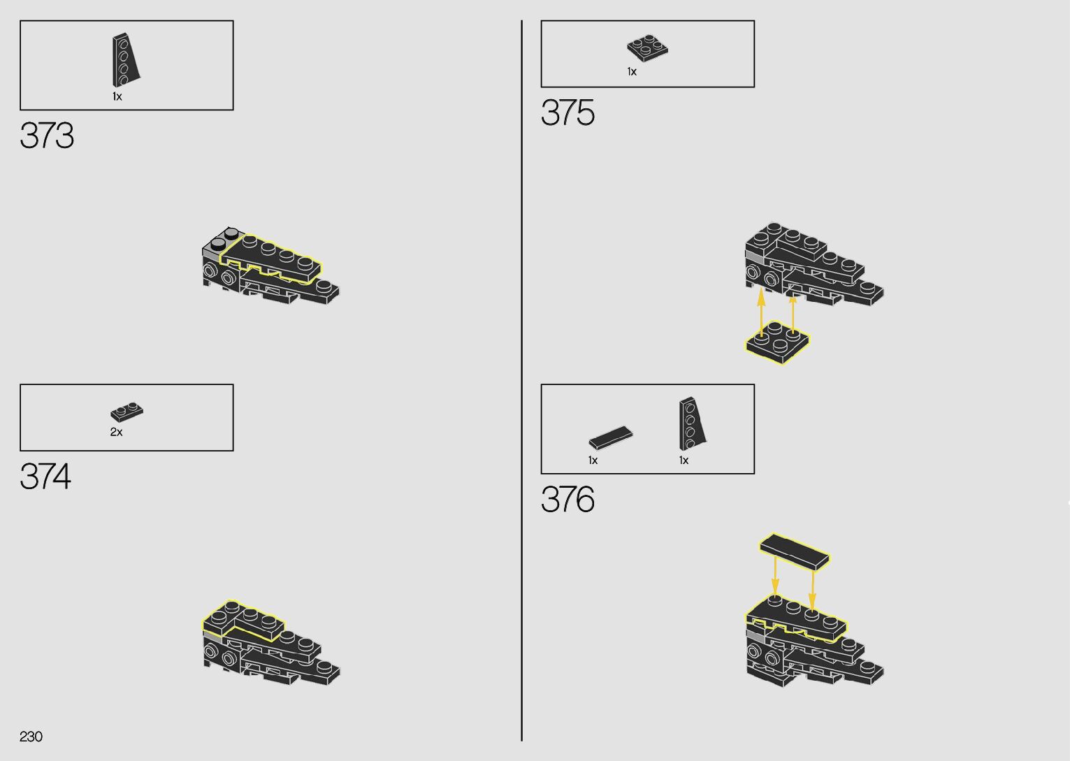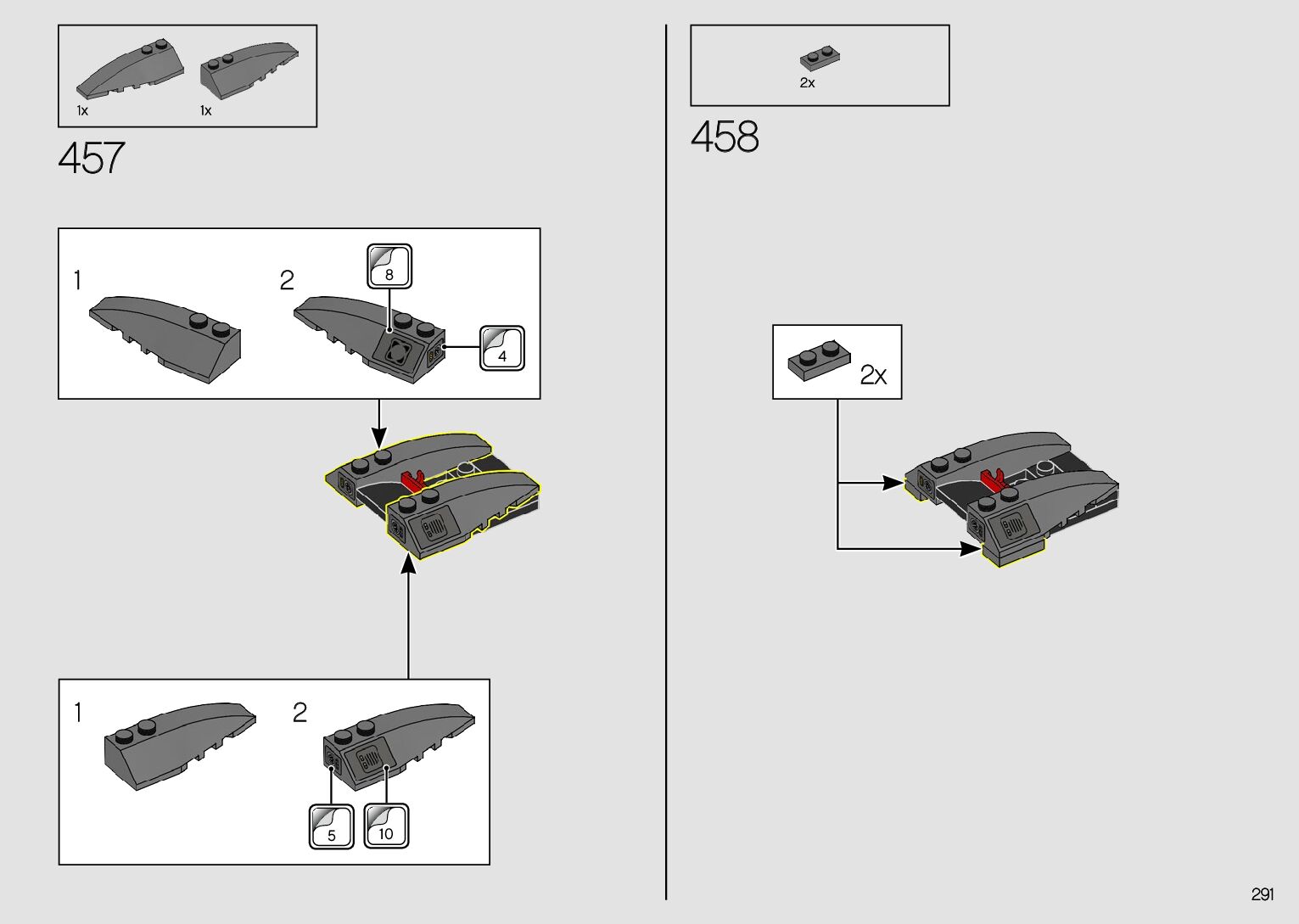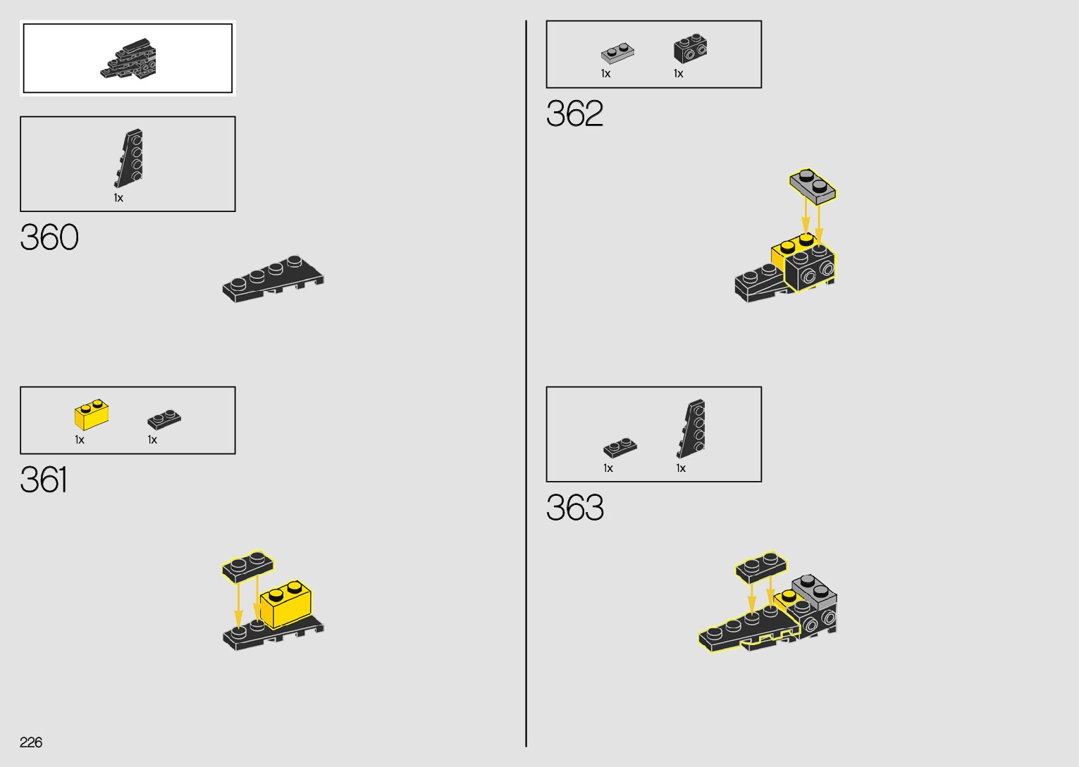 The assembly guide is prepared in a very understandable way for children and adult LEGO enthusiasts. A total of 380 picture galleries are shown, explaining the step-by-step construction stages for 2 different structures.