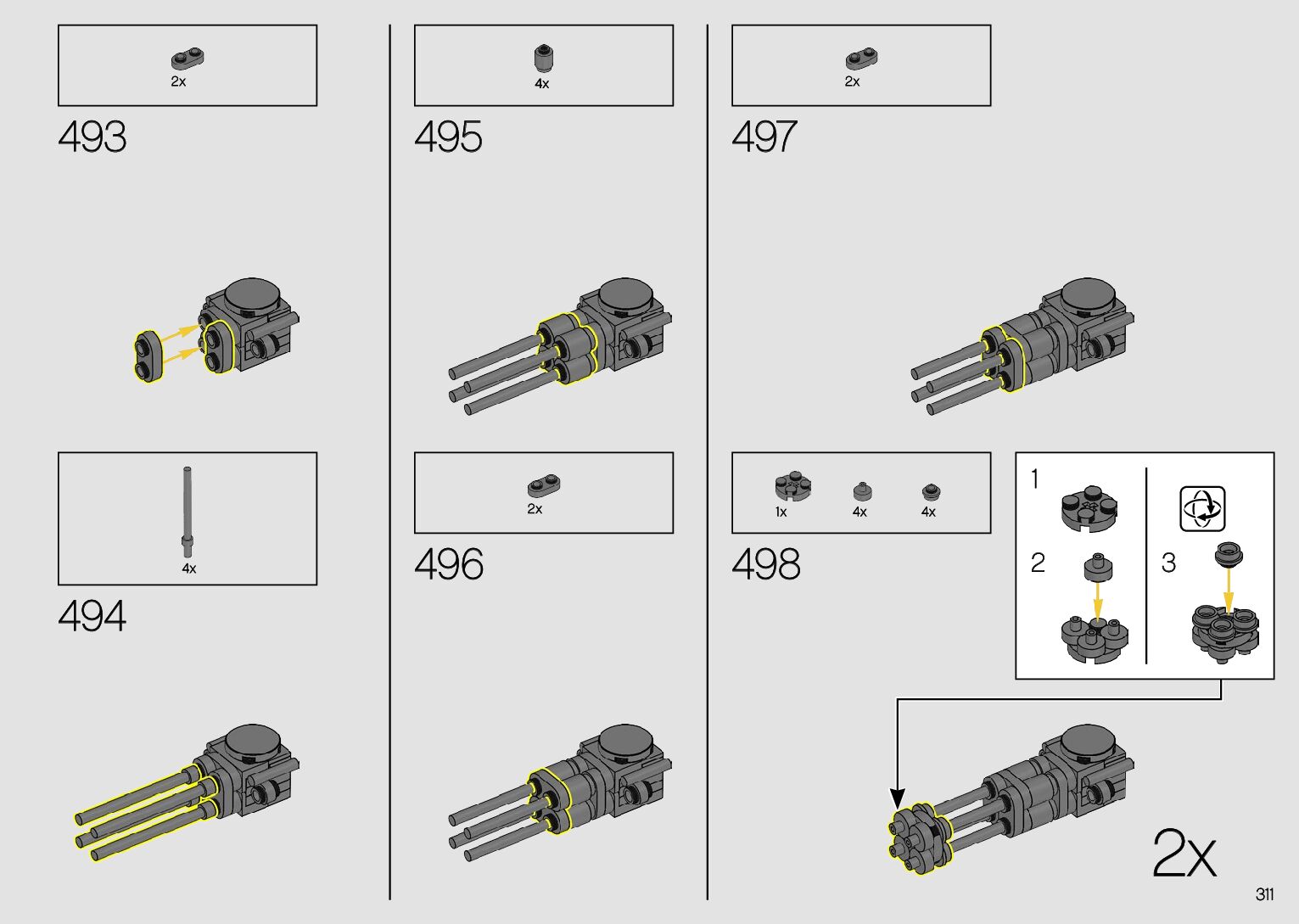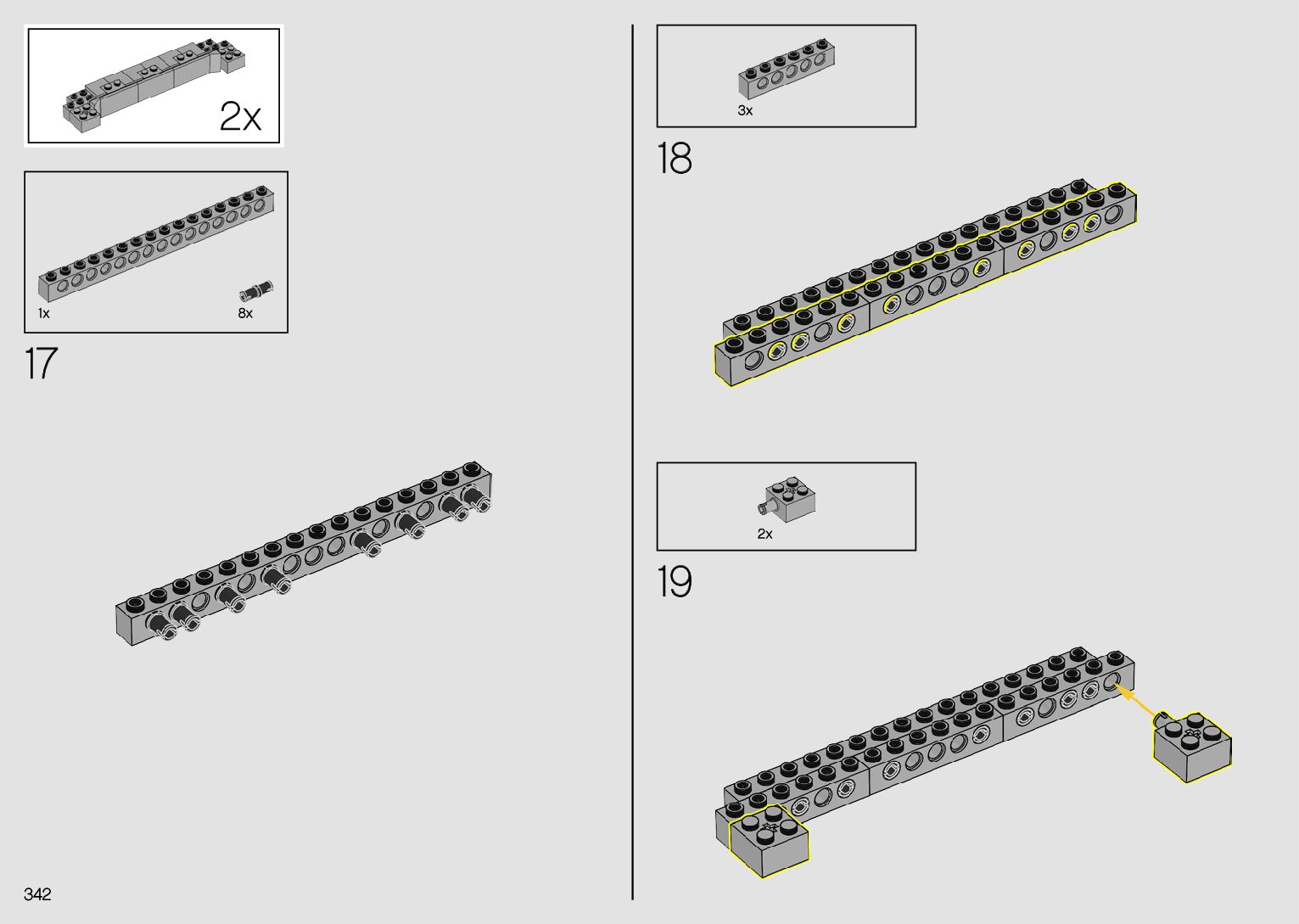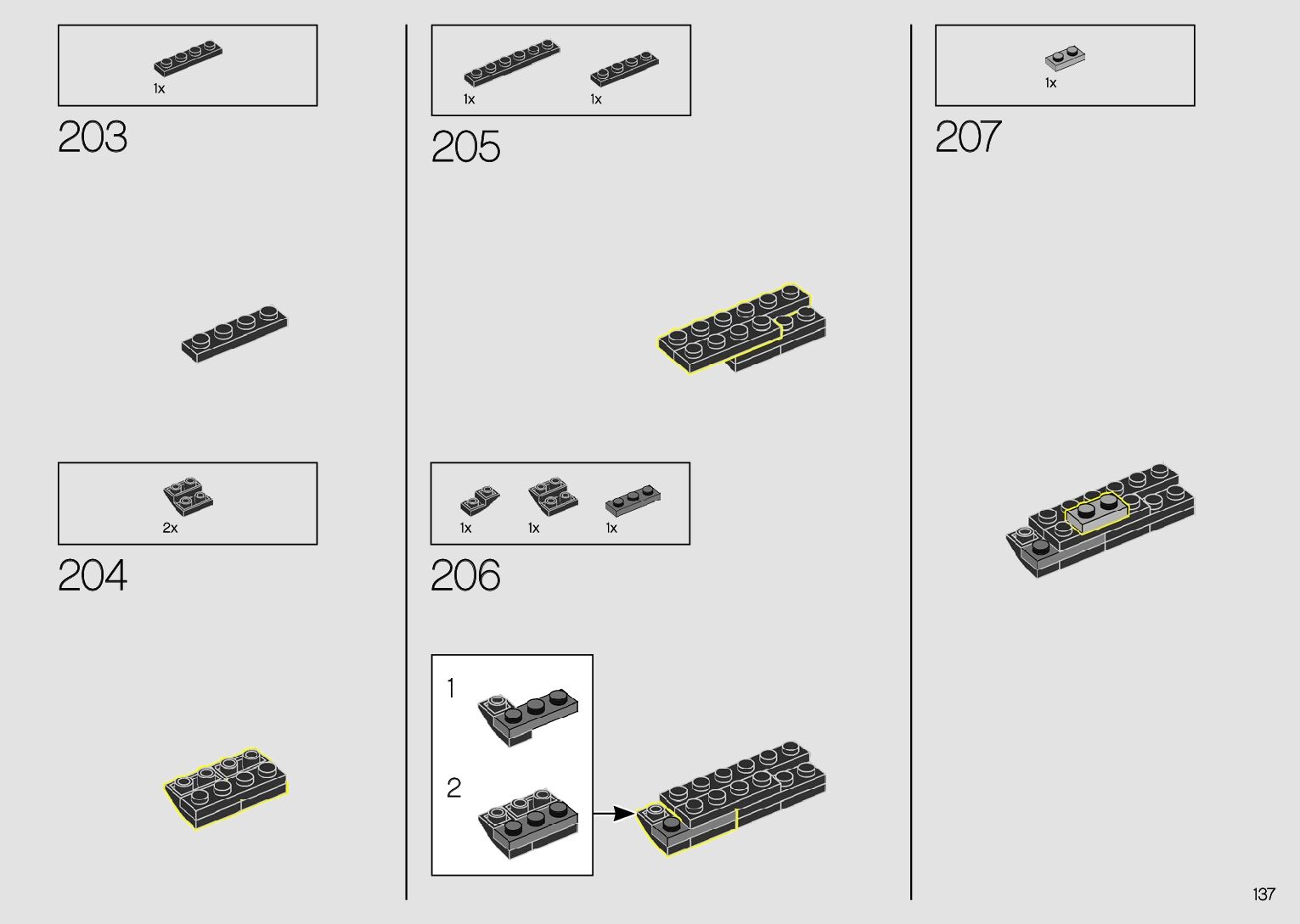 The assembly guide is prepared in a very understandable way for children and adult LEGO enthusiasts. A total of 380 picture galleries are shown, explaining the step-by-step construction stages for 2 different structures.