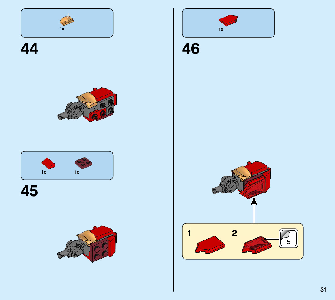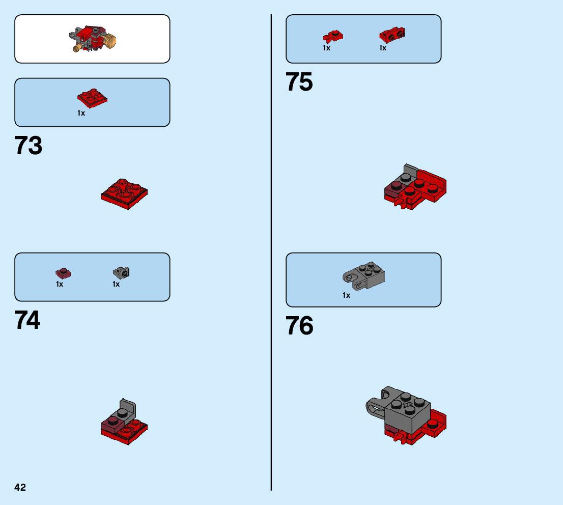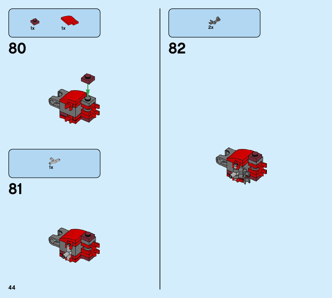 The assembly guide is prepared in a very understandable way for children and adult LEGO enthusiasts. A total of 80 picture galleries are shown, explaining the step-by-step construction stages for 1 different structures.
