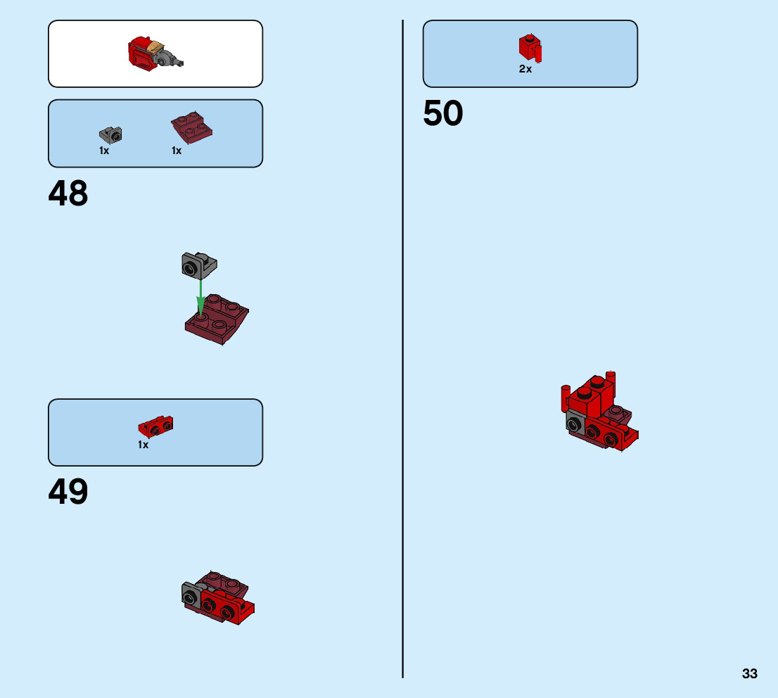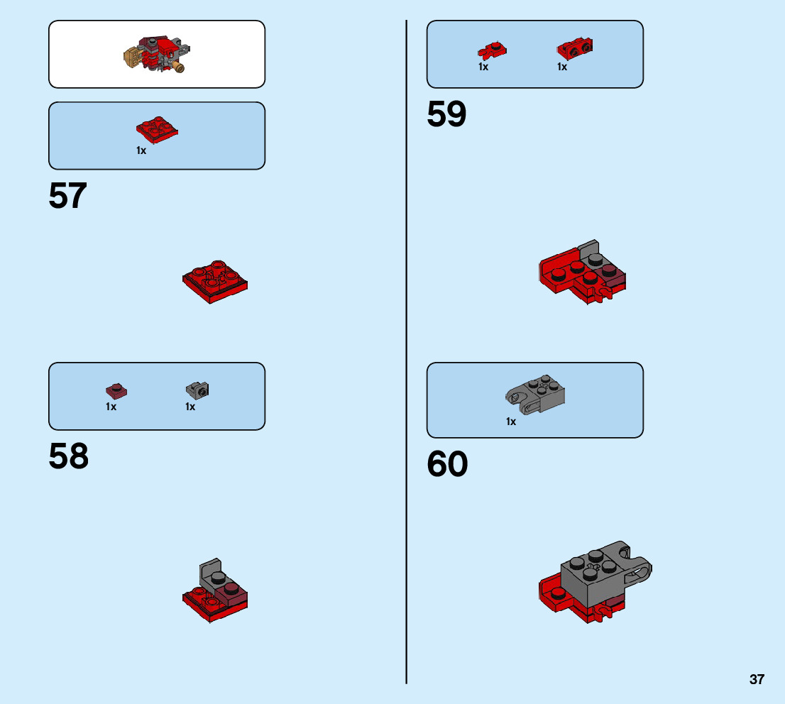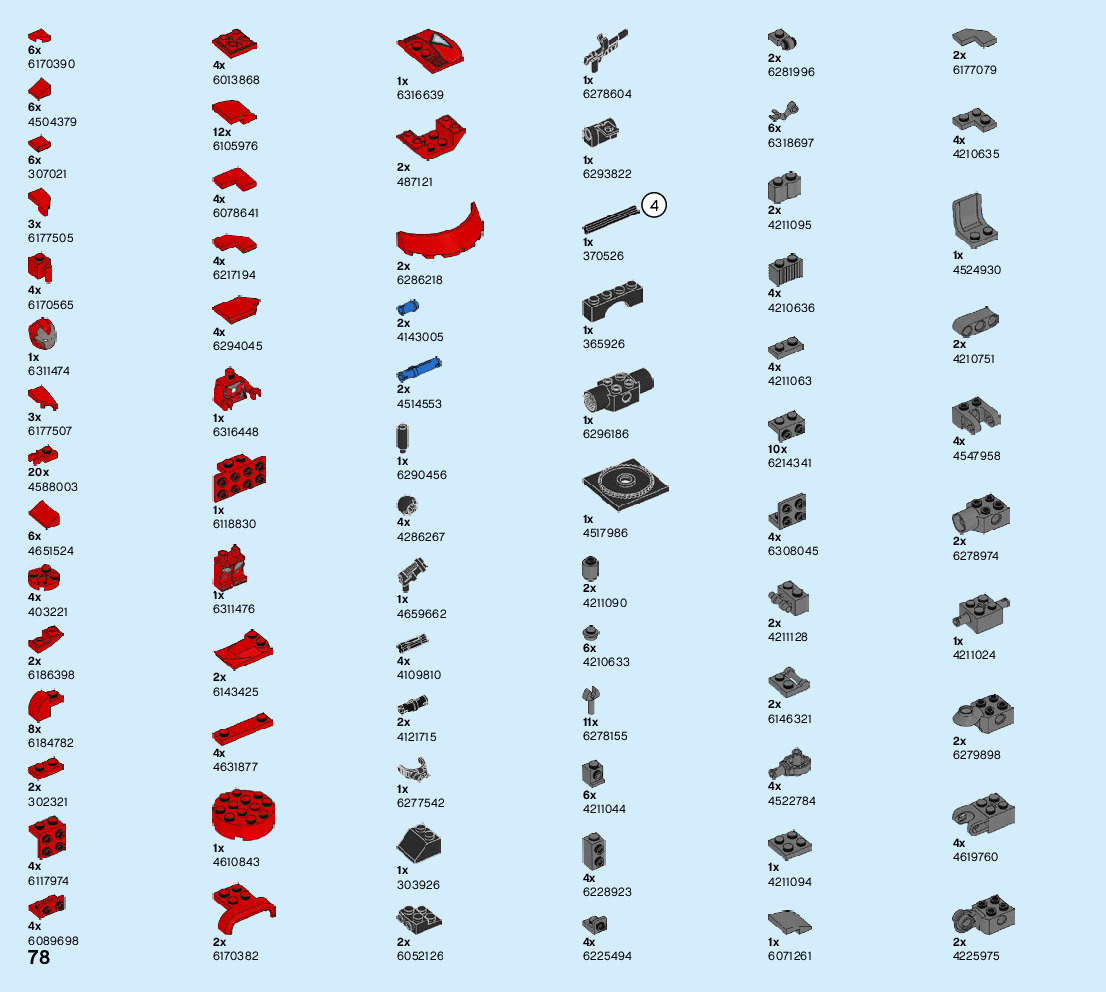 The assembly guide is prepared in a very understandable way for children and adult LEGO enthusiasts. A total of 80 picture galleries are shown, explaining the step-by-step construction stages for 1 different structures.