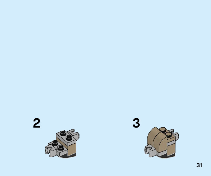 The assembly guide is prepared in a very understandable way for children and adult LEGO enthusiasts. A total of 64 picture galleries are shown, explaining the step-by-step construction stages for 1 different structures.