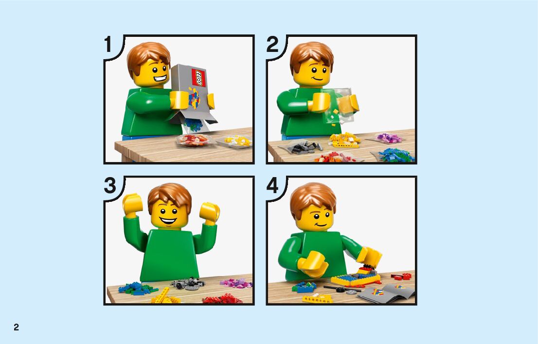 The assembly guide is prepared in a very understandable way for children and adult LEGO enthusiasts. A total of 72 picture galleries are shown, explaining the step-by-step construction stages for 3 different structures.
