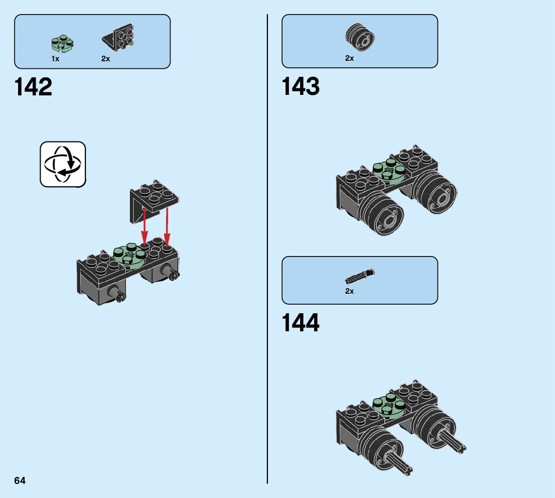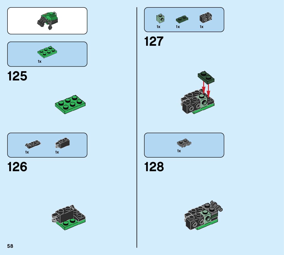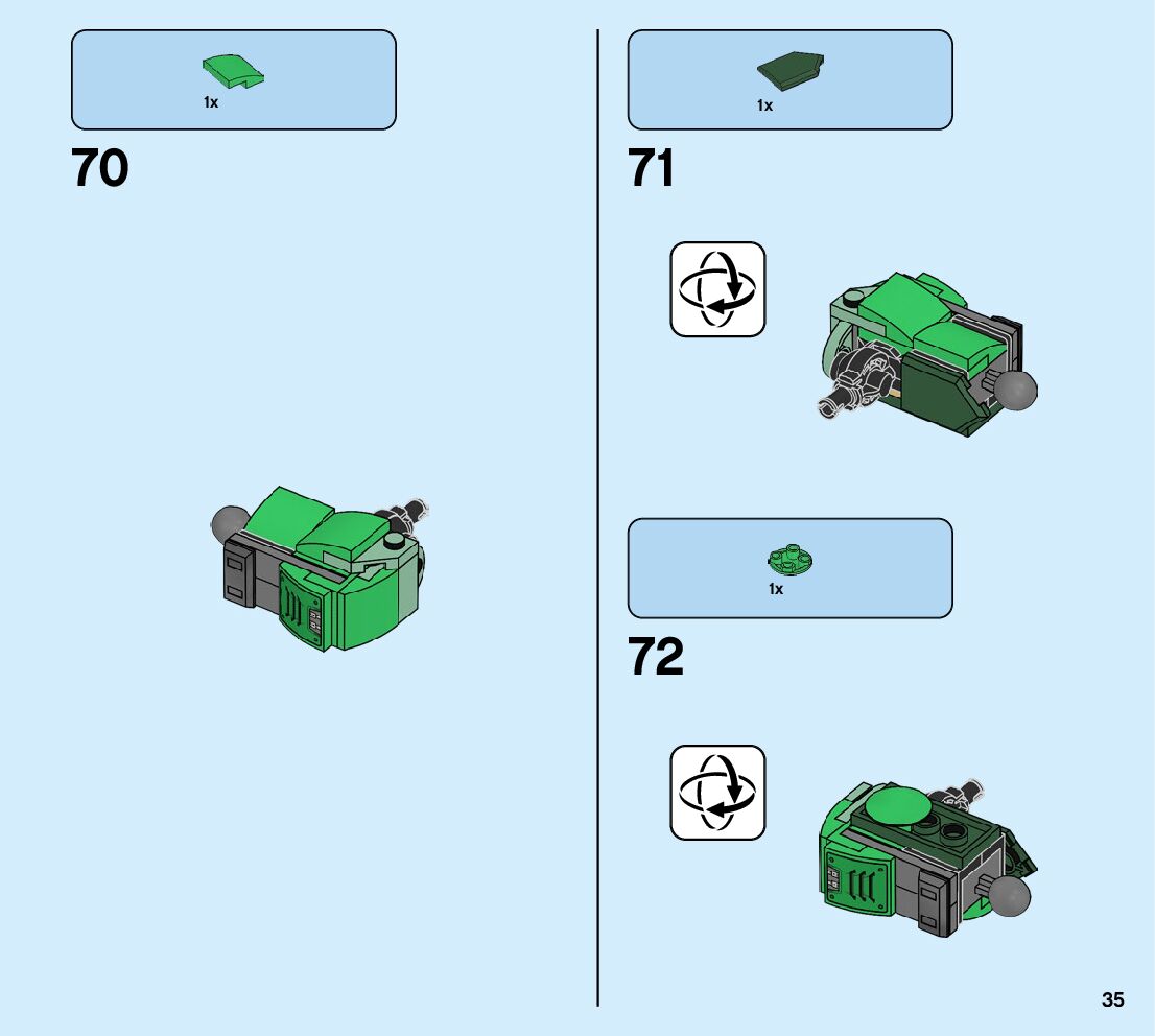 The assembly guide is prepared in a very understandable way for children and adult LEGO enthusiasts. A total of 72 picture galleries are shown, explaining the step-by-step construction stages for 1 different structures.
