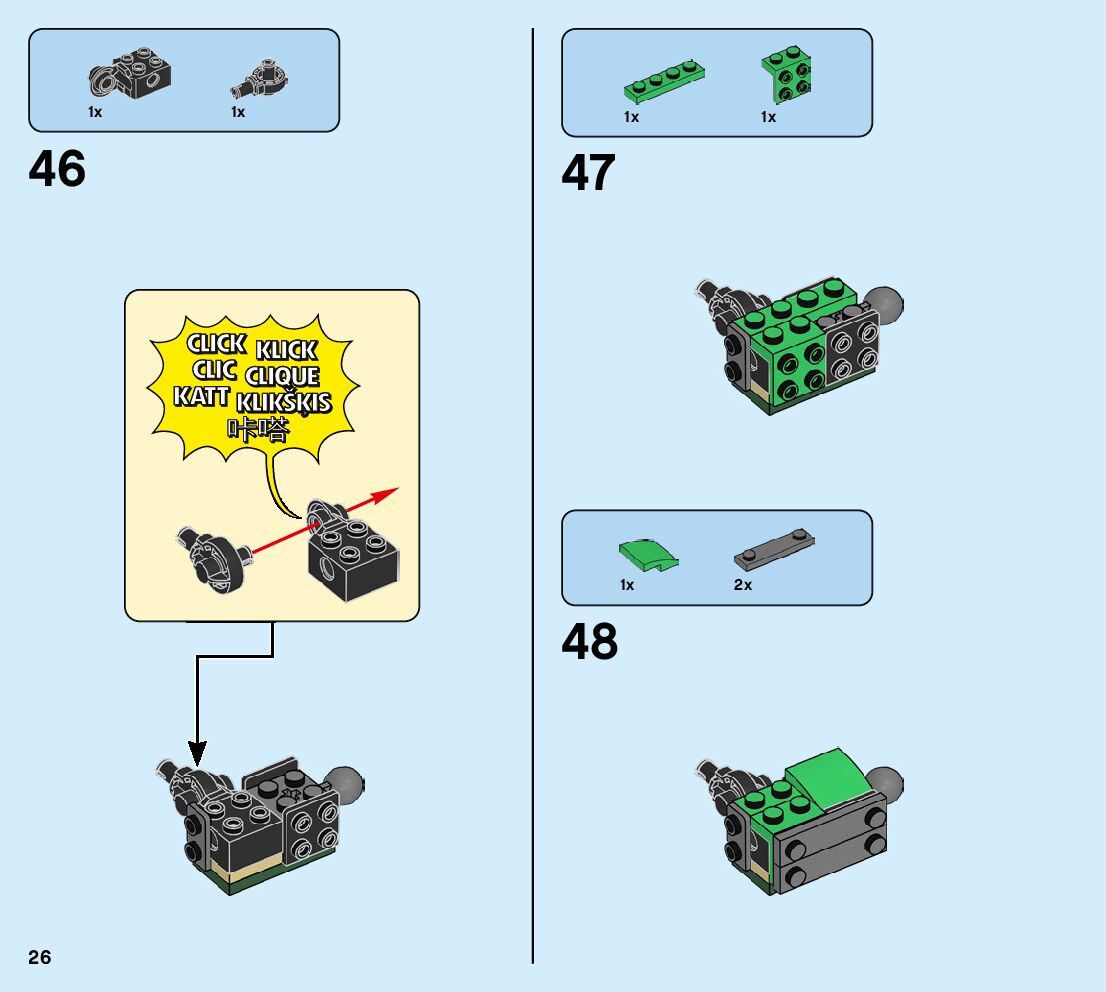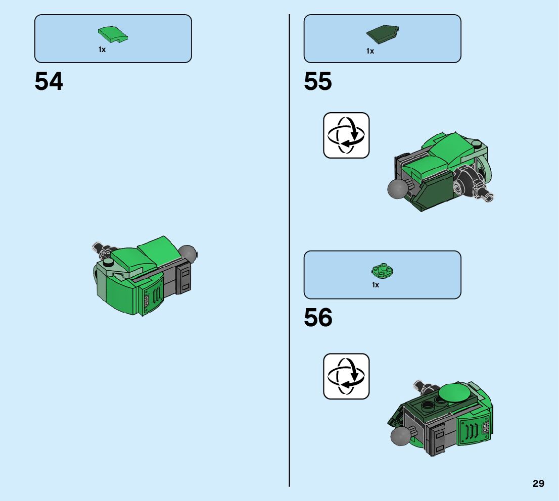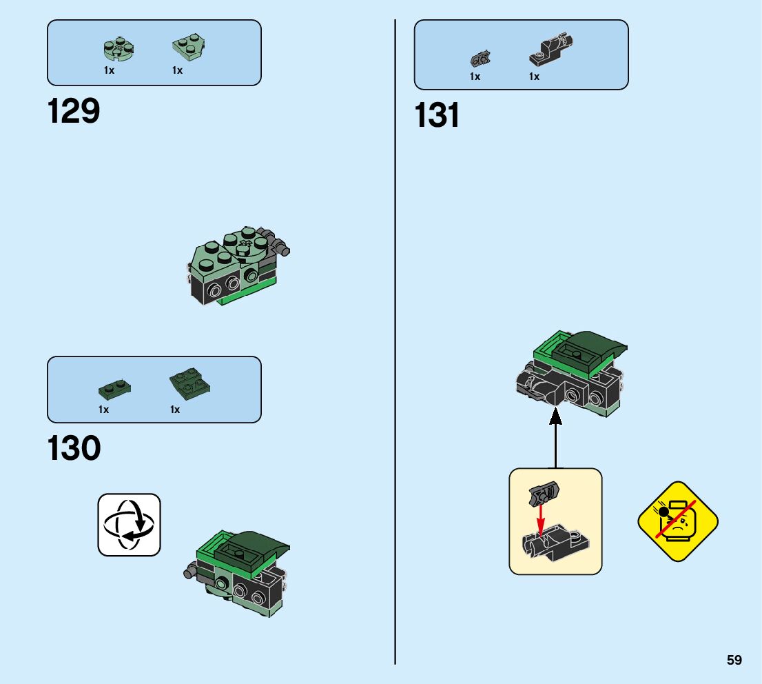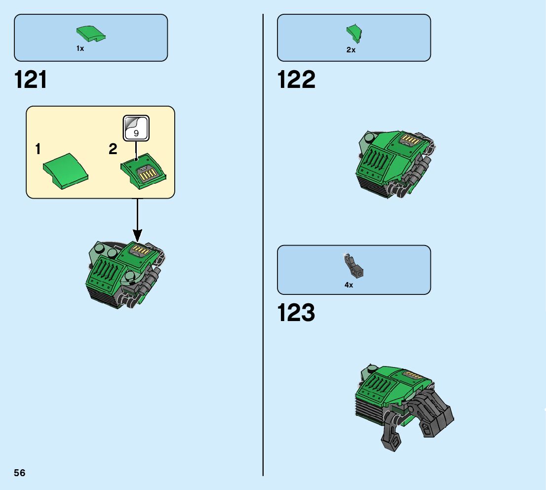 The assembly guide is prepared in a very understandable way for children and adult LEGO enthusiasts. A total of 72 picture galleries are shown, explaining the step-by-step construction stages for 1 different structures.