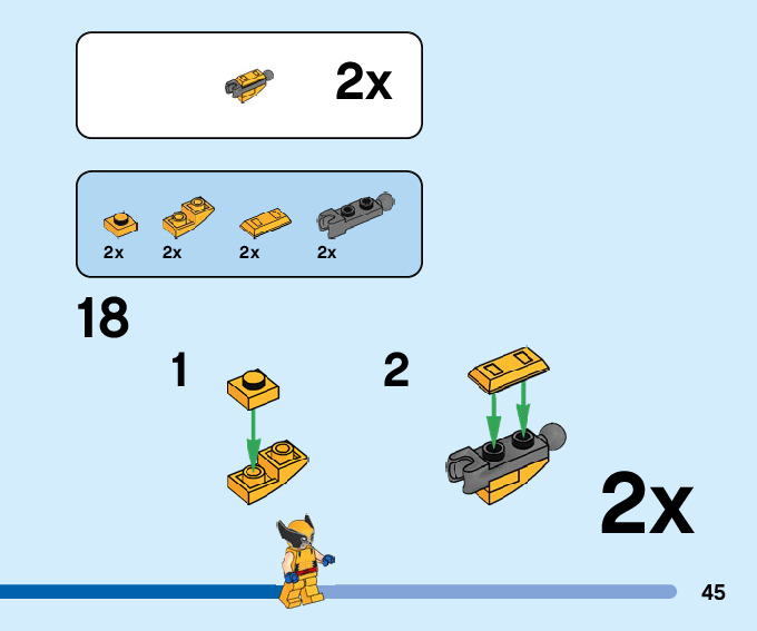 The assembly guide is prepared in a very understandable way for children and adult LEGO enthusiasts. A total of 68 picture galleries are shown, explaining the step-by-step construction stages for 1 different structures.