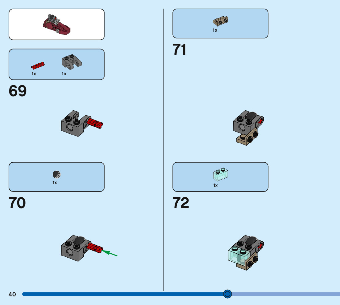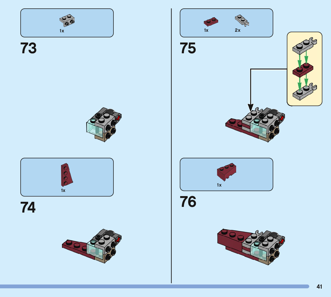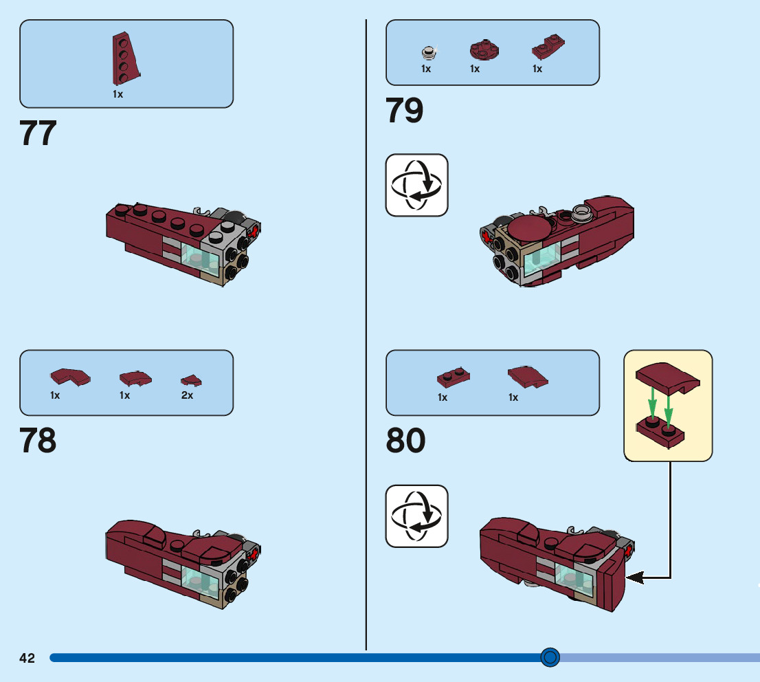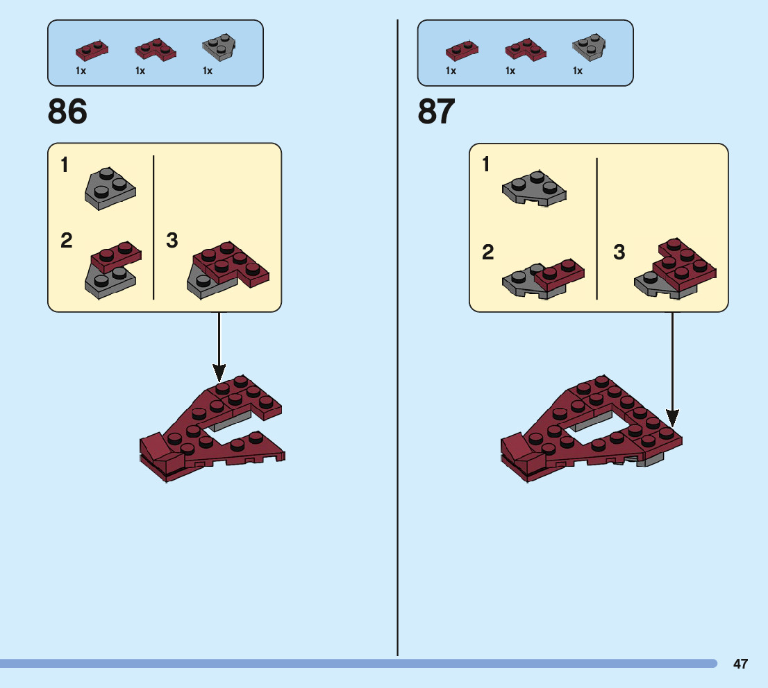 The assembly guide is prepared in a very understandable way for children and adult LEGO enthusiasts. A total of 88 picture galleries are shown, explaining the step-by-step construction stages for 1 different structures.