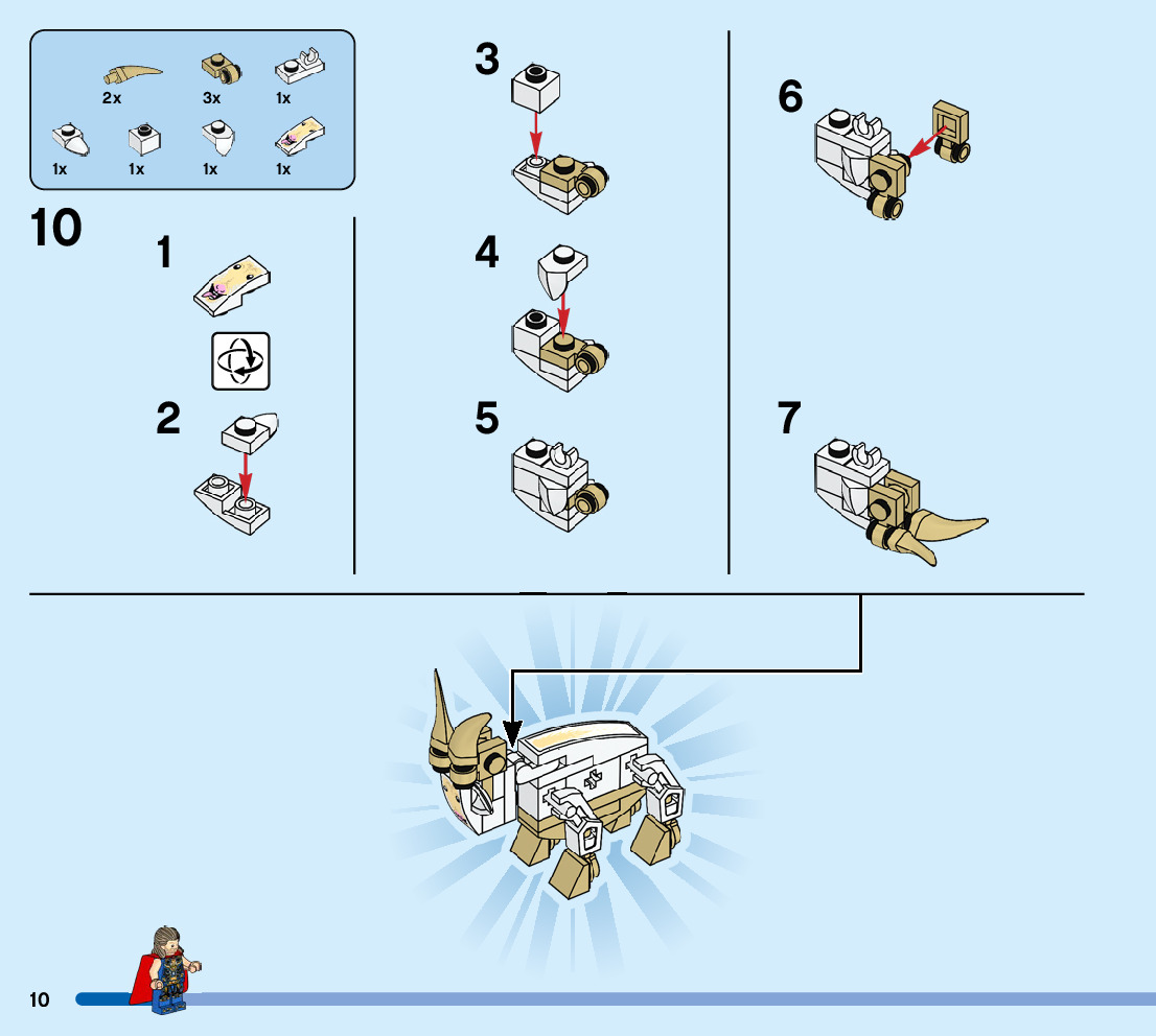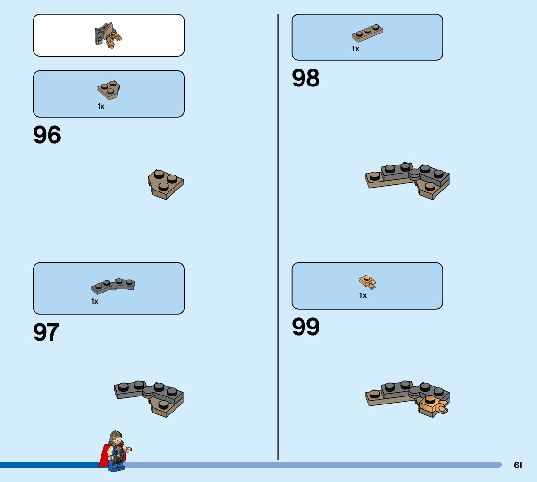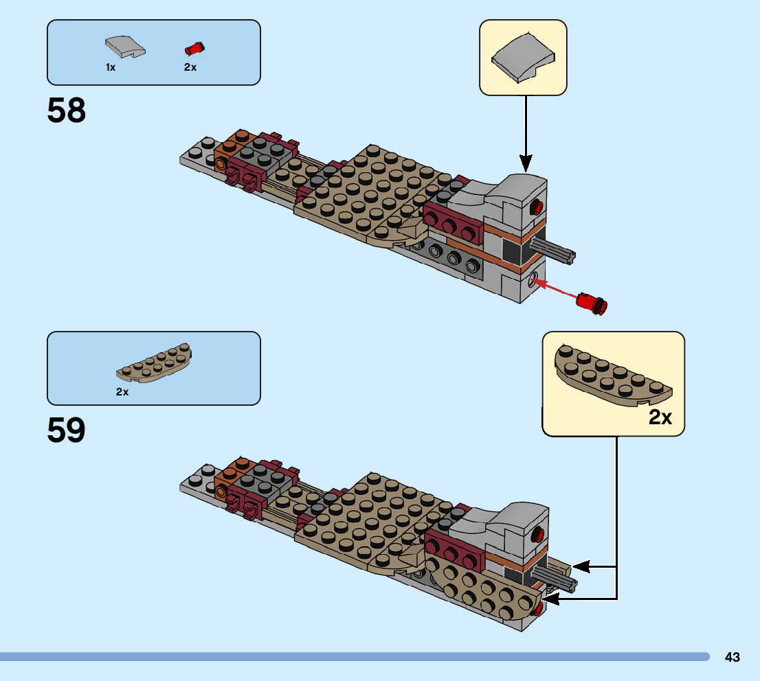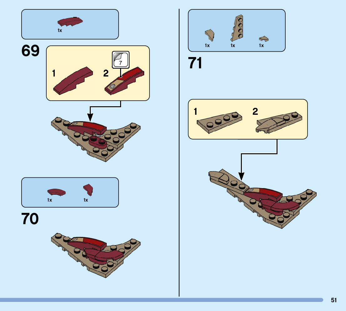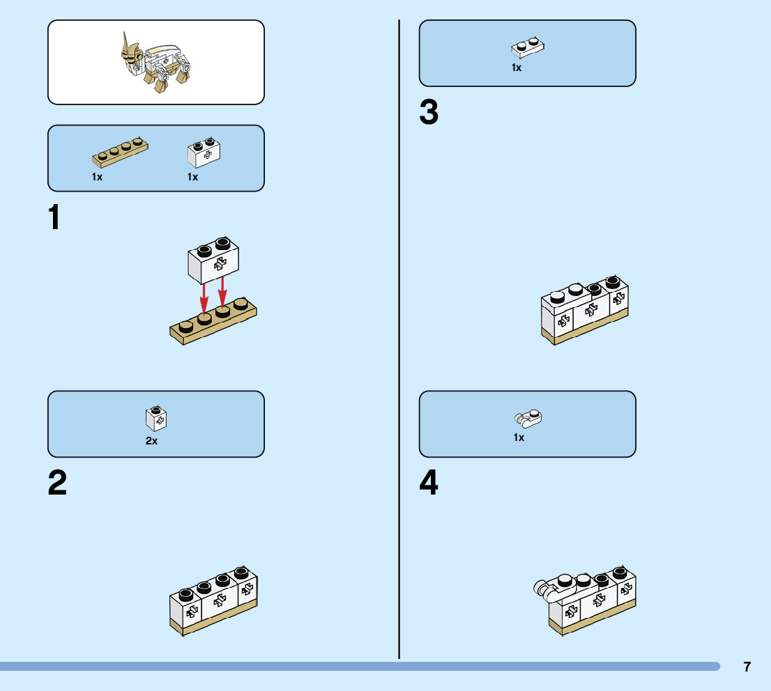 The assembly guide is prepared in a very understandable way for children and adult LEGO enthusiasts. A total of 104 picture galleries are shown, explaining the step-by-step construction stages for 1 different structures.