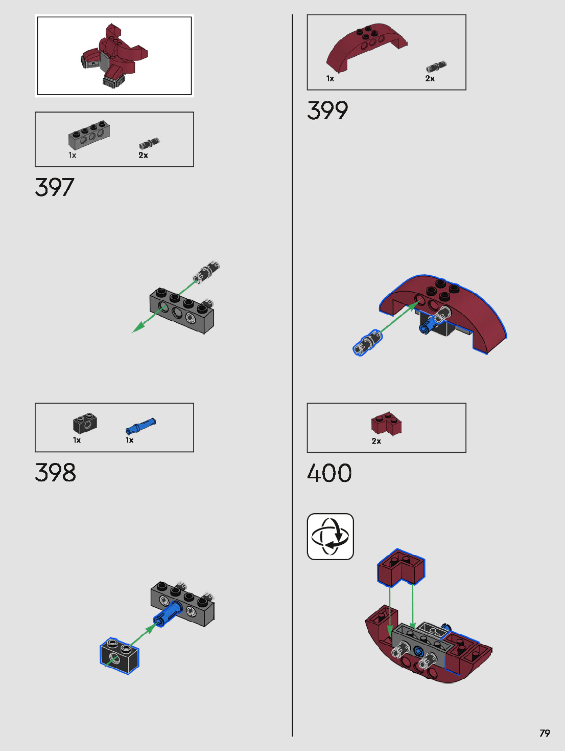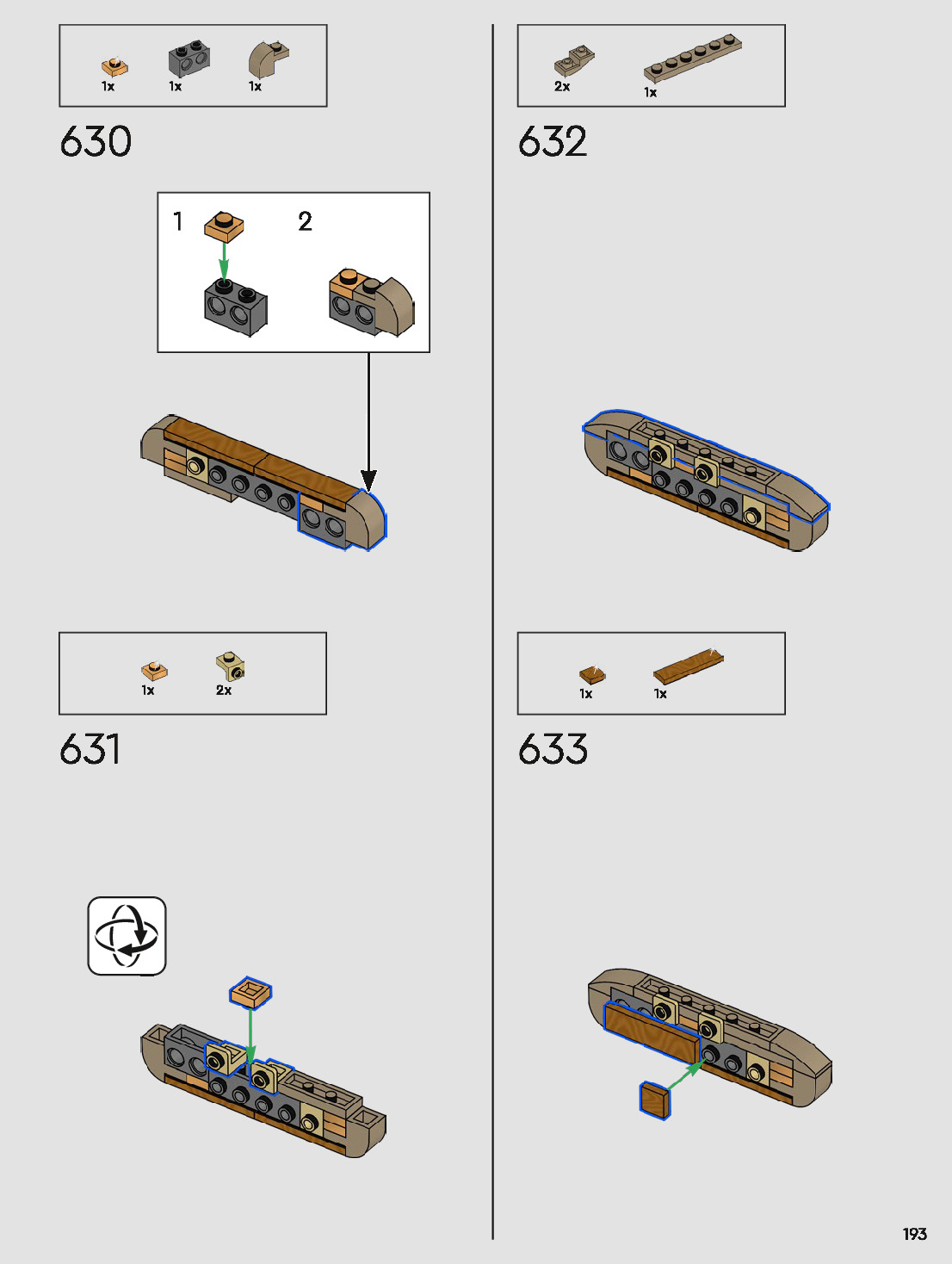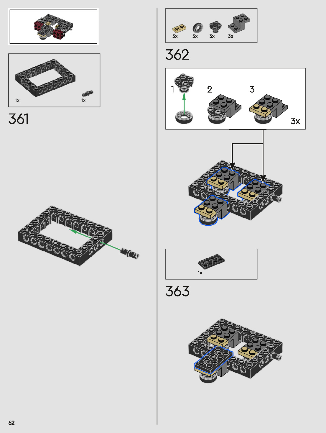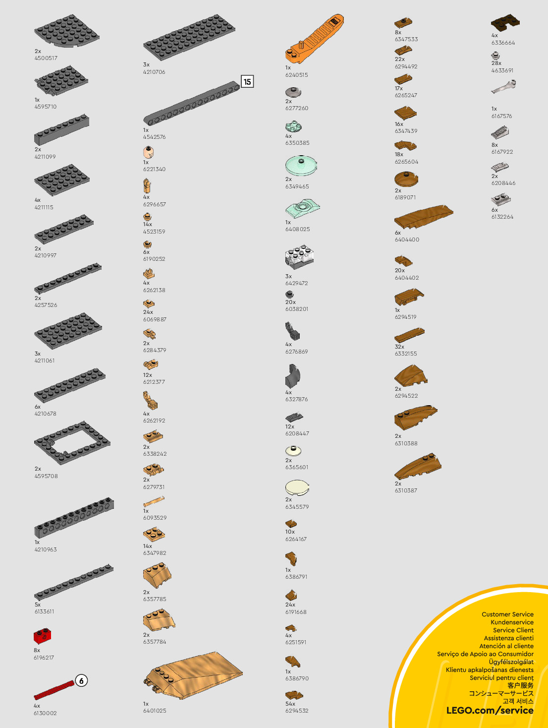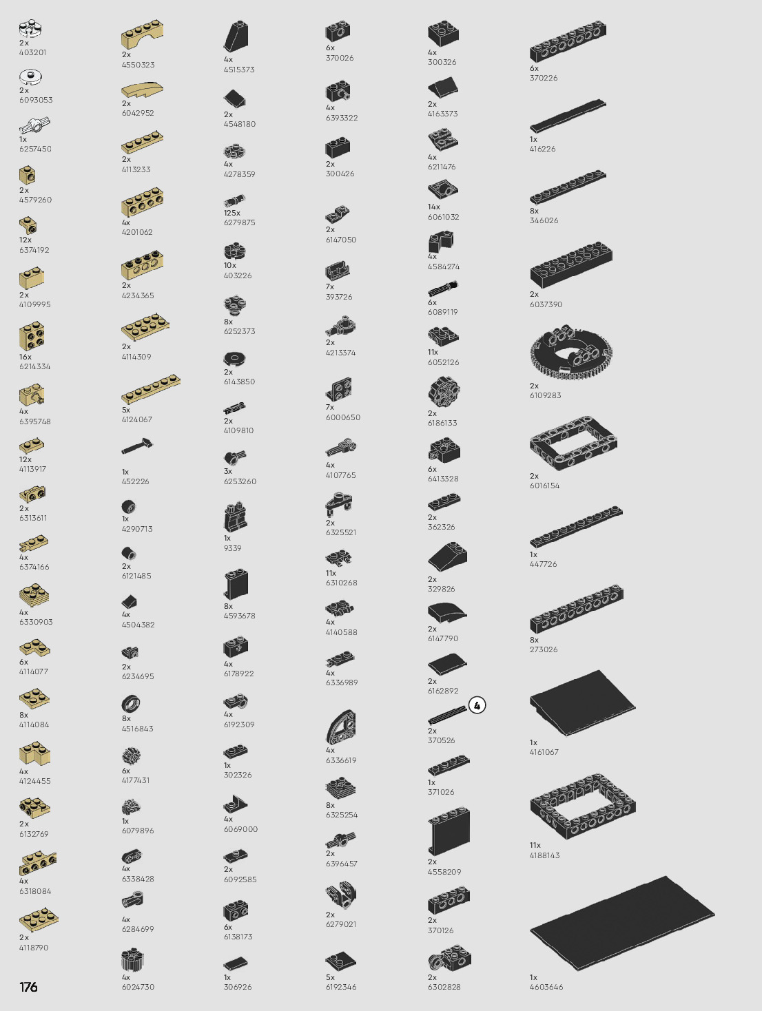 The assembly guide is prepared in a very understandable way for children and adult LEGO enthusiasts. A total of 632 picture galleries are shown, explaining the step-by-step construction stages for 3 different structures.
