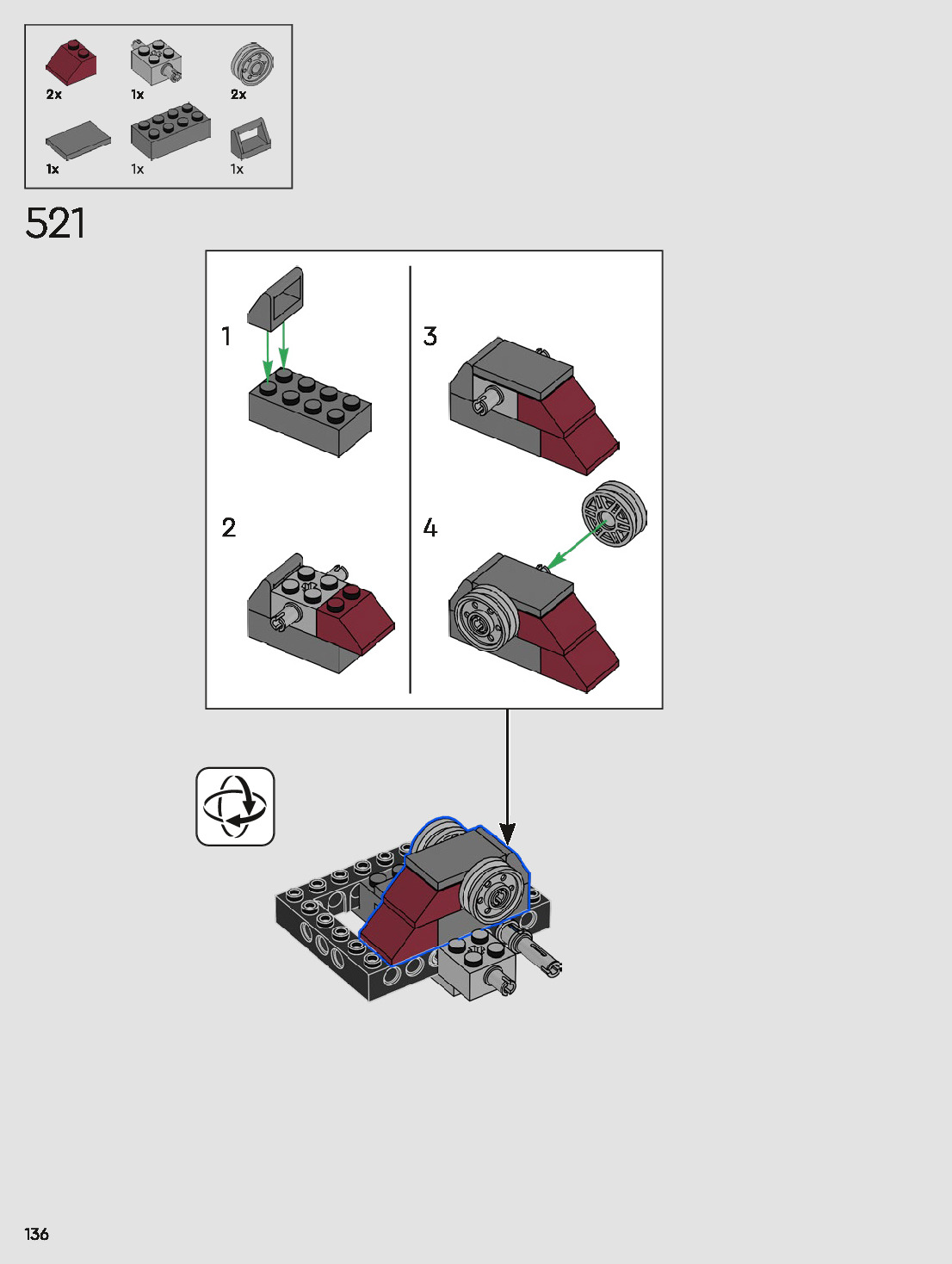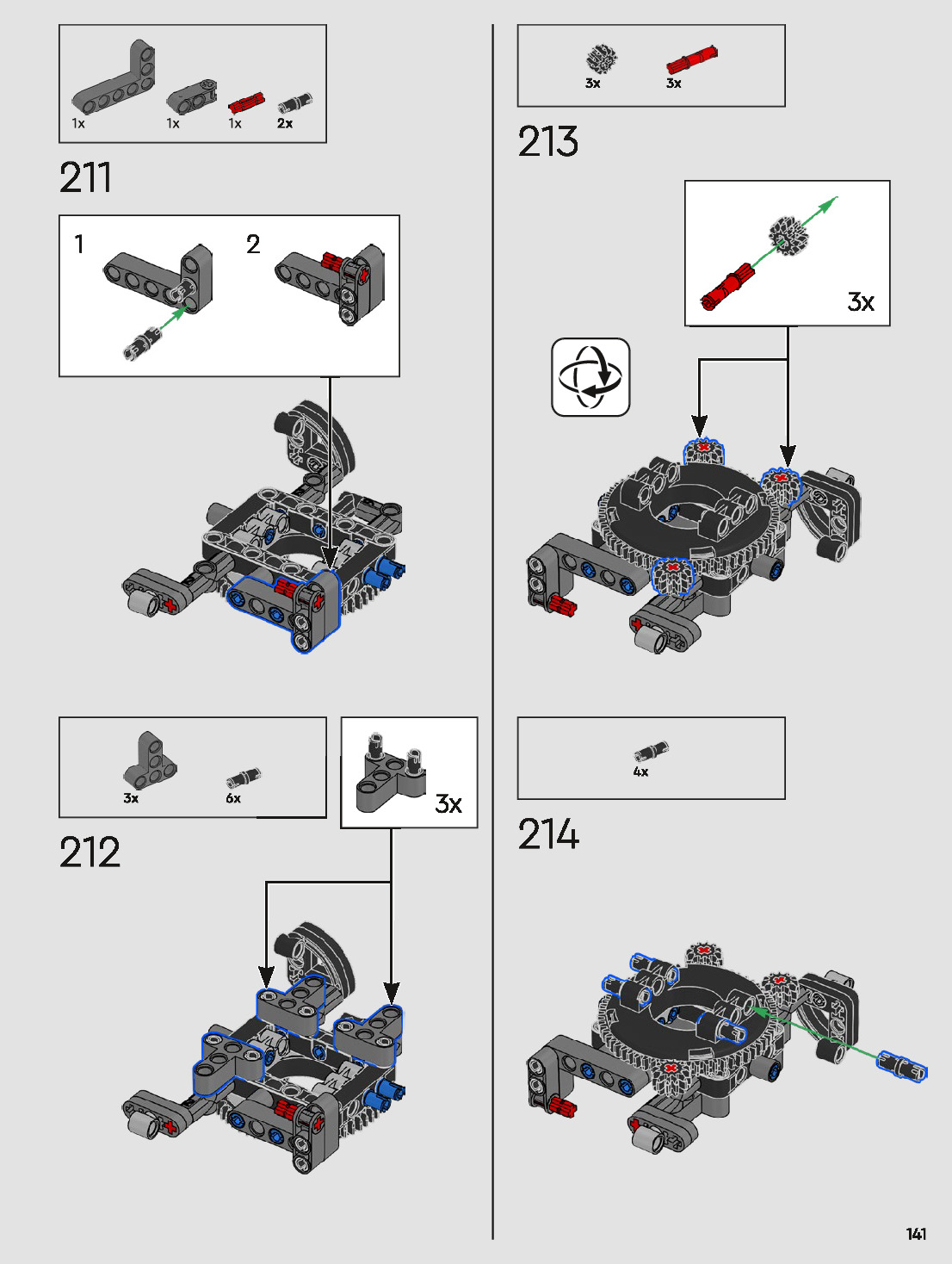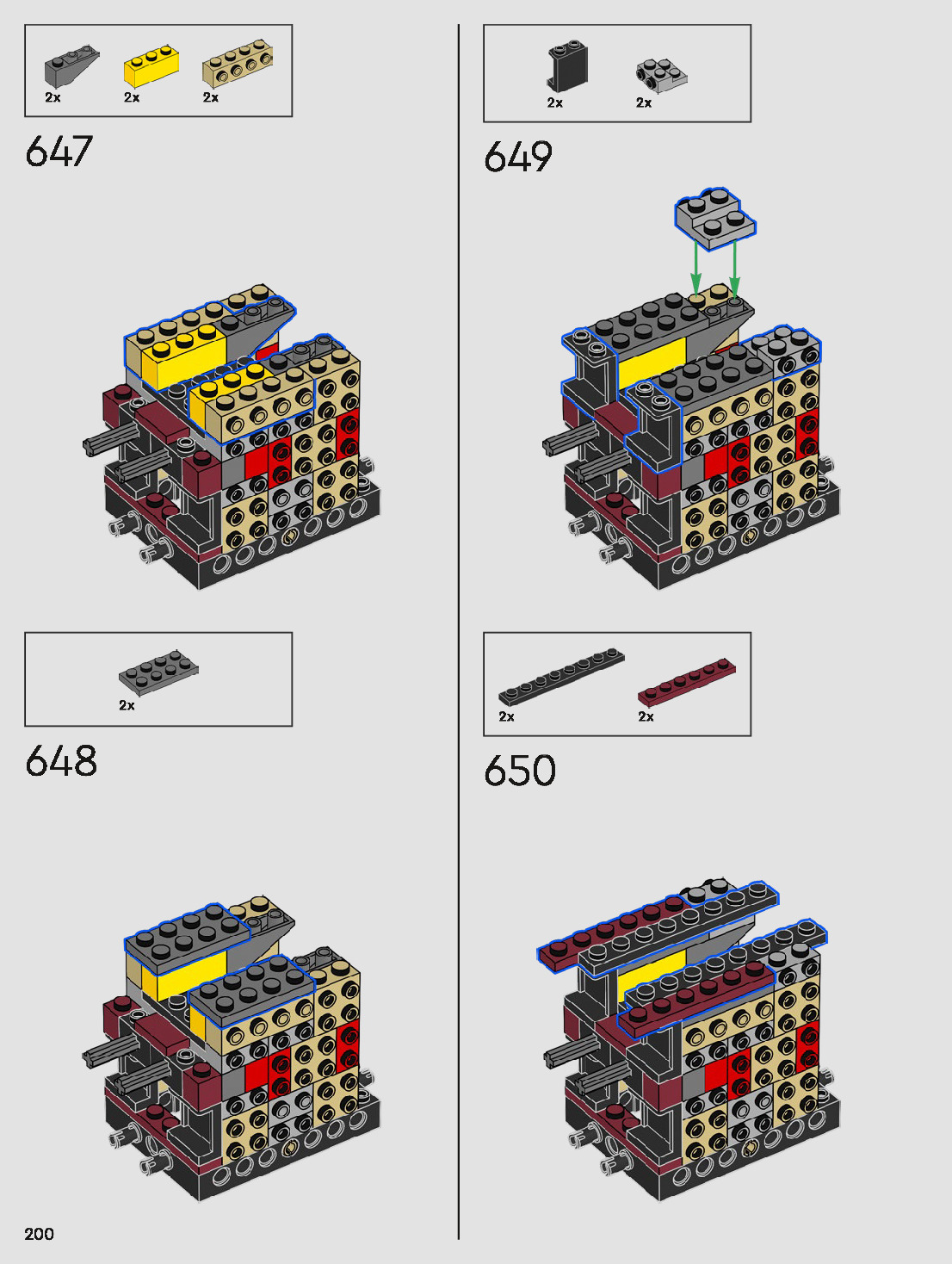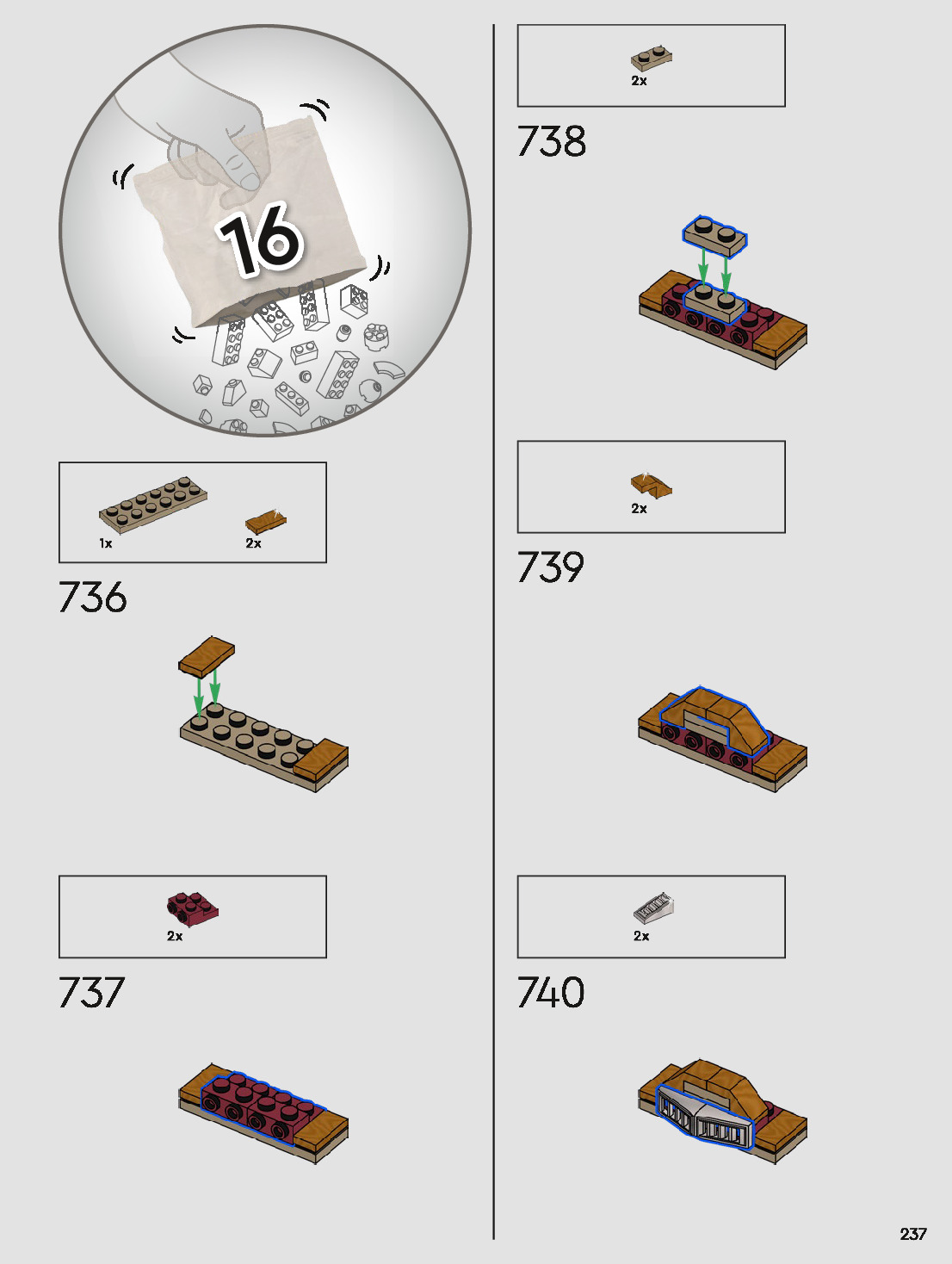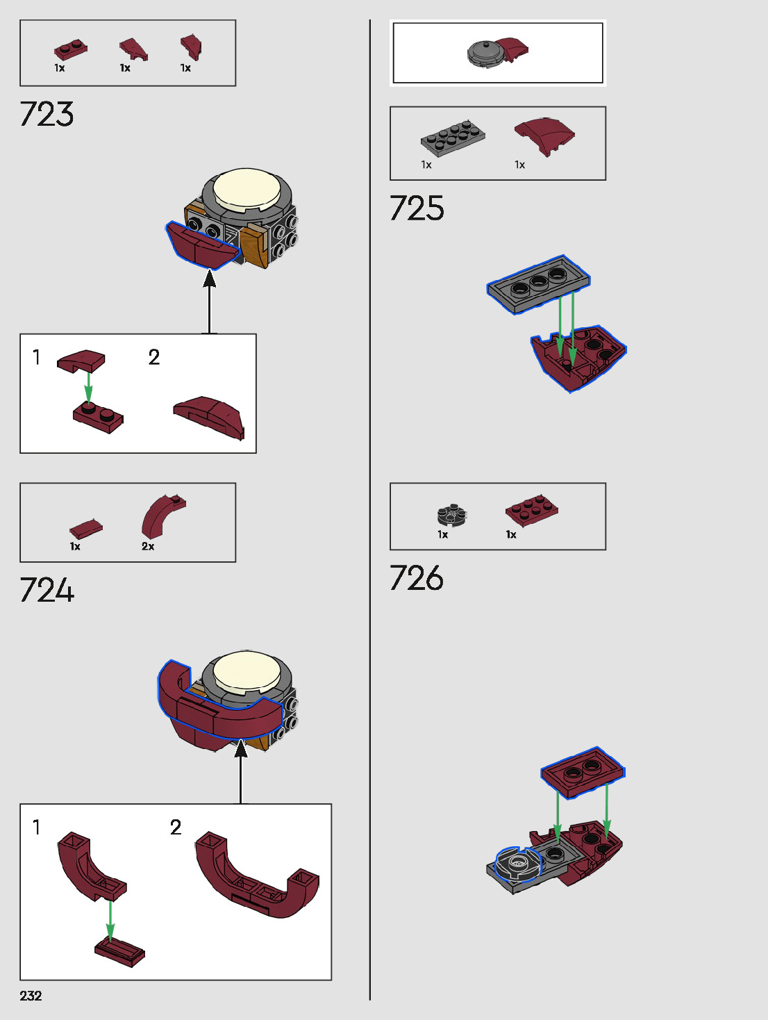 The assembly guide is prepared in a very understandable way for children and adult LEGO enthusiasts. A total of 632 picture galleries are shown, explaining the step-by-step construction stages for 3 different structures.