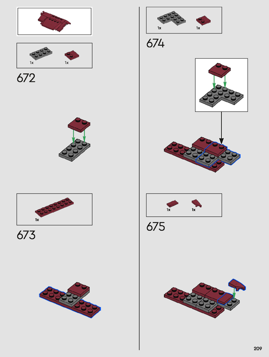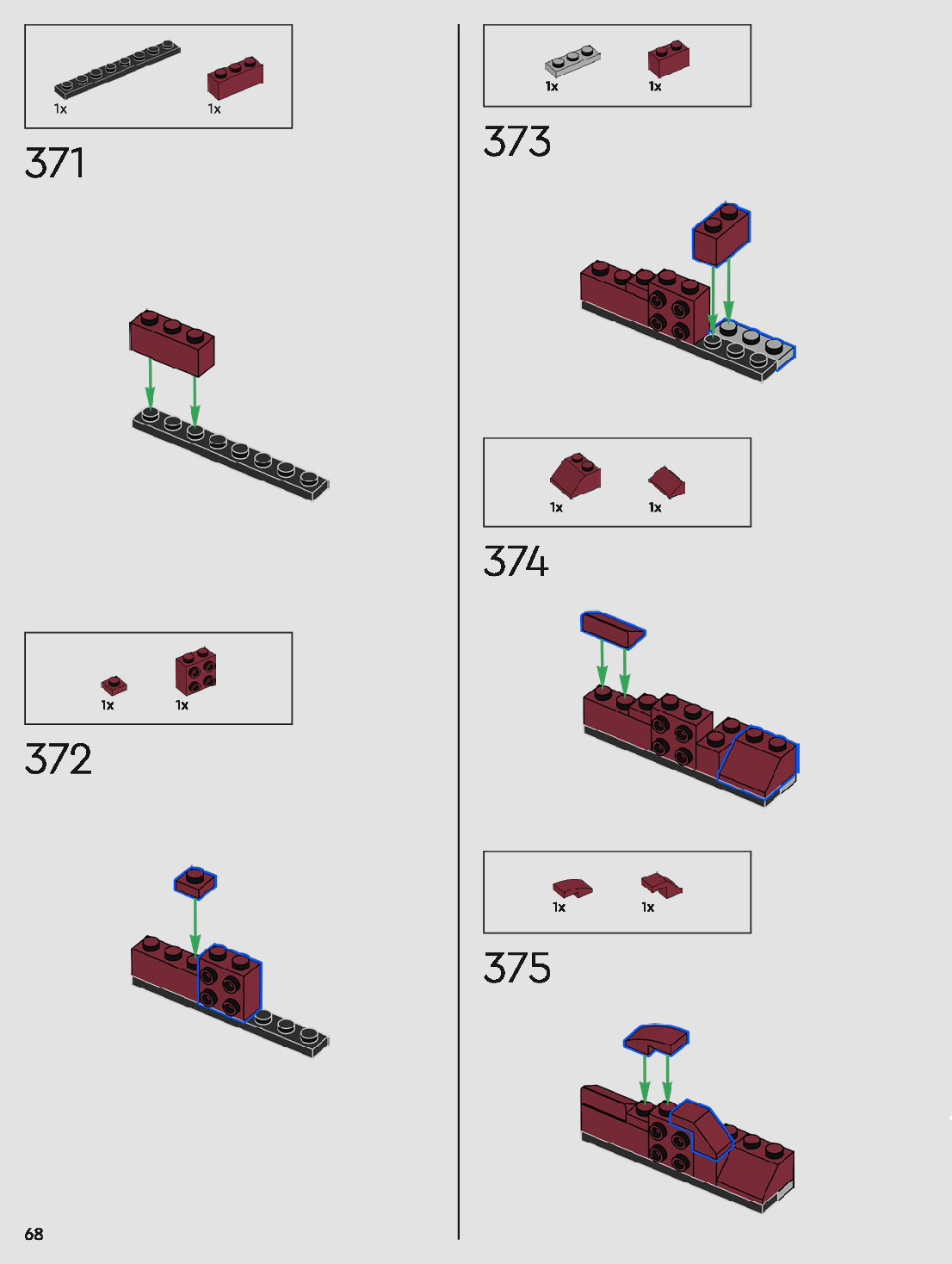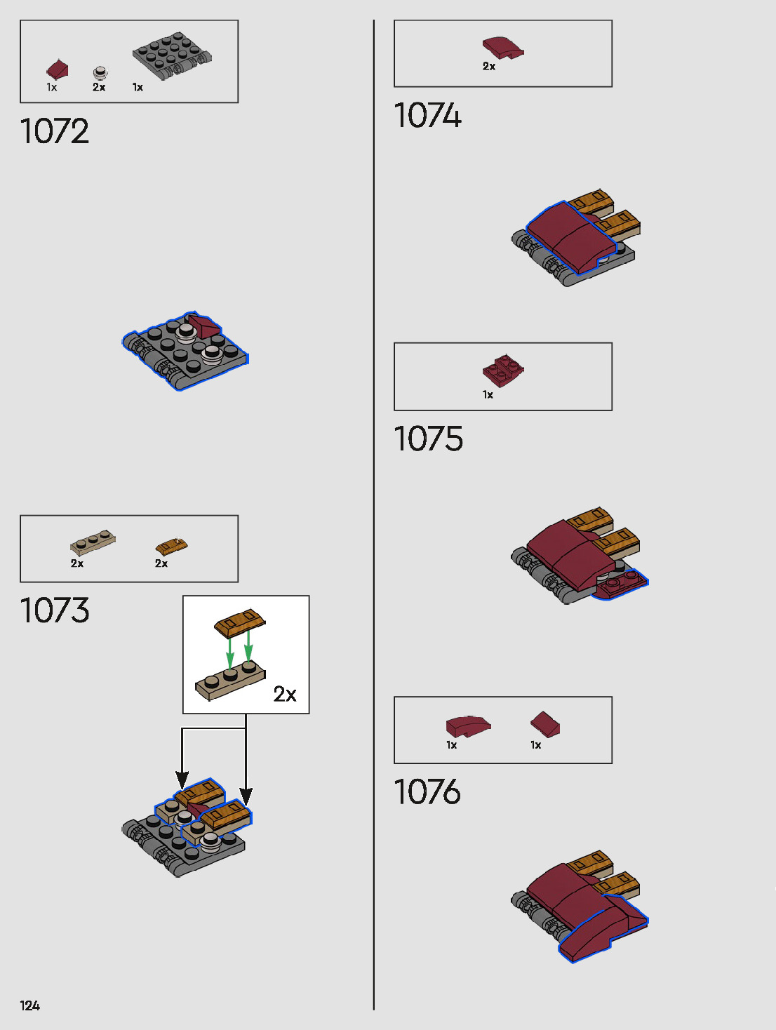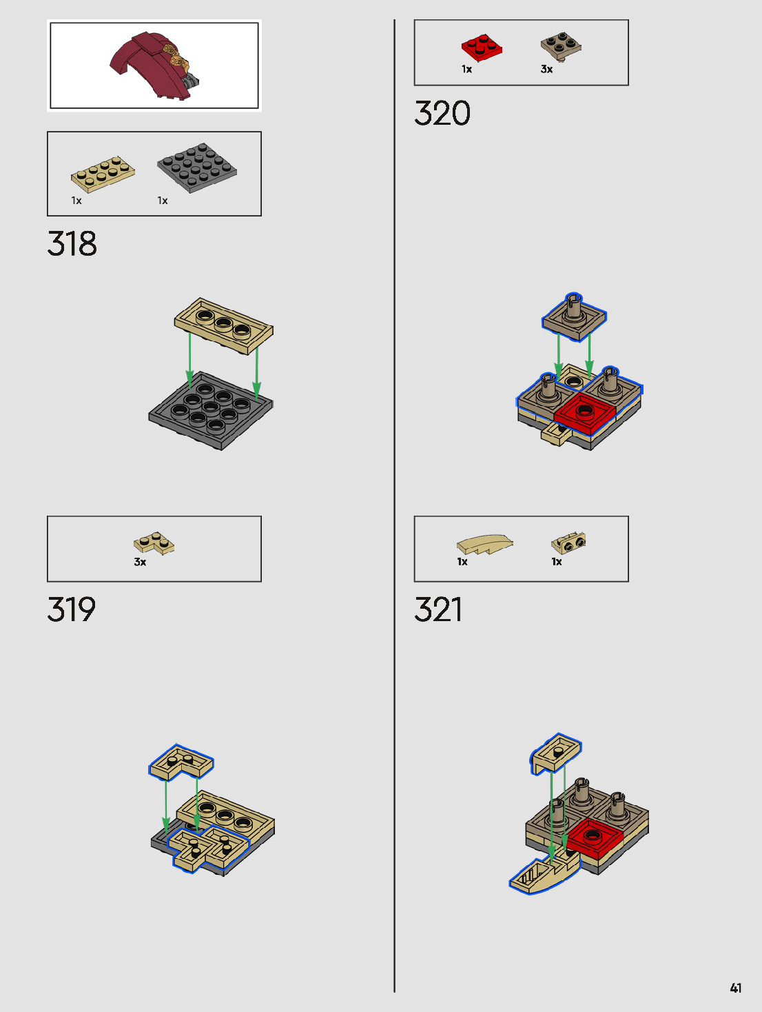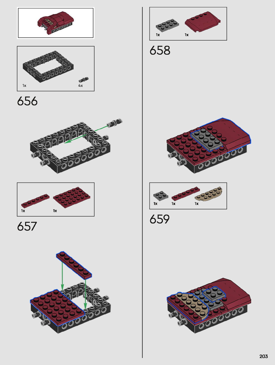 The assembly guide is prepared in a very understandable way for children and adult LEGO enthusiasts. A total of 632 picture galleries are shown, explaining the step-by-step construction stages for 3 different structures.