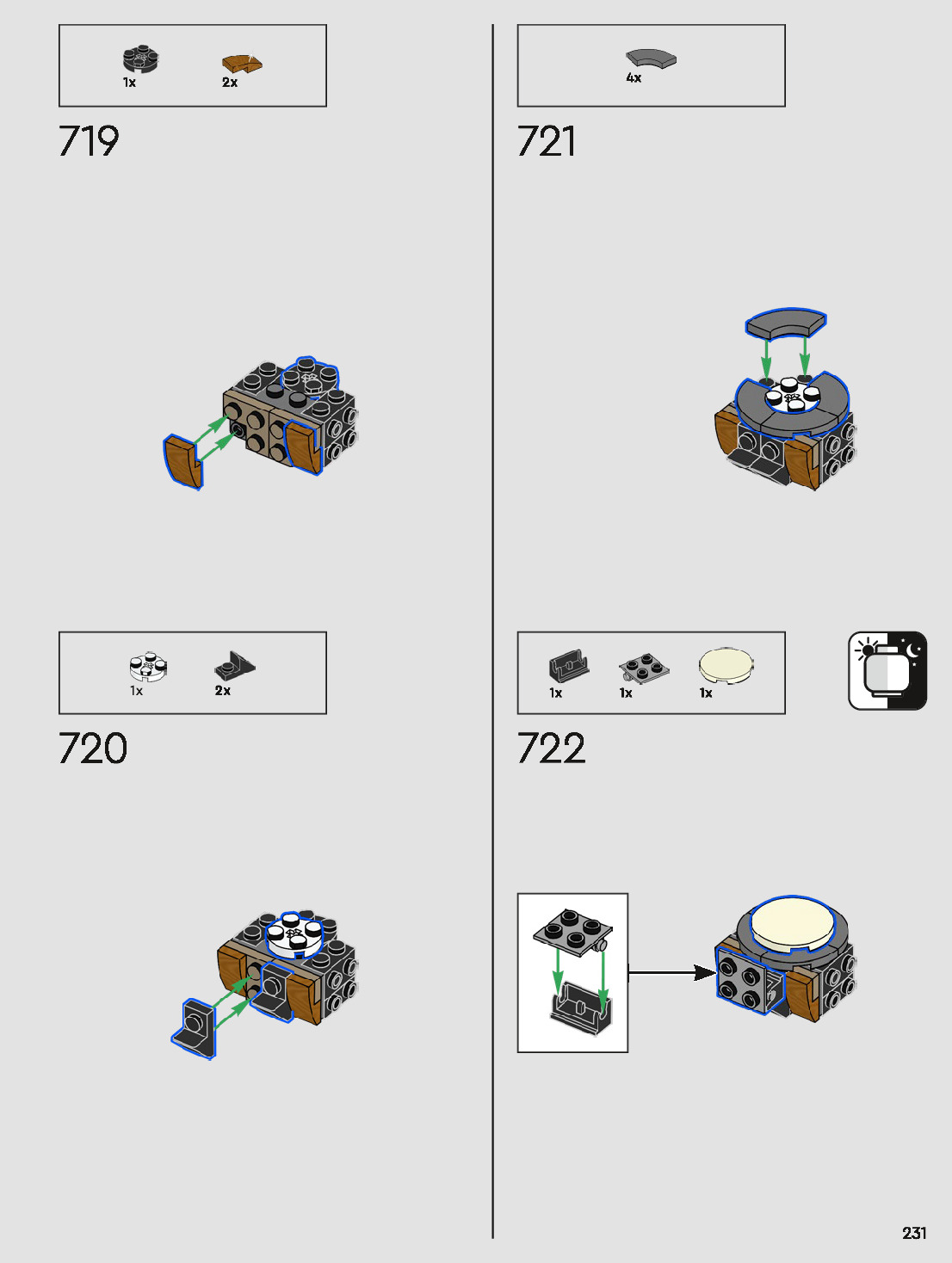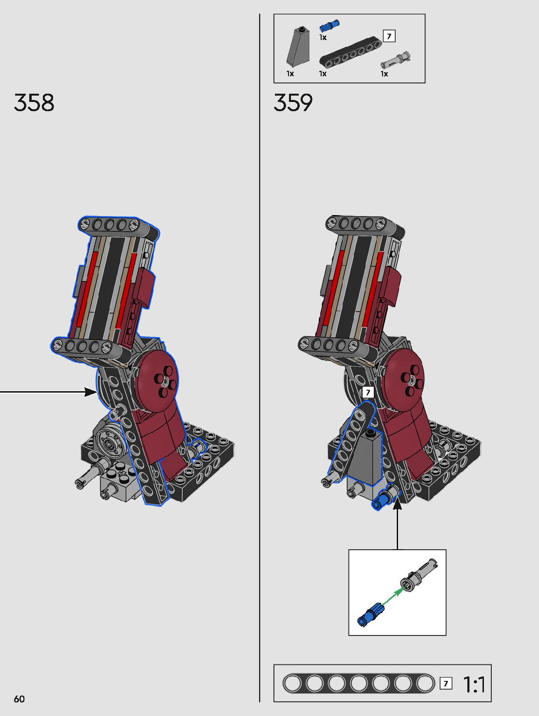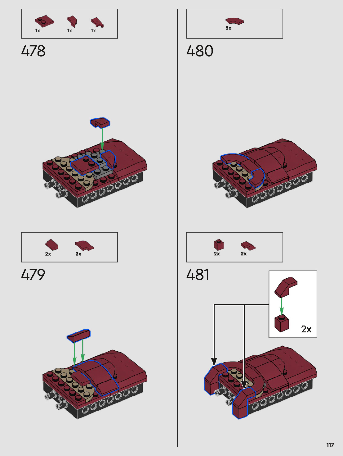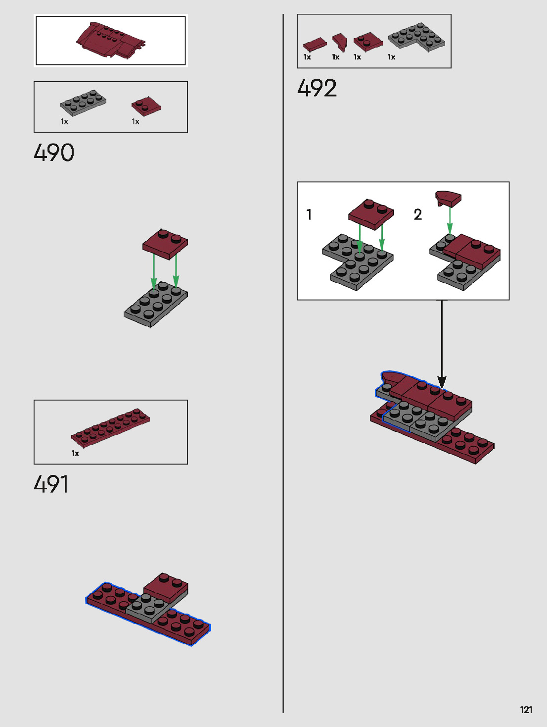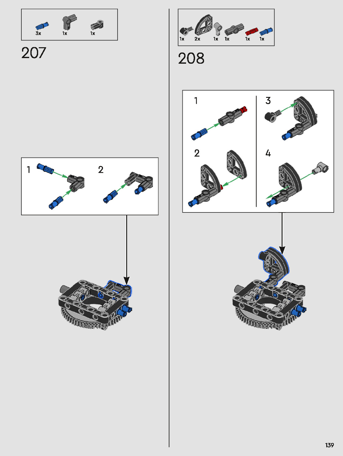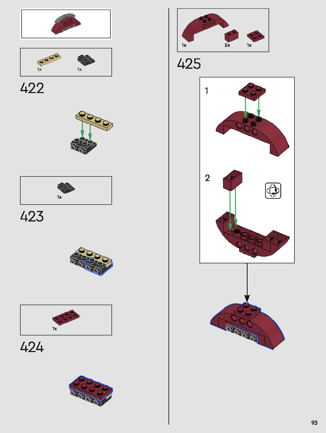 The assembly guide is prepared in a very understandable way for children and adult LEGO enthusiasts. A total of 632 picture galleries are shown, explaining the step-by-step construction stages for 3 different structures.