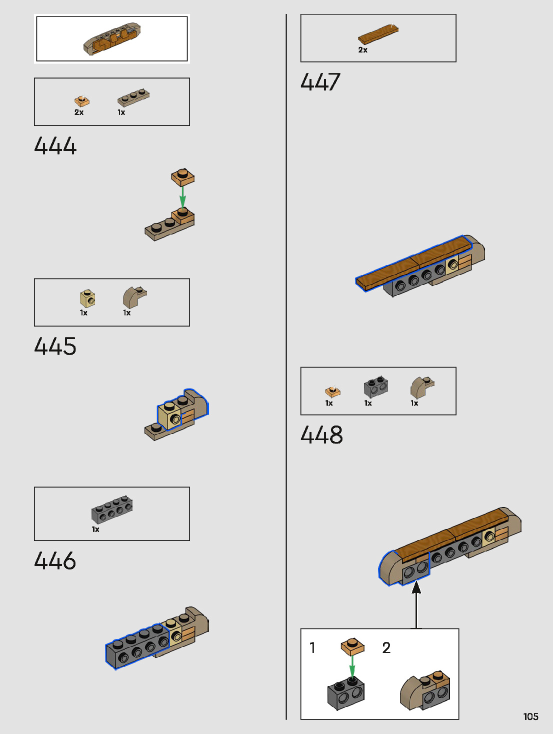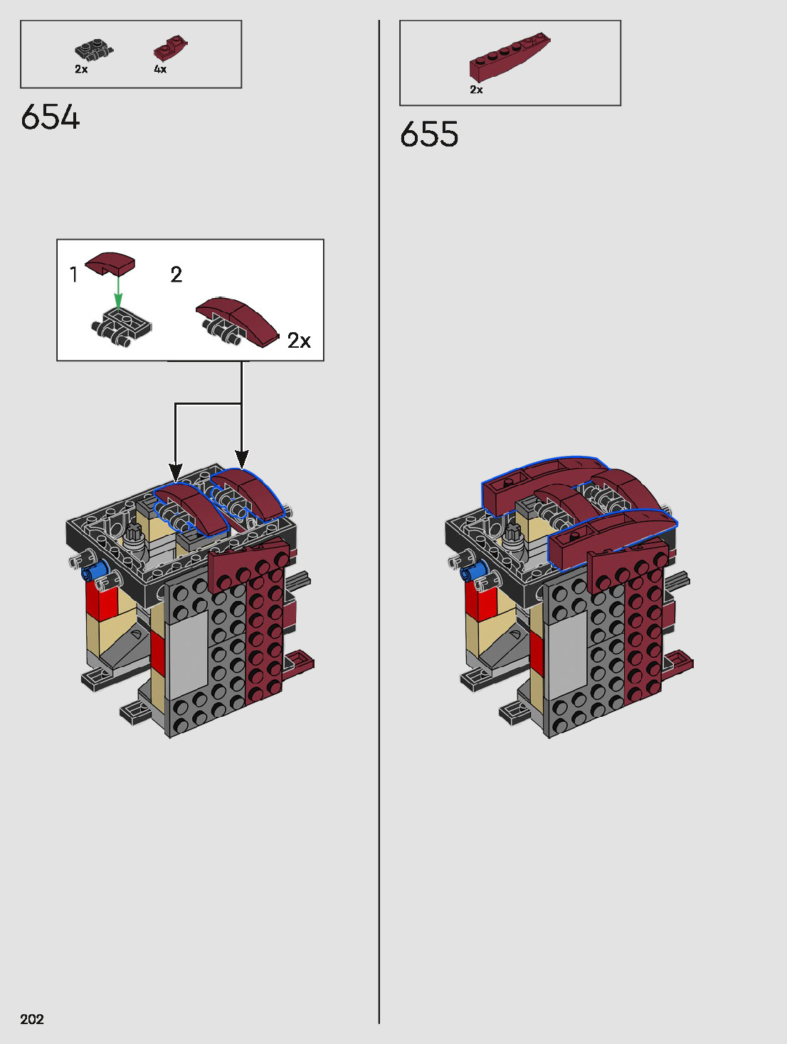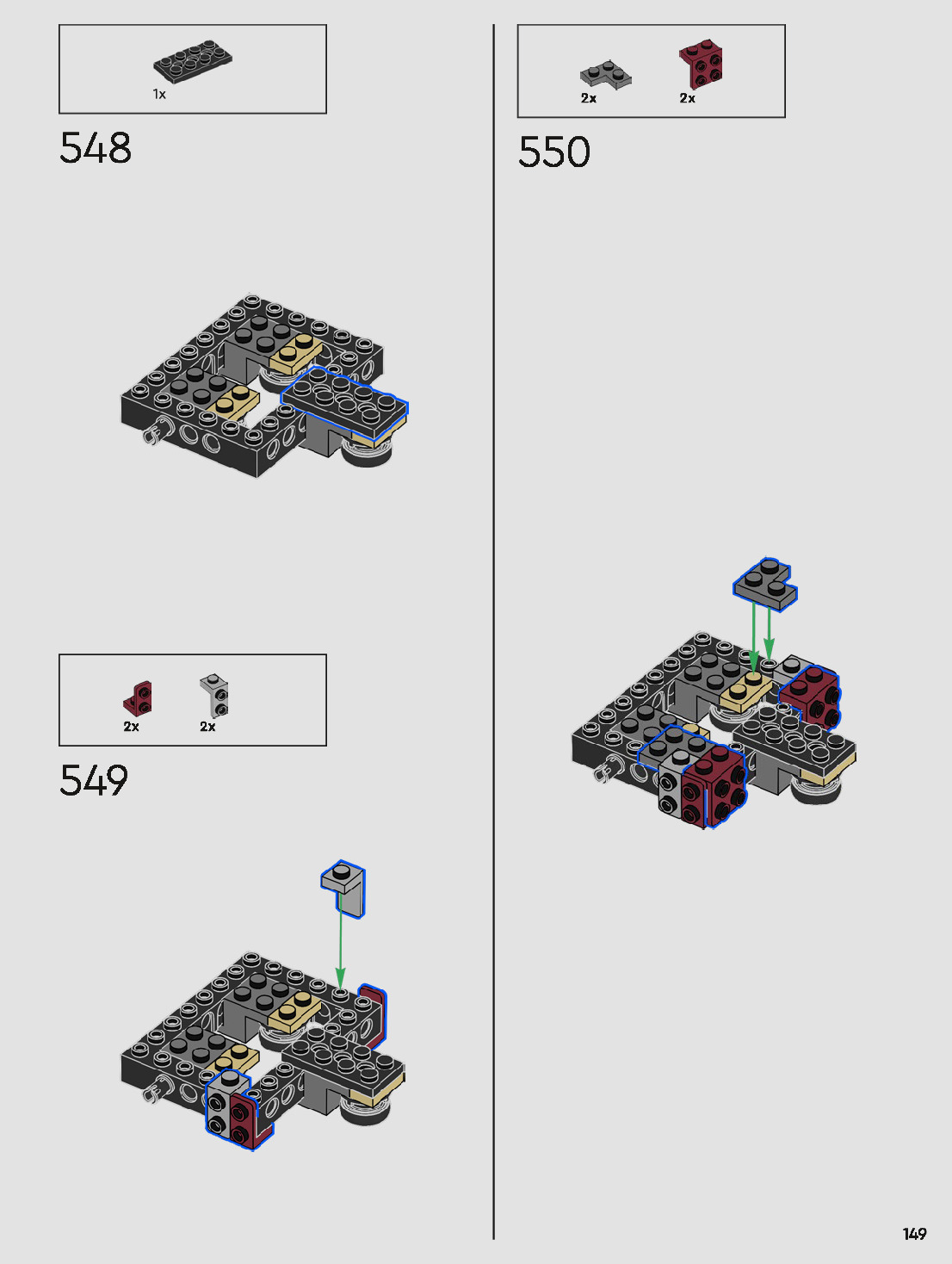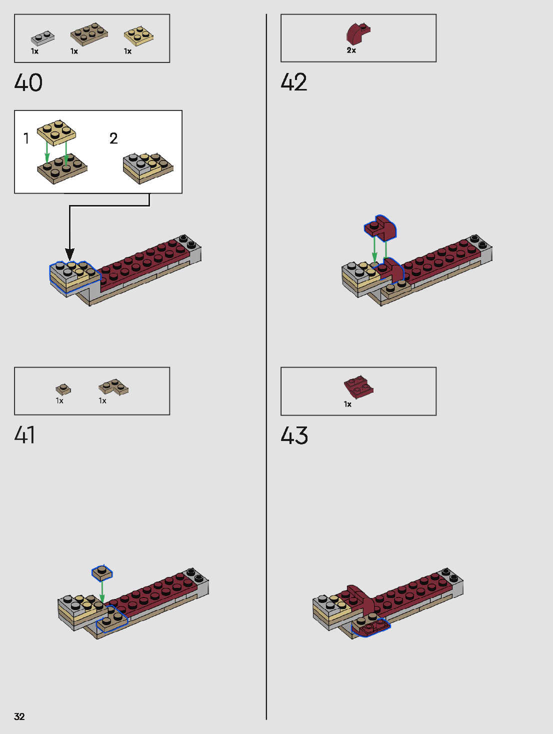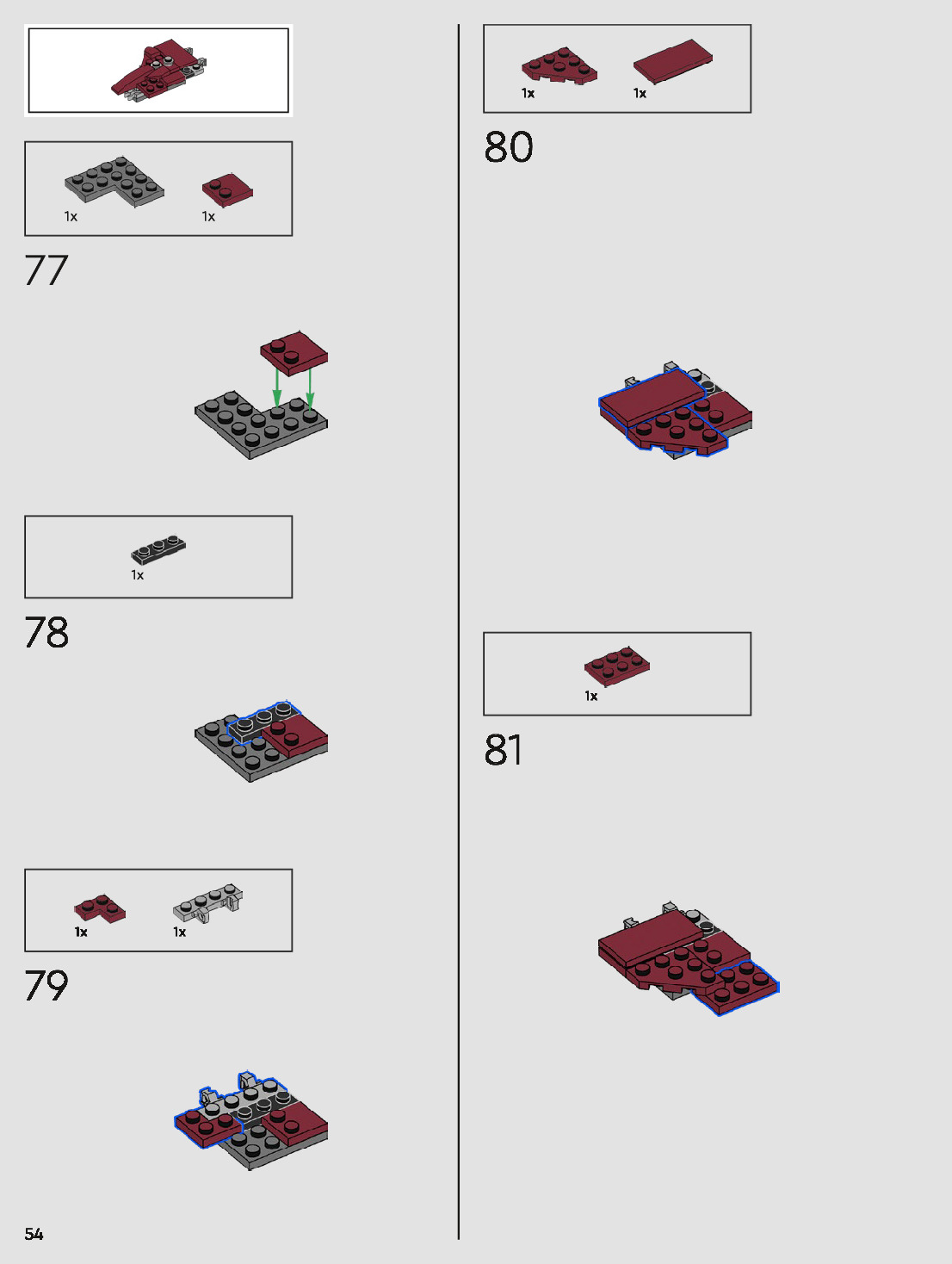 The assembly guide is prepared in a very understandable way for children and adult LEGO enthusiasts. A total of 632 picture galleries are shown, explaining the step-by-step construction stages for 3 different structures.