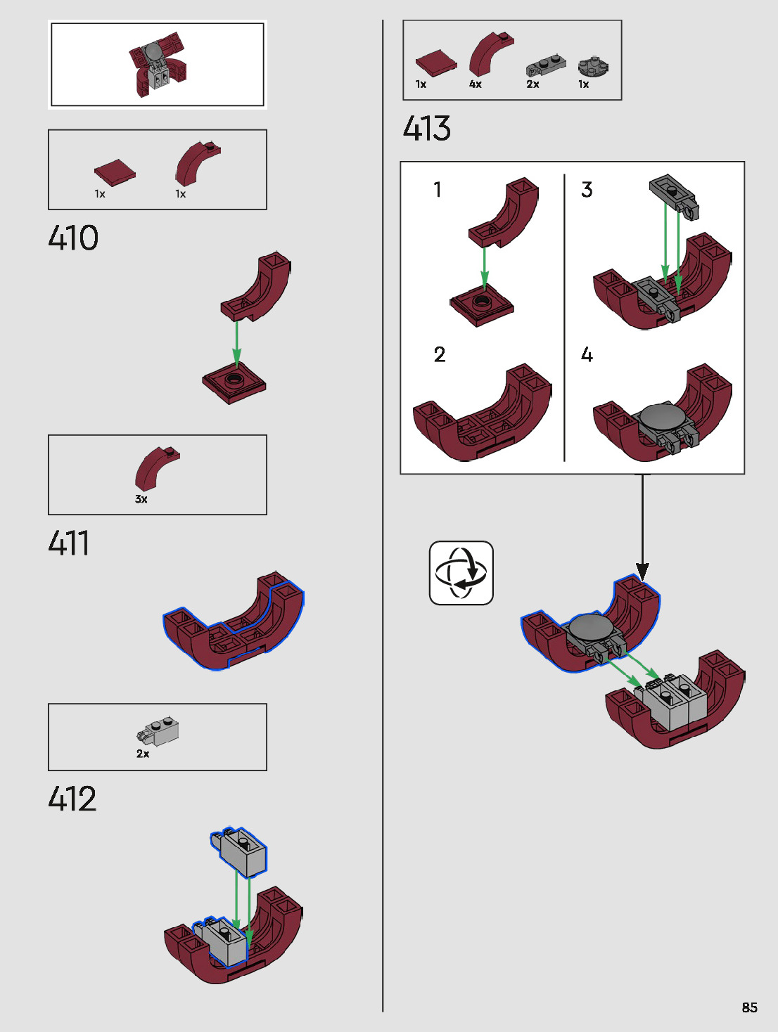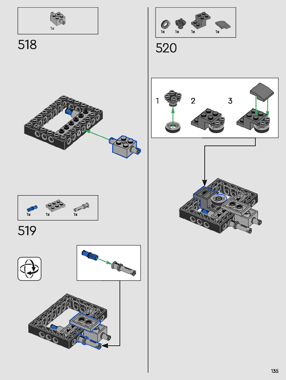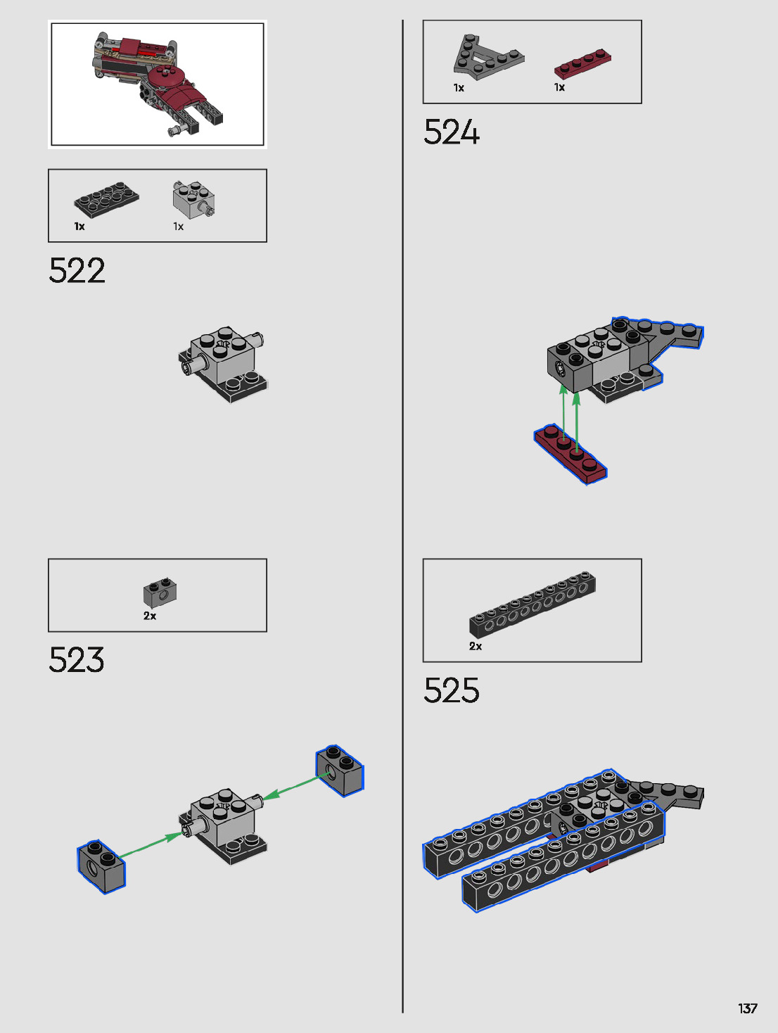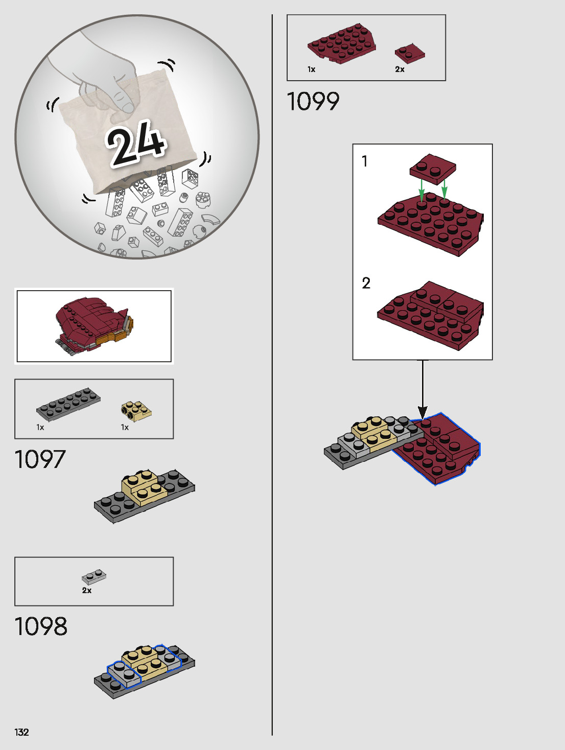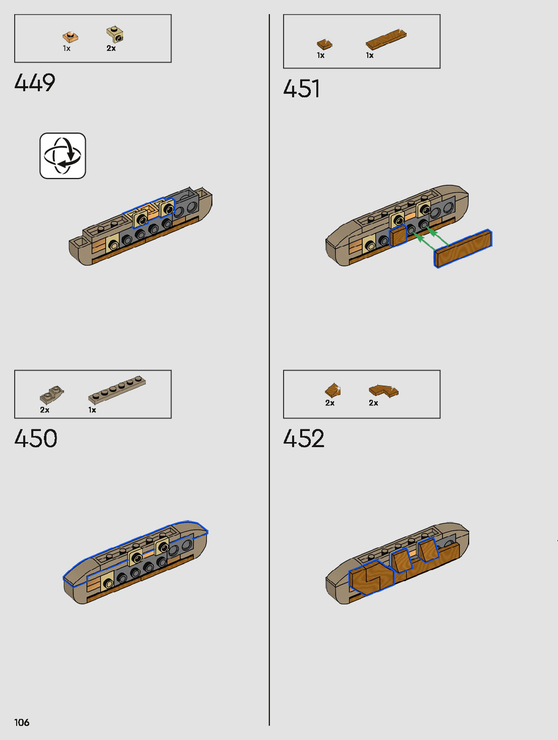 The assembly guide is prepared in a very understandable way for children and adult LEGO enthusiasts. A total of 632 picture galleries are shown, explaining the step-by-step construction stages for 3 different structures.