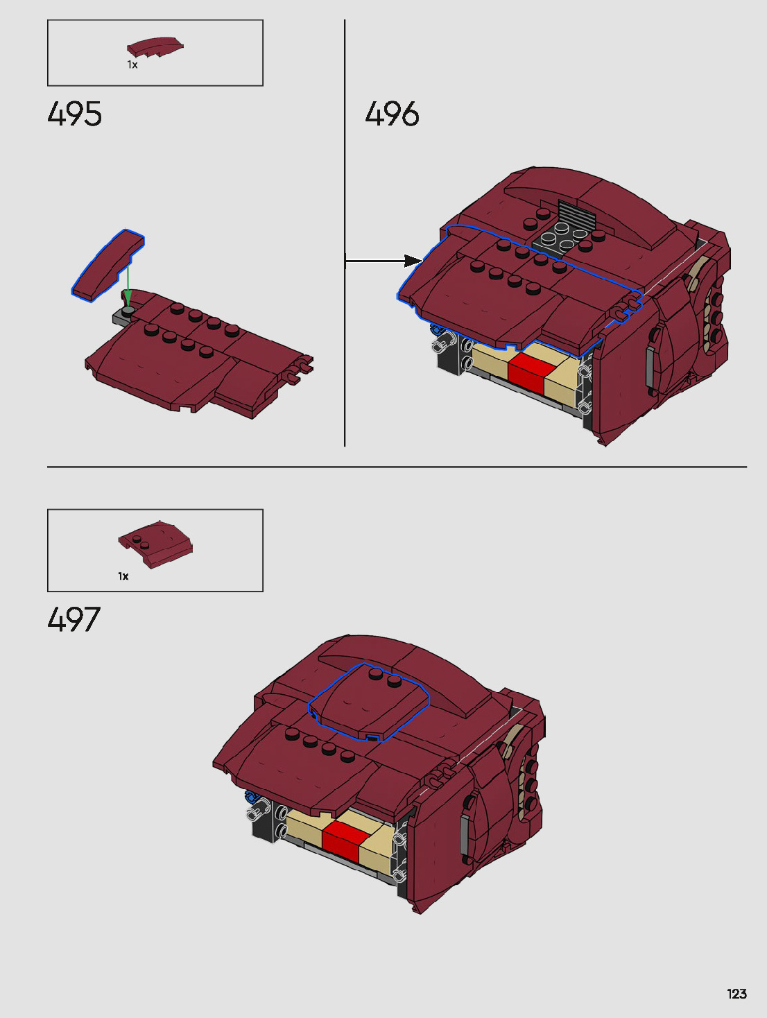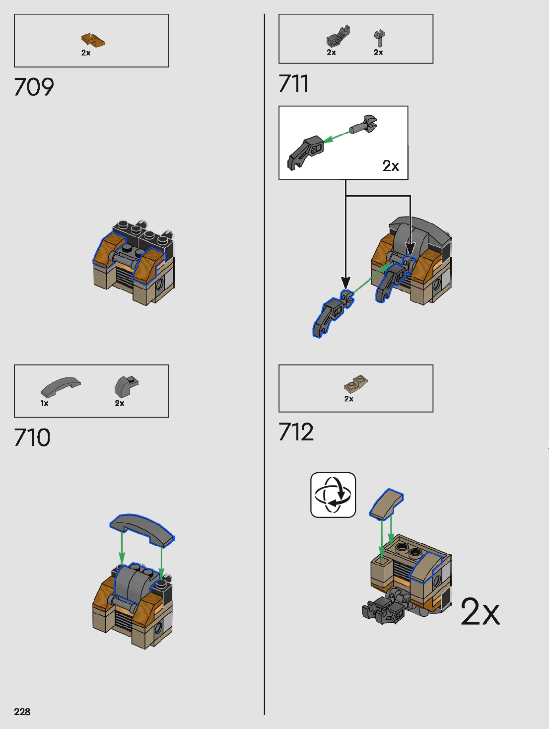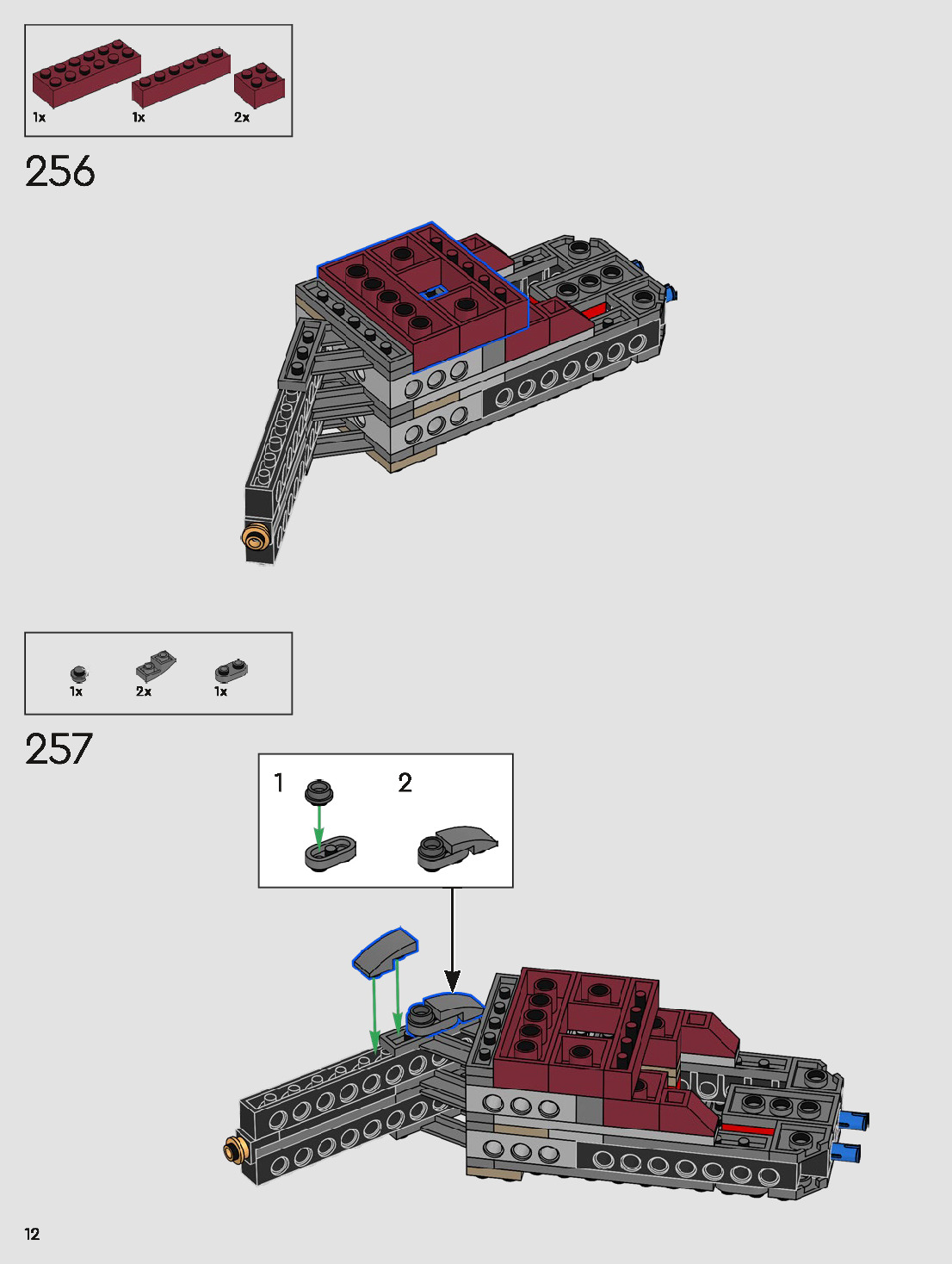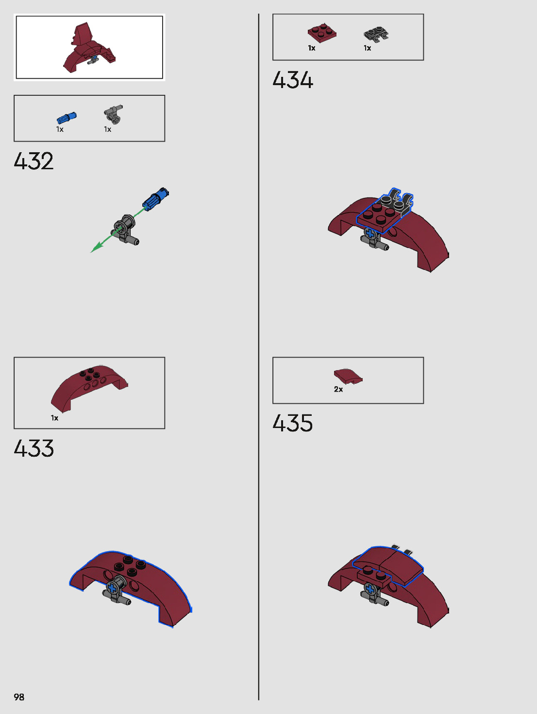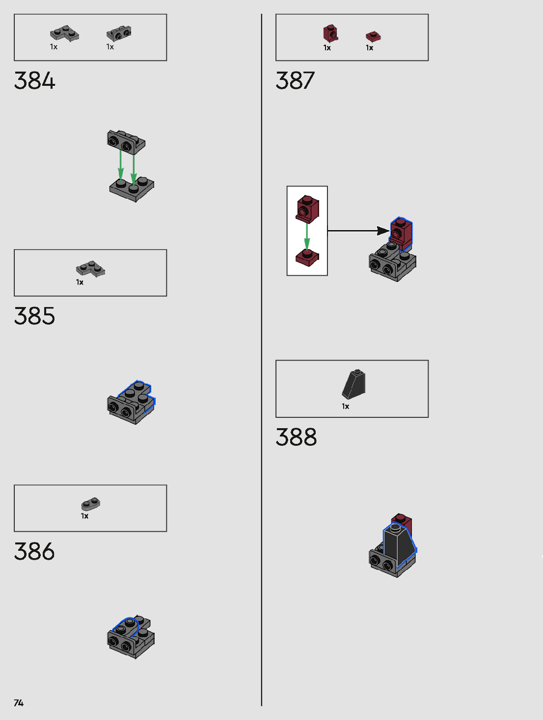 The assembly guide is prepared in a very understandable way for children and adult LEGO enthusiasts. A total of 632 picture galleries are shown, explaining the step-by-step construction stages for 3 different structures.